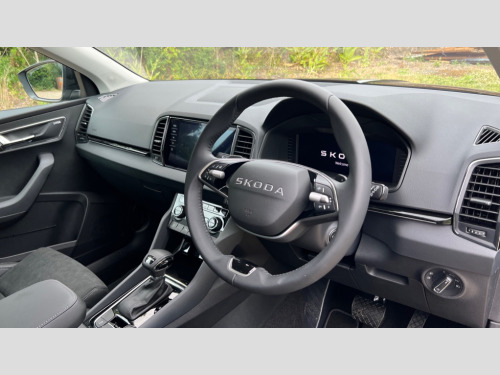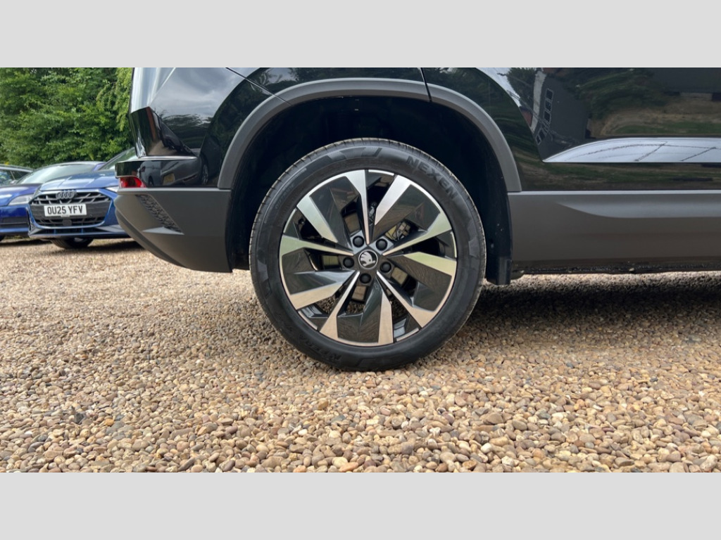 This Skoda Karoq stands out with its fuel economy of 46 mpg, meaning fewer trips to the petrol station. The low CO2 emissions are better for the environment compared to similar vehicles. The spacious boot offers ample room for luggage, shopping, or anything else you need to transport. Furthermore, the Karoq accelerates from 0 to 60mph in just 8.7 seconds, demonstrating its responsive performance. Advanced driver attention and drowsiness monitor, Drive Mode Selection including ECO function, Electro-mechanical PAS, Emergency services call system, Outside temperature gauge, Sensor for driver assistance systems, Service interval indicator, SmartLink wireless for Apple and wired for Android, Start/stop system with regenerative braking, Traffic sign recognition, USB C Port x 2 in front centre console, Virtual Cockpit - 10.25" digital display, Virtual pedal with electrically operated boot door, Wireless smartphone charging, DAB radio with Bluetooth, USB connection, Acoustic glass, Aero front windscreen wipers with intermittent function, Auto dimming rear view mirror with light and rain sensors, Black electric window control buttons, Body colour door mirrors and handles, Electric front and rear windows with child proof lock, Extended rear roof spoiler, Heated rear windscreen, LED daytime running lights, LED rear lights with high functionality welcome effect and dynamic indicators, Light assistant (coming/leaving home/tunnel light), Plastic scuff plates in door apertures, Privacy glass, Rear side wing doors, Rear window wiper with washer system and intermittent control, Safety reflectors on front doors, Third brake light, Unique dark chrome design logo on alloy wheels, 1.5 litre bottle holders in driver and front passenger door panels, 12V socket in boot, 12v socket in front centre armrest with storage compartment and rear air vents, 2 spoke leather heated multifunction steering wheel with DSG paddles, 2 x Tablet holder, 3 rear height adjustable headrests, 3 seat bench in 2nd row, 4 foldable roof handles with rear coat hooks, Black floor carpet, Cargo elements in boot, Chrome inner door handles, Foldable hooks in the boot, Front head restraints, Height adjustable front three point seats belts with tensioners, Height/reach adjust steering wheel, Ice scraper, Illuminated glovebox, Illuminated luggage compartment, Interior noise suppression, Isofix child seat preparation for front passenger seat, Isofix child seat preparation outer rear, Manual lumbar support for front seats, Pearl grey interior ceiling, Pen holder, Pollen filter, Rear boot cover, Rear package tray, Rear reading lights, Rubbish bin door, Safety vest holder, Single front passenger seat, Skoda lettering on steering wheel, Storage box in upper central dashboard closed, Sunvisors with illuminated vanity mirrors, Textile floor mats, Ticket holder, Columbus pack - Karoq, Design Pack - Karoq, Non Smokers pack, Parking pack - Karoq, Automatic door unlocking in case of crash, Automatic fuel cut off in case of crash, Driver airbag, Electronic parking brake with auto hold function, Emergency rear braking signal, ESC (incl. ABS+MSR+ASR+EDS+HBA+DSR+RBS+MKB), Front side airbags, Head airbags, Hill hold control, Knee airbags, Passenger airbag with switch-off function, Pedestrian monitor, Seatbelt reminder signalisation and pretensioner for all seats, Three point seatbelts rear, Two tone horn, Tyre pressure monitor, Alarm with interior monitoring, back up horn and tilt sensor with safe function, Electronic engine immobiliser, Keyless entry and start/stop, Remote central locking with 2 remote folding keys, Black centre console, Chrome framed air vents, Satin black dashboard, Anti-theft wheel bolts protection, Breakdown and tool kit