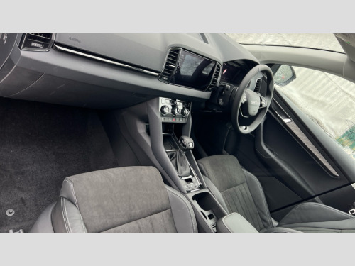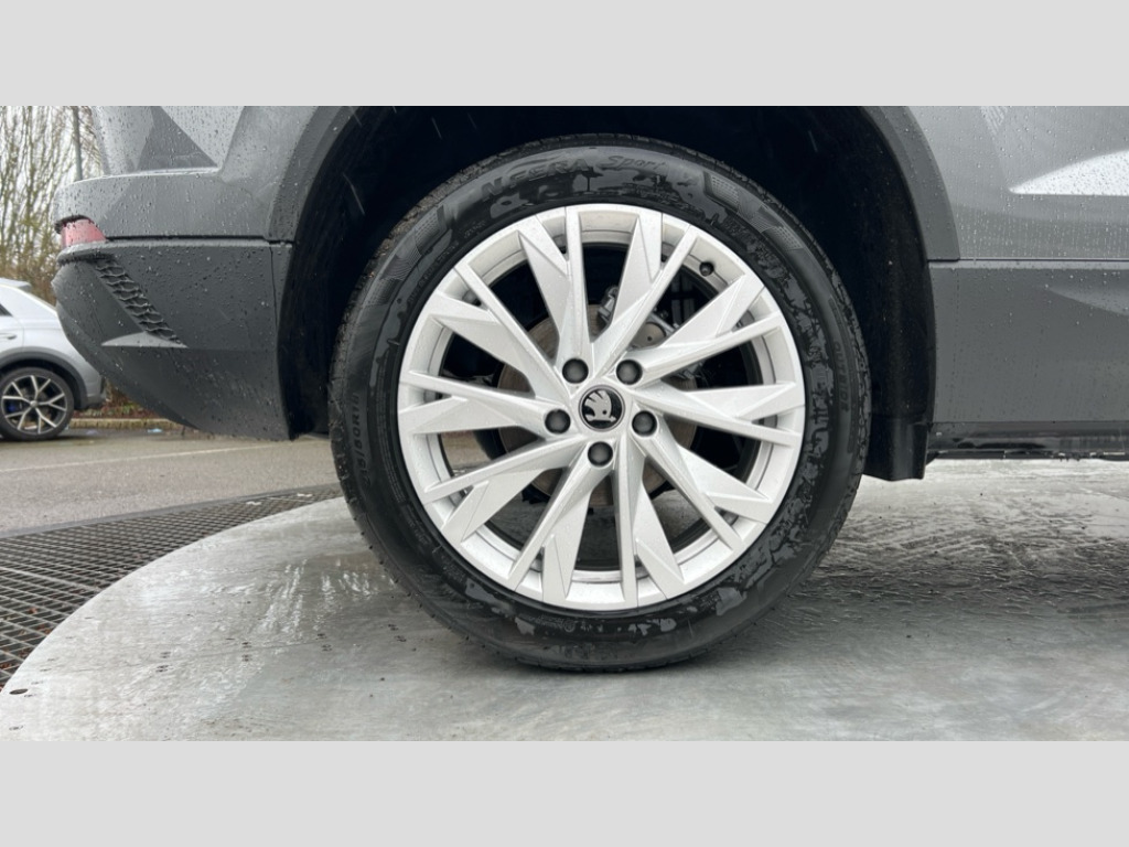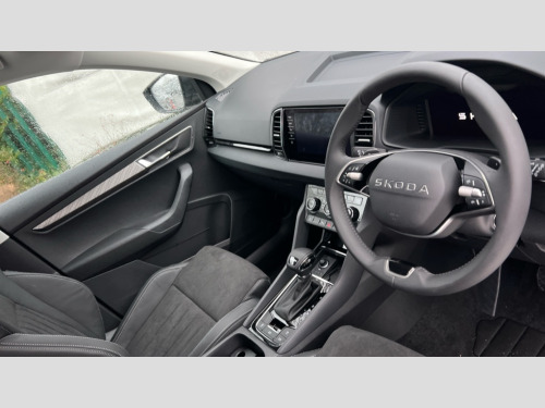 Skoda Karoq 1.5 TSI SE L Edition 5dr DSG Advanced driver attention and drowsiness monitor, Drive Mode Selection including ECO function, Electro-mechanical PAS, Emergency services call system, Outside temperature gauge, Sensor for driver assistance systems, Service interval indicator, SmartLink wireless for Apple and wired for Android, Start/stop system with regenerative braking, Traffic sign recognition, USB C Port x 2 in front centre console, Virtual Cockpit - 10.25" digital display, Virtual pedal with electrically operated boot door, Wireless smartphone charging, DAB radio with Bluetooth, USB connection, Acoustic glass, Aero front windscreen wipers with intermittent function, Auto dimming rear view mirror with light and rain sensors, Black electric window control buttons, Body colour door mirrors and handles, Electric front and rear windows with child proof lock, Extended rear roof spoiler, Heated rear windscreen, LED daytime running lights, LED rear lights with high functionality welcome effect and dynamic indicators, Light assistant (coming/leaving home/tunnel light), Plastic scuff plates in door apertures, Privacy glass, Rear side wing doors, Rear window wiper with washer system and intermittent control, Safety reflectors on front doors, Third brake light, Unique dark chrome design logo on alloy wheels, 1.5 litre bottle holders in driver and front passenger door panels, 12V socket in boot, 12v socket in front centre armrest with storage compartment and rear air vents, 2 spoke leather heated multifunction steering wheel with DSG paddles, 2 x Tablet holder, 3 rear height adjustable headrests, 3 seat bench in 2nd row, 4 foldable roof handles with rear coat hooks, Black floor carpet, Cargo elements in boot, Chrome inner door handles, Decorative door sills with KAROQ badging, Foldable hooks in the boot, Front head restraints, Height adjustable front three point seats belts with tensioners, Height/reach adjust steering wheel, Ice scraper, Illuminated glovebox, Illuminated luggage compartment, Interior noise suppression, Isofix child seat preparation for front passenger seat, Isofix child seat preparation outer rear, Manual lumbar support for front seats, Pearl grey interior ceiling, Pen holder, Pollen filter, Rear boot cover, Rear package tray, Rear reading lights, Rubbish bin door, Safety vest holder, Single front passenger seat, Skoda lettering on steering wheel, Storage box in upper central dashboard closed, Sunvisors with illuminated vanity mirrors, Textile floor mats, Ticket holder, Columbus pack - Karoq, Design Pack - Karoq, Non Smokers pack, Parking pack - Karoq, Automatic door unlocking in case of crash, Automatic fuel cut off in case of crash, Driver airbag, Electronic parking brake with auto hold function, Emergency rear braking signal, ESC (incl. ABS+MSR+ASR+EDS+HBA+DSR+RBS+MKB), Front side airbags, Head airbags, Hill hold control, Knee airbags, Passenger airbag with switch-off function, Pedestrian monitor, Power operated child safety locks, Seatbelt reminder signalisation and pretensioner for all seats, Three point seatbelts rear, Two tone horn, Tyre pressure monitor, Alarm with interior monitoring, back up horn and tilt sensor with safe function, Electronic engine immobiliser, Keyless entry and start/stop, Remote central locking with 2 remote folding keys, Black centre console, Chrome framed air vents, Satin black dashboard, Anti-theft wheel bolts protection, Breakdown and tool kit