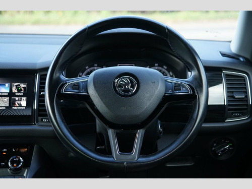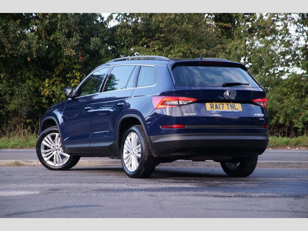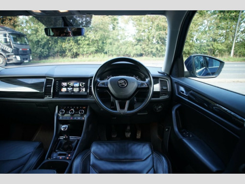 Prestige Car Supermarket in York presents this highly practical and capable 2017 Škoda Kodiaq 1.4 TSI SE L SUV. Finished in non-metallic Pacific Blue and featuring a luxurious Black Leather interior, a desirable factory option costing £310.00, this manual petrol 4WD SUV offers a versatile and comfortable driving experience. It rides on 19in Sirius alloy wheels and features Black Roof Rails and Black Wheel Arch Surrounds. Illumination is provided by Full LED Headlights with AFS and LED Daytime Running Lights and LED Front Fog Lights with Cornering Function. Step inside the highly appointed 5-seater cabin to find Heated Front Seats, a 3-Spoke Leather Multi-Function Steering Wheel, and Dual-Zone Climate Control. Technology is comprehensive with a Columbus Satellite Navigation system, an 8in Bolero Radio touchscreen, and SmartLink Plus. Convenience is a priority with Rear Parking Sensors, an Electrically Operated Boot Door, and KESSY - Keyless Entry and Start System. This model also includes Privacy Glass. Safety and driver assistance systems are extensive, including Front Assist with AEB, Cruise Control, and a Tyre Pressure Monitoring System (TPMS), ensuring a secure and confident drive. Pacific Blue, Leather - Black, 12V Power Socket in Boot, 19in Alloy Wheels - Sirius, 2 Rails with 2 Hooks Including 4 Hooks f, 3-Spoke Leather Multi-Function Steering , 4 Foldable Roof Handles with Clothes Hoo, 4 Lashing Points in Luggage Compartment, Additional 4 Loudspeakers, Aero Rear Window Wiper, Aero Windscreen Wipers with Intermittent, Airbags - Front Side, Alarm with Interior Monitoring and Tilt , Anti-Theft Locking Wheel Bolts, Auto Dimming Rear View Mirror, Auto Door Release and Activation of Warn, Automatic Fuel Supply Cut-Off in Case of, Black Roof Rails, Black Wheel Arch Surround, Bluetooth, Body Coloured Door Mirrors and Door Hand, Bolero Radio with 8in Touchscreen Displa, Bott
