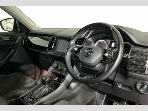 This Skoda Kodiaq TSI SE L from 2020 offers excellent peace of mind with its MOT valid until September 2026 and a clear vehicle history check. This versatile SUV is powered by an efficient 1.5 litre petrol engine, meeting Euro 6 emissions standards. Inside, you'll find comfortable heated front seats, a KESSY keyless entry and start system for effortless access, and dual zone climate control with a humidity sensor to keep everyone comfortable. Parking is made simpler with front and rear parking sensors, and you can stay connected on the go with the integrated Bluetooth system. Experience a smooth and responsive drive with this Kodiaq, capable of reaching 60 miles per hour in just 9.4 seconds. These features, such as the keyless entry and parking sensors, demonstrate how this SE L model offers enhanced convenience and a more premium experience compared to other vehicles in its class. 12V Power Socket in Boot, 19in Alloy Wheels - Sirius, 2 Rails with 2 Hooks, 2-Spoke Leather Multi-Function Steering , 4 Foldable Roof Handles with Clothes Hoo, Aero Front Windscreen Wipers with Interm, Aero Rear Window Wiper, Airbags - Front Side, Alarm with Interior Monitoring and Tilt , Amundsen Touchscreen Satellite Navigatio, Anti-Theft Locking Wheel Bolts, Auto Dimming Rear View Mirror, Auto Door Release and Activation of Warn, Automatic Fuel Supply Cut-Off in Case of, Black Magic, Black Roof Rails, Black Wheel Arch Surround, Bluetooth, Body Coloured Door Mirrors and Door Hand, Bottle Holders in Door Panel in the Fron, Bumpers - Body Coloured, Care Connect - 1 Year, Cargo Storage Compar
