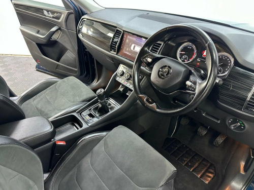 DY70EDJ SKODA KODIAQ 1.5 TSI ACT SE L SUV 5dr Petrol Manual Euro 6 (s/s) (7 Seat) (150 ps)- 68K miles- 1 Owner from new- Amazing space in these 7 seater Kodiaqs! If the extra seats are not needed they fold flat to create a massive boot space! The Skoda Kodiaq looks stunning in blue and offers an absolutely fantastic specification of front and rear park sensors, 19" alloy wheels, LED headlights, heated front seats, Sat Nav, drive modes, Qi wireless charger, electric lift tailgate, light rear privacy glass, autolights, dual zone climate, air conditioning, smart link with apple car play, android auto and mirror link, DAB/FM Radio, bluetooth, cruise control, auto hold brake and stop start. Superb Value for money at this price !! Live far away from us? No problem, we can value your part exchange and arrange finance online from the comforts of your own home and offer home delivery! Whats App Part Ex Valuation Hotline! Send photo's and details to 07591835255