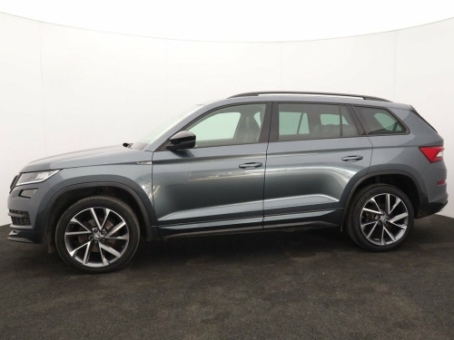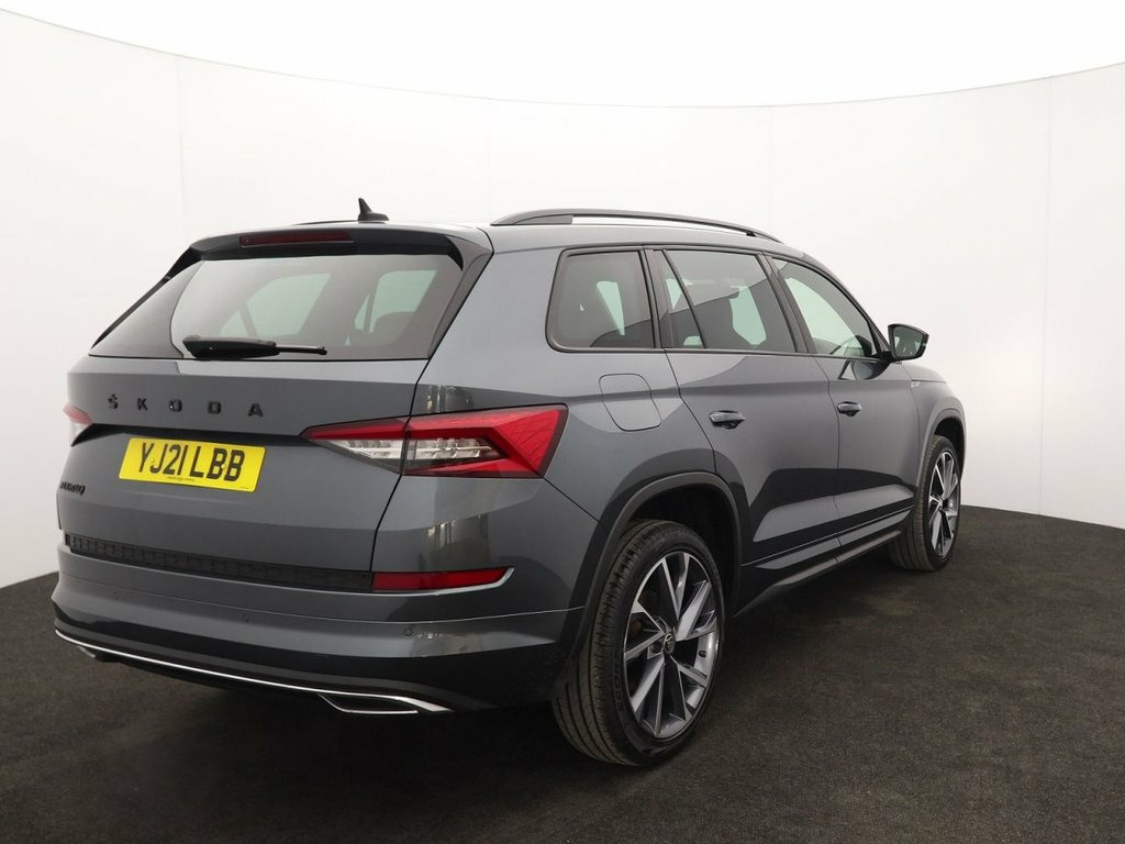 Boasting a full dealership service history and a clear vehicle history check, this 2021 Skoda Kodiaq TSI SportLine presents an excellent example of a well maintained family vehicle. This 7 seat SUV is powered by an efficient 1.5 litre petrol engine, meeting Euro 6 emissions standards. With only 33,000 miles on the clock, it has low mileage for its age. The SportLine trim ensures a stylish appearance, complemented by full LED headlights with an adaptive front light system and LED daytime running lights. For comfort and convenience, it features dual zone climate control with a humidity sensor, heated front seats, and an electrically adjustable driver's seat with a memory function. Parking is made easier with front and rear parking sensors, including parking assistance systems. This Skoda Kodiaq offers a compelling blend of performance and practicality, accelerating from 0 to 60mph in a respectable 9.4 seconds. This performance, combined with its comprehensive features and excellent provenance, indicates that this Kodiaq is a superior choice compared to other similar vehicles on the market. The MOT is long, providing further peace of mind for the new owner. 12V Power Socket in Boot, Bluetooth, Care Connect - 1 Year, Columbus Satellite Navigation, DAB Radio, Infotainment Online - 1 Year, Map Updates, SmartLink, Speakers x8, USB C Port x 2 in Front Centre Console, 20in Alloy Wheels - Vega Anthracite, Black Roof Rails - Door Mirrors and Radi, Black Wheel Arch Surround, Bumpers - Body Coloured, Chrome Exhaust Detailing, Door Handles - Body Coloured, Electrically Adjustable Heated and Foldi, Front and Rear Electric Windows, Heated Rear Window, Privacy Glass, Radiator Grille Frame in Black Design wi, Rear Diffuser, SportLine Badge on Front Fender, Sports Front and Rear Bumpers, Tailgate Lettering in Black, Window Control Switches with Black Trim, 2 R