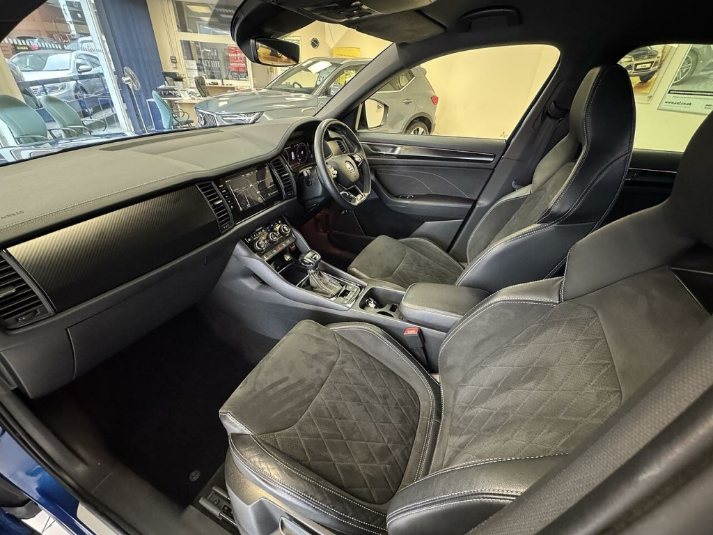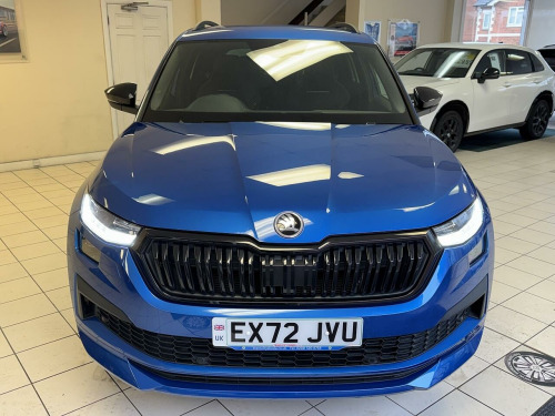 Serviced By Skoda At 20,300 miles and 38,568 miles.We have just taken this stunning Kodiaq in from the one private owner who has kept the car in great condition both inside and out. It comes with some nice features including the TFT Virtual Cockpit , Wireless Phone Charger , Wireless Apple Car Play & Android Auto , Power Tailgate , Heated Front Seats and so much more. Complete with both keys , handbooks , winter & summer mats and load space cover blind. 12V Power Socket in Boot, Bluetooth, Care Connect - 1 Year, Columbus Satellite Navigation, DAB Radio, eCall Plus, Infotainment Online - 1 Year, SmartLink, Speakers x8, USB C Port x 2 in Front Centre Console, Wireless Charging, Cruise Control, Drive Mode Selection, Exterior Temperature Indicator, Parking Sensors - Front and Rear, Rear View Camera, TPMS - Tyre Pressure Monitoring System, 20in Alloy Wheels - Vega Anthracite, Anti-Theft Locking Wheel Bolts, Black Roof Rails, Black Sport Styling - including Front Grille and Window Surrounds, Black Wheel Arch Surround, Bumpers - Body Coloured, Door Mirrors - Gloss Black, Electrically Adjustable - Heated - Folding Door Mirrors - Auto Dimming - Boarding Spots and Memory Function, Extended Rear Spoiler with Finlets in Gloss Black, Front and Rear Electric Windows, Heated Rear Window, Invisible Tailpipe, Privacy Glass, Rear Diffuser, SportLine Badge on Front Fender, Sports Front and Rear Bumpers, Tailgate Lettering in Black, Temporary Space Saving Spare Wheel, Window Control Switches with Black Trim, Front Fog Lights, Full LED Matrix Headlights with Adaptive Front Light System - Cornering Function and AWL - All Weather Lighting System, Headlights - Washers, LED Rear Fog Lights, LED Third Brake Light in Rear Spoiler, Rear LED Lights - High Functionality with Welcome Effect and Dynamic Indicators, 2 Rails with 2 Hooks, 3-Spoke Leather Sport Multifunction Steering Wheel with DSG Paddles, 4 Foldable Roof Handles with Clothes Hooks in Rear, Aero Front Windscreen Wipers with Intermittent Function, Aluminium Pedals, Auto Dimming Rear View Mirror, Black Air Vent Frames, Black Roof Headlining, Bottle Holders in Door Panel in the Front - 1.5 Litre Bottle - and Rear - 1 Litre Bottle, Cargo Storage Compartment in Boot, Chrome Headlight Control Button, Coat Hooks on B Pillar, Courtesy Lights - Front, Covered Storage Compartment on Drivers Side, Decorative Door Sills Front and Rear, Decorative Inserts in Dash and Door - Carbon Finish, Digital Voice Enhancement, Door Handles - Interior in Chrome, Dual-Zone Climate Control with Humidity Sensor and Control, Electrically Adjustable Drivers Seat with Memory Function, Electrically Operated Boot, Front and Rear Door Armrest with Black Adductor Trim, Front Centre Armrest with Storage Compartment - Cupholder and 12V Socket, Gear Shift Lever with Chrome Frame and Black Gloss Insert, Glovebox - Illuminated, Grey Stitching in Dashboard, Grey Stitching in Front and Rear Armrest and Door Inserts, Head Rests - Front Height Adjustable, Heated Front Seats, Illuminated Luggage Compartment - 2 Fixed Lights on Sides, LED Interior Light Package, Manually Adjustable Steering Column, Microsuede Door Panels, Net Programme in Boot - 1x Horizontal Net - 2x Vertical Nets, Non-Smoking Package, Overhead Glasses Storage Compartment, Pollen Filter, Reading Lights in the Front - For Driver and Passenger, Rear Centre Armrest with Cup Holders, Rear Seats Divided 60-40 - Foldable with Sliding Adjustment and Backrest Angle Adjustment, Safety Reflectors on Front and Rear Doors, Safety Vest Holder in Door, Seats - Front Height Adjustment, Sliding Trunk Cover, Small Bags on the Inner Sides of Front Backrests, Sun Visor with Illuminated Vanity Mirror, Tailgate Unlocking from Outside, Textile Floor Mats, Three Rear Head Rests, Ticket Holder on A Pillar, Variable Boot Floor, Virtual Cockpit, Progressive Steering, Speed Limiter, Aero Rear Window Wiper, Airbags - Front Side and Curtain, Alarm with Interior Monitoring and Tilt Sensor - with SAFE Function, Auto Door Release and Activation of Warning Lights in the Event of an Accident, Driver and Front Passenger Airbag, Electronic Parking Brake with Hill Start Assist, Emergency Rear Brake Signal, ESC Electronic Stability Control incl ABS Anti Lock Braking System, Front and Rear Three Point Safety Belt - Front Height Adjustable With Belt Tensioner, Front Assist including AEB - Autonomous Emergency Braking, Fuel Supply Cut-Off in Event of Accident,.