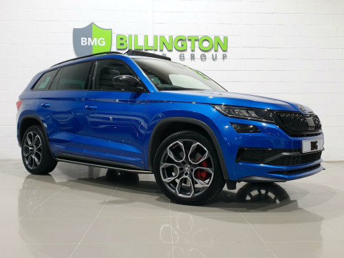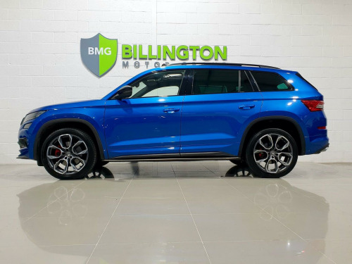 HUGE SPEC KODIAQ VRS 4X4 WITH THOUSANDS IN EXTRAS, FINISHED IN STUNNING RACE BLUE, 80K MILES WITH FULL SKODA MAIN DEALER SERVICE HISTORY, OPTIONAL EXTRAS INCLUDE ELECTRIC TILT/SLIDE PANORAMIC SUNROOF WITH SUNBLIND, CANTON SOUND SYSTEM, SIDE STEPS, VIRTUAL COCKPIT, DRIVE MODE SELECT WITH DYNAMIC CHASSIS CONTROL DCC, ELECTRIC ADJUSTABLE FRONT SEAT WITH MEMORY FUNCTION AND LUMBAR SUPPORT, REAR WINDOW BLINDS, HALF LEATHER ALCANTARA SPORT SEATS WITH RED STITCHING, HEATED STEERING WHEEL, ELECTRIC TOWBAR, HEATED SEATS, 7 SEATS, PUSH BUTTON START, TOUCHSCREEN SAT NAV, APPLE CARPLAY, LED HEADLIGHTS WITH DAYTIME RUNNING LIGHTS, 20 INCH ALLOYS, ELECTRIC TAILGATE, SLEEP PACKAGE, REAR CLIMATE CONTROL, VOICE ACTIVATION, BLUETOOTH WITH AUDIO STREAMING, ELECTRIC FOLDING MIRRORS, DAB RADIO, PRIVACY GLASS, AUTO LIGHTS/WIPERS, 2.0 BITDI PRODUCING 240PS WITH 4 WHEEL DRIVE, STUNNING THROUGHOUT!! Electric Windows x4, Electric Heated Folding Mirrors, Central Locking, On Board Trip Computer, Multi Function Sports Steering, Dual Digital Climate Control, Air Con, Front/Rear Heated Screens, Traction Control, VRS Body Styling, 20 Inch Alloys, Sports Seats, Front And Rear Arm Rests, Tyre Pressure Monitor, Alarm, Immobiliser, Plus All Standard VRS Refinements, 2 KEYS, HPI CLEAR, RESERVE THIS VEHICLE NOW WITH A SMALL DEPOSIT, VIEWING BY APPOINTMENT AT OUR INDOOR SHOWROOM, LOW RATE FINANCE AND PCP, RAC WARRANTY SUPPLIED WITH 12 MONTHS BREAKDOWN COVER, PART EXCHANGE WELCOME, NATIONWIDE DELIVERY, AWARDED 2020 SME BEST PRESTIGE CAR DEALERSHIP IN LANCASHIRE!