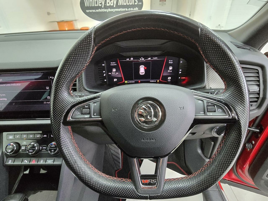75,383 miles, 1 former keeper, service history, finished in velvet red, privacy glass,black leather carbon fibre look/alcantara VRS upholstery, 20'' diamond cut alloy wheels.Specification includes, 7 seater, virtual dash display, DAB radio, satnav, smartlink, android auto, apple carplay, multifunctional paddleshift VRS steering wheel, cruise control, heated seats, dual, climate control, a/c, auto lights, front & rear parking sensors, reversing camera, auto hold, heated powerfold mirrors, power tailgate, black mirror caps & grille, comes with 2 keys.Please see the 'Vehicle Equipment' tab on our website for full specification.Please call our experienced sales team on 0191 4153540 for any additional specification query, an in-depth appraisal/video call or maybe we can help fund your new car. All of our vehicles are subject to a £199 Service Support Fee and are therefore supplied with 12 months MOT, Full Pre Delivery Service, 6 Months Complimentary In-House Warranty, Premium Pre-Collection Valet, Fuel for Your First Journey and a HPI Certificate. We offer a wide range of Finance and Warranty packages as well as fantastic trade rates for alloy wheel refurbs/colour changes, window tinting and much more.. 12V Power Socket in Boot, Bluetooth, Columbus 9.2in Touchscreen Satellite Navigation System, DAB Radio, DVD Drive, Dynamic Sound Booster, Infotainment Online - 1 Year, Mapcare, SmartLink Plus, Speakers x8, USB and SD Card Connectivity, Cruise Control, DCC - Dynamic Chassis Control, Drive Mode Selection, Exterior Temperature Gauge, Parking Sensors - Front and Rear, TPMS - Tyre Pressure Monitoring System, 20in Alloy Wheels - Xtreme, Anti-Theft Locking Wheel Bolts, Black Roof Rails - Door Mirrors and Radiator Grille and Window Surrounds, Black Wheel Arch Surround, Bumpers - Body Coloured, Bumpers - VRS Design, Chrome Exhaust Detailing, Door Handles - Body Coloured, Dual Exhaust Pipes, Electrically Adjustable Heated and Folding Door Mirrors with Memory Function, Front and Rear Electric Windows, Heated Rear Windscreen, Privacy Glass, Radiator Grille - Black Gloss, Rear Diffuser, Red Brake Calipers, SportLine Badge on Front Fender, Sportline Plaque on Dashboard, Sports Front and Rear Bumpers, Tinted Windows, Tyre Repair Kit, vRS Badging on Front Grille and Boot Lid, Full LED Headlights with AFS and LED Daytime Running Lights, Headlights - High Beam Assist, Headlights - Washers, LED Front Fog Lights with Cornering Function, LED Rear Fog Lights, LED Third Brake Light in Spoiler, Light and Rain Sensors, Light Assist with High Beam Control, Rear Lights - LED, 2 Rails with 2 Hooks Including 4 Hooks for Net Programme, 3-Spoke Leather Multi-Function Steering Wheel, 4 Foldable Roof Handles with Clothes Hooks in Rear, 4 Lashing Points in Luggage Compartment, Aero Windscreen Wipers with Intermittent Function, Alcantara Door Panels, Aluminium Pedals, Auto Dimming Rear View Mirror, Black Roof Headlining, Bottle Holders in Door Panel in the Front - 1.5 Litre Bottle - and Rear - 1 Litre Bottle, Carbon Finish Dashboard and Door Inserts, Care Connect - 1 Year, Cargo Storage Compartment in Boot, Centre Console with Open Storage Box - Cup Holder and 12V Socket, Chrome Headlight Control Button, Coat Hooks on B Pillar, Courtesy Lights - Front and Rear, Covered Storage Compartment on Drivers Side, Decorative Insert - Piano Black, Digital Voice Enhancement, Door Handles - Interior in Chrome, Door Sill Panels with KODIAQ Logo, Dual-Zone Climate Control with Humidity Sensor and Control, Electrically Adjustable Drivers Seat with Memory Function, Electrically Operated Boot Door, Front and Rear Height Adjustable Headrests, Front Centre Armrest with Storage Compartment - Cupholder and 12V Socket, Front Door Step with Sportline Logo, Gear Shift Lever with Chrome Frame and Black Gloss Insert, Glovebox - Illuminated and Cooled, Heated Front Seats, Illuminated Luggage Compartment - 2 Fixed Lights on Sides, LED Interior Light Package, Manually Adjustable Steering Column, Net Compartment on Centre Console on Passenger Side, Net Programme in Boot - 1x Horizontal Net - 2x Vertical Nets, Non-Smoking Package, Overhead Glasses Storage Compartment, Pollen Filter, Power Adjustable Lumbar Support for Drivers Seat, Reading Lights in the Front - For Driver and Passenger, Reading Lights in the Rear - 2nd Seat Row, Rear Centre Armrest and Cupholders, Rear Seats Divided 60-40 - Foldable with Sliding Adjustment and Backrest Angle Adjustment, Removable Lamp in Luggage Compartment, Roll Up Luggage Compartment Cover with Intermediate Position, Safety Reflectors on Front and Rear Doors, Safety Vest Holder in Door, Seats - Front Height Adjustment, Small Bags on the Inner Sides of Front Backrests, Small Pockets on the Inner Sides of Front Backrests, Sports Dials, Storage Compartment in Lower Middle Instrument Panel - Illuminated and Closing, Sun Visor with Illuminated Vanity Mirror, Tailgate Unlocking from Outside, Textile Floor Mats, Three Rear Head Rests, Ticket Holder on A Pillar, Umbrella in Door Compartment, Variable Boot Floor, Virtual Cockpit, vRS Stitching in Door Panels, Warning Lights in Front Doors, Without Engine Designation, Electro-Mechanical Power Steering, Progressive S.