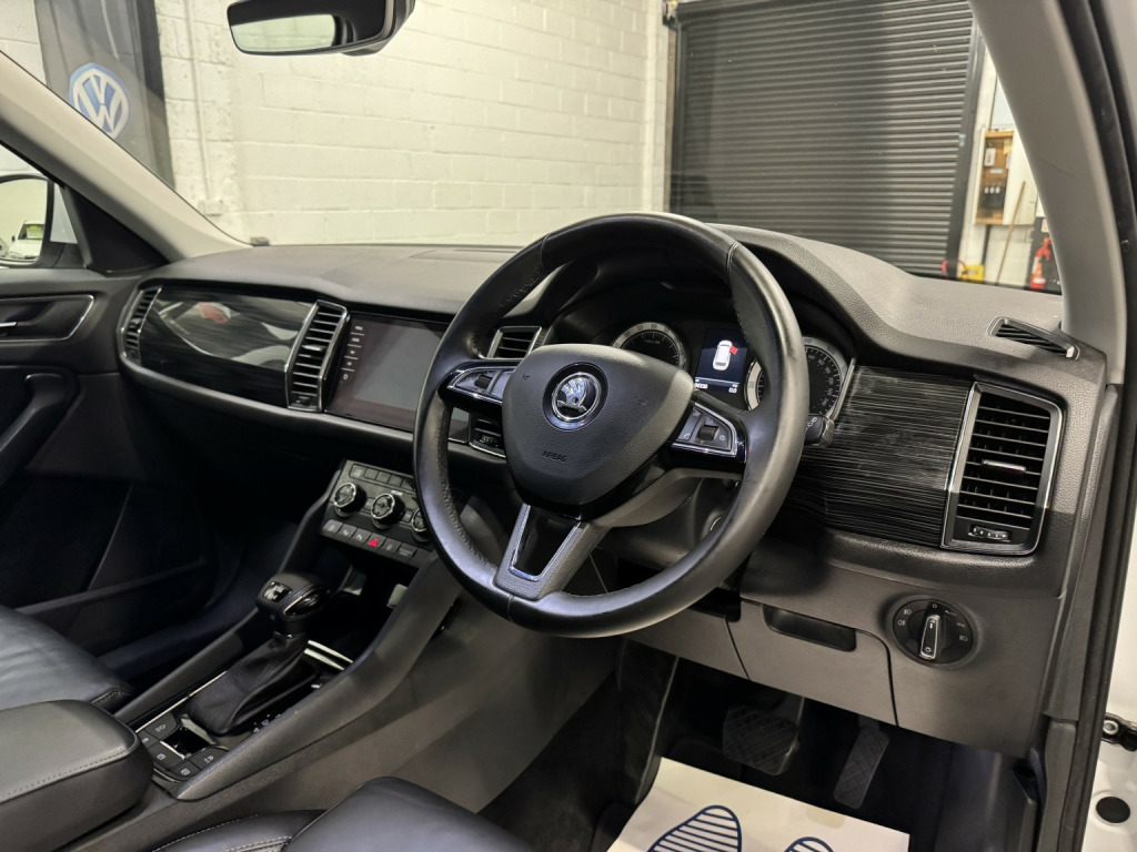 German Motor Store are proud to offer this stunning 2017 (67) Skoda Kodiaq Edition 4x4 DSG Auto to market, finished Candy white with black leather interior. This versatile 7 seat family SUV is in stunning original condition. Its clear its been well looked after and maintained by its one former keeper. It arrives with full Skoda main dealer service history & has just had full DSG gearbox service and battery replaced at Skoda costing over £2k. It is also MOTd until November 2026. Euro 6 compliant meaning no inner city charges as well as being very economical to run. Comes with good specification including... Skoda media, navigation with android auto & Apple car play, DAB Radio, cruise control, parking sensors front & rear, digital climate control, privacy glass, electric memory seats, heated seats, electric tailgate, 3 rd seating, & blue-tooth connectivity. Nation RAC warranty is available. See what other customers are saying by visiting our google reviews. , Viewing By Appointment Only!, , German Motor Store Limited is a family operated business specializing in quality used German Cars with over 30 years experience in the industry! All vehicles come with a 14 day money back guarantee when purchased on line. All cars also come with an in house comprehensive warranty, that can be extended to 12 month, 24 or even 36 months, please ask for quote. We offer nationwide delivery meaning you can buy with ease and with trust. Customer service is at the core of what we do, we are highly rated on both Auto trader and Google so please be sure to read our reviews. We are very relaxed here at German Motor Store you will be able to view your selected car in your own time and never feel under pressure