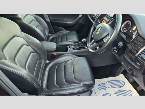 Discover this 2018 Skoda Kodiaq TDI Edition, a versatile seven seater presented in excellent condition. This Four Wheel Drive model boasts a powerful 2.0 litre diesel engine, meeting Euro 6 emissions standards, making it an efficient choice for families and adventurers alike. The Edition trim level comes equipped with a host of desirable features, including the Driver Assistance Pack and Assistance Package 1, which incorporate Blind Spot Assistance and Adaptive Cruise Control for enhanced safety and comfort on longer journeys.Navigate busy streets with ease thanks to the included Park Assist system, featuring front and rear parking sensors. Inside, you'll appreciate the premium feel of the 3 spoke leather heated multi function steering wheel, complete with DSG paddles for manual gear selection. The LED Interior Light Package adds a touch of sophistication to the cabin. With a brisk 0 to 60 mph time of just 8.3 seconds, this Kodiaq offers a compelling blend of performance and practicality, setting it apart from other vehicles in its class.At Brilliant Motors, we are excited to present this vehicle, which has undergone a thorough service and inspection. A full service history is provided, and the car has been meticulously cleaned inside and out. We welcome any inspection or test drive, and all of our vehicles are HPI clear. The vehicle comes with a 90-day basic warranty covering the engine and gearbox, with competitive extended warranty options available for added peace of mind. We offer nationwide home delivery and a 7-day money-back guarantee for online sales. Part exchange is accepted, and we are open 7 days a week. As an FCA registered dealer, we also provide financing options. For more information, please visit our website at www.brilliantmotors.co.uk. dia command, park assist, parking sensors - front and rear, assistance package 1, driver assistance pack, isofix on front passenger seat, 3-spoke leather heated multi-function steering wheel with dsg paddles, folding tables on rear of front seats, leather - black, led interior light package, 12v power socket in boot, 19in alloy wheels - triglav, 2 rails with 2 hooks including 4 hooks for net programme, 3-spoke leather multi-function steering wheel, 4 foldable roof handles with clothes hooks in rear, 4 lashing points in luggage compartment, additional 4 loudspeakers, aero rear window wiper, aero windscreen wipers with intermittent function, airbags - front side, alarm with interior monitoring and tilt sensor - with safe function, anti-theft locking wheel bolts, auto dimming rear view mirror, auto door release and activation of warning lights, automatic fuel supply cut-off in case of accident, black wheel arch surround, bluetooth, body coloured door mirrors and door handles, bolero radio with 8in touchscreen display, bottle holders in door panel in the front - 1.5 litre bottle - and rear - 1 litre bottle, bumpers - body coloured, care connect - 1 year, cargo storage compartment in boot, centre console with open storage box - cup holder and 12v socket, chrome headlight control button, chrome pack, coat hooks on b pillar, colour multifunction trip computer, columbus satellite navigation, courtesy lights - front and rear, covered storage compartment on drivers side, cruise control, dab radio, dvd drive, dash inserts, decorative strip on dashboard and door panel - piano black, door handles - interior in chrome, door steps - front and rear, drive mode selection, driver and front passenger airbags with front passenger airbag deactivation, dual-zone climate control with humidity sensor and control, esc electronic stability control incl abs anti lock braking system, electrically adjustable front seats, electrically folding and auto-dimming door mirrors, electrically operated boot door, electro-mechanical power steering, electromechanical parking brake with hill hold control, emergency brake signal, exterior temperature gauge, front assist including aeb city-urban, front centre armrest with storage compartment - cupholder and 12v socket, front and rear electric windows, front and rear height adjustable headrests, front and rear three point safety belt - front height adjustable with belt tensioner, full led headlights with afs and led daytime running lights, gear shift lever with chrome frame and black gloss insert, glove box on co-drivers side with lid, glovebox - illuminated and cooled, head and knee airbag, headlights - high beam assist, headlights - washers, heated front seats, heated rear windscreen, isofix child seat fittings on outer rear seats with top tether, illuminated luggage compartment - 2 fixed lights on sides, immobiliser, infotainment online - 1 year, invisible tailpipe, kessy - keyless entry and start system, led front fog lights with cornering function, led rear fog lights, led third brake light in spoiler, lane assist and blind spot detection, light assist - high beam assist, light assistant, light and rain sensors, lumbar support for driver and front passenger, manually adjustable steering column, mapcare, net compartment on centre console on passenger side, net programme in boot - 1x horizontal net - 2x vertical nets, non-smoking package, overhead glasses storage compartment, parking sensors - rear, pollen filter, privacy glass, radiator grille frame in black design with chrome strip, reading lights in the front - for driver and passenger, reading lights in the rear - 2nd seat row, rear centre armrest and cupholders, rear lights - led, rear seats divided 60-40 - foldable with sliding adjustment and backrest angle adjustment, removable lamp in luggage compartment, roll up luggage compartment cover with intermediate position, safety reflectors on front and rear doors, safety vest holder in door, seat belt reminder for all seats, seats - front height adjustment, silver roof rails, small bags on the inner sides of front backrests, small pockets on the inner sides of front backrests, smartlink plus, speed limiter, storage compartme