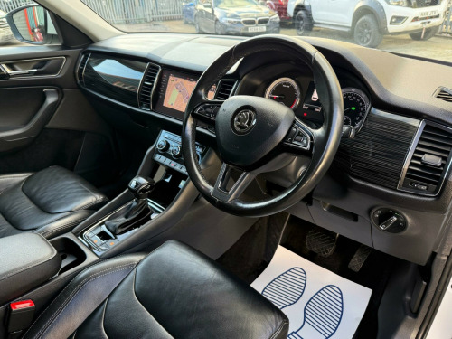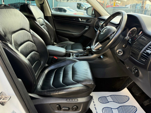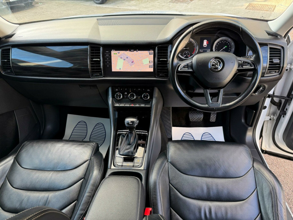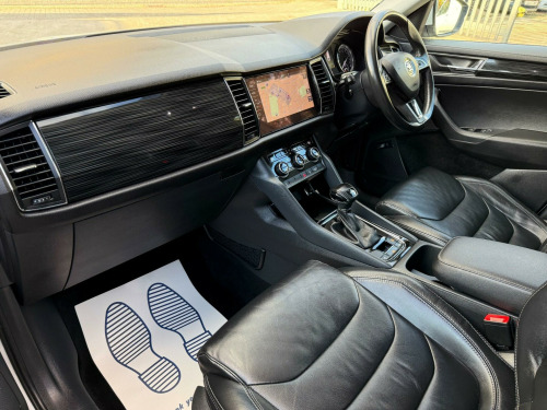 This 2018 Skoda Kodiaq TDI Edition offers excellent peace of mind with a clear vehicle history check. This seven seat SUV is powered by an efficient 2.0 litre diesel engine and meets Euro 6 emission standards. The Edition trim level comes equipped with a range of useful features, including Full LED Headlights with AFS and LED Daytime Running Lights for enhanced visibility, and rear parking sensors to aid manoeuvring. Inside, you'll find Dual Zone Climate Control with a humidity sensor to keep everyone comfortable, and the convenience of wireless phone charging.The Kodiaq TDI Edition is designed for practicality and comfort, making it a great choice for families. Safety is enhanced with Lane Assist and Blind Spot Detection, including Blind Spot Assistance, helping you stay aware of your surroundings. This particular model benefits from a low insurance group, which can help reduce your running costs. Furthermore, its low CO2 emissions indicate that it is more environmentally friendly than many similar vehicles, offering a more economical and responsible driving experience. v power socket in boot, 19in alloy wheels - triglav, 2 rails with 2 hooks including 4 hooks for net programme, 3-spoke leather multi-function steering wheel, 4 foldable roof handles with clothes hooks in rear, 4 lashing points in luggage compartment, additional 4 loudspeakers, aero rear window wiper, aero windscreen wipers with intermittent function, airbags - front side, alarm with interior monitoring and tilt sensor - with safe function, anti-theft locking wheel bolts, auto dimming rear view mirror, auto door release and activation of warning lights, automatic fuel supply cut-off in case of accident, black wheel arch surround, bluetooth, body coloured door mirrors and door handles, bolero radio with 8in touchscreen display, bottle holders in door panel in the front - 1.5 litre bottle - and rear - 1 litre bottle, bumpers - body coloured, care connect - 1 year, cargo storage compartment in boot, centre console with open storage box - cup holder and 12v socket, chrome headlight control button, chrome pack, coat hooks on b pillar, colour multifunction trip computer, columbus satellite navigation, courtesy lights - front and rear, covered storage compartment on drivers side, cruise control, dab radio, dvd drive, dash inserts, decorative strip on dashboard and door panel - piano black, door handles - interior in chrome, door steps - front and rear, drive mode selection, driver and front passenger airbags with front passenger airbag deactivation, dual-zone climate control with humidity sensor and control, esc electronic stability control incl abs anti lock braking system, electrically adjustable front seats, electrically folding and auto-dimming door mirrors, electrically operated boot door, electro-mechanical power steering, electromechanical parking brake with hill hold control, emergency brake signal, exterior temperature gauge, front assist including aeb city-urban, front centre armrest with storage compartment - cupholder and 12v socket, front and rear electric windows, front and rear height adjustable headrests, front and rear three point safety belt - front height adjustable with belt tensioner, full led headlights with afs and led daytime running lights, gear shift lever with chrome frame and black gloss insert, glove box on co-drivers side with lid, glovebox - illuminated and cooled, head and knee airbag, headlights - high beam assist, headlights - washers, heated front seats, heated rear windscreen, isofix child seat fittings on outer rear seats with top tether, illuminated luggage compartment - 2 fixed lights on sides, immobiliser, infotainment online - 1 year, invisible tailpipe, kessy - keyless entry and start system, led front fog lights with cornering function, led rear fog lights, led third brake light in spoiler, lane assist and blind spot detection, light assist - high beam assist, light assistant, light and rain sensors, lumbar support for driver and front passenger, manually adjustable steering column, mapcare, net compartment on centre console on passenger side, net programme in boot - 1x horizontal net - 2x vertical nets, non-smoking package, overhead glasses storage compartment, parking sensors - rear, pollen filter, privacy glass, radiator grille frame in black design with chrome strip, reading lights in the front - for driver and passenger, reading lights in the rear - 2nd seat row, rear centre armrest and cupholders, rear lights - led, rear seats divided 60-40 - foldable with sliding adjustment and backrest angle adjustment, removable lamp in luggage compartment, roll up luggage compartment cover with intermediate position, safety reflectors on front and rear doors, safety vest holder in door, seat belt reminder for all seats, seats - front height adjustment, silver roof rails, small bags on the inner sides of front backrests, small pockets on the inner sides of front backrests, smartlink plus, speed limiter, storage compartment below the driver and passenger seat, storage compartment in lower middle instrument panel - illuminated and closing, sun visor with illuminated vanity mirror, tpms - tyre pressure monitoring system, tailgate unlocking from outside, third rear headrest, ticket holder on a pillar, tinted windows, two tone horn, tyre repair kit, usb and sd card connectivity, umbrella in door compartment, variable boot floor, warning lights in front doors, wireless phone charging and phone box