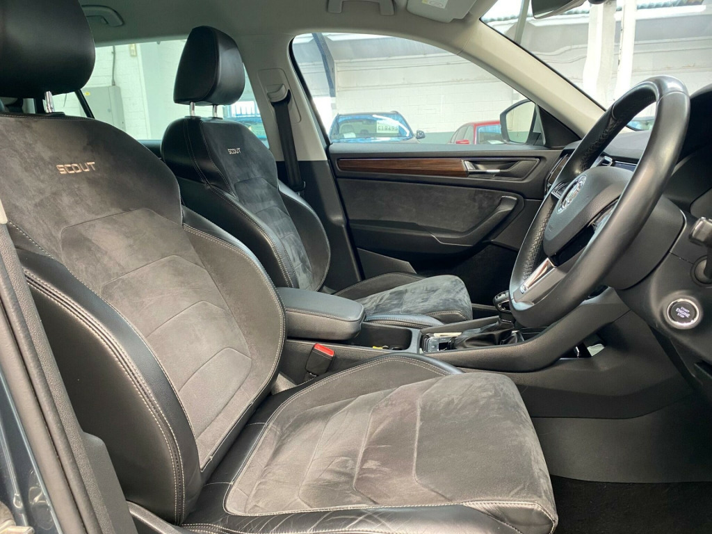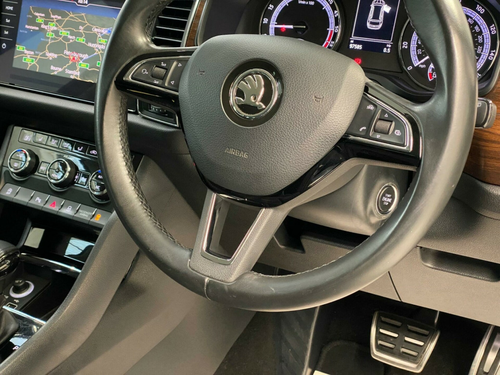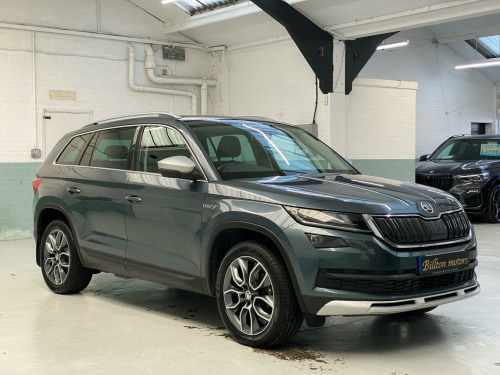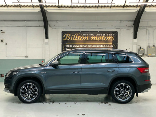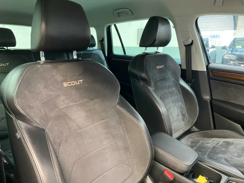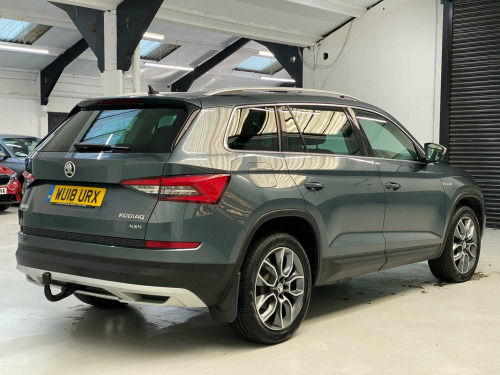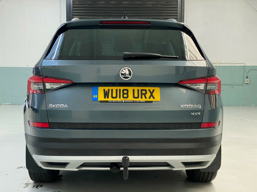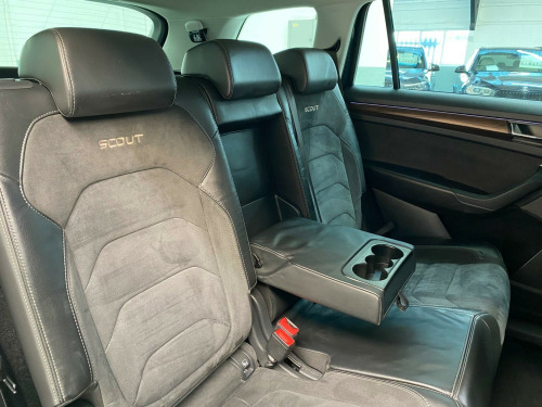 This 2018 Skoda Kodiaq TDI Scout offers excellent value with its MOT valid until April 2026 and a clear vehicle history check. This robust four wheel drive estate, powered by a 2.0 litre diesel engine, provides ample space for up to seven occupants. It meets Euro 6 emissions standards and comes with a three month warranty for your peace of mind. While the service history is partial, the last service was completed at 97,500 miles.The Scout trim level enhances this Kodiaq with practical and convenient features. Enjoy the ease of the electrically operated boot with kick activation, and stay comfortable with heated front seats and dual zone climate control. Safety is also a priority, with Lane Assist and Blind Spot Detection systems included. The automatic headlights and rain sensors add to the driving experience, and its low insurance group makes it an economical choice for families., ne assist and blind spot detection, alcantara - leather - black, electrically operated boot with kick activation - virtual pedal, 12v power socket in boot, 19in alloy wheels - crater anthracite, 2 rails with 2 hooks including 4 hooks for net programme, 3-spoke leather multi-function steering wheel, 4 foldable roof handles with clothes hooks in rear, 4 lashing points in luggage compartment, additional 4 loudspeakers, aero rear window wiper, aero windscreen wipers with intermittent function, airbags - front side, alarm with interior monitoring and tilt sensor - with safe function, alcantara door panels, aluminium pedals, anti-theft locking wheel bolts, auto dimming rear view mirror, auto door release and activation of warning lights, automatic fuel supply cut-off in case of accident, black roof headlining, black wheel arch surround, bluetooth, bolero radio with 8in touchscreen display, bottle holders in door panel in the front - 1.5 litre bottle - and rear - 1 litre bottle, bumpers - body coloured, care connect - 1 year, cargo storage compartment in boot, centre console with open storage box - cup holder and 12v socket, chrome headlight control button, chrome pack, coat hooks on b pillar, columbus satellite navigation, courtesy lights - front and rear, covered storage compartment on drivers side, cruise control, dab radio, dvd drive, door handles - body coloured, door handles - interior in chrome, door steps - front and rear, drive mode selection, driver and front passenger airbags with front passenger airbag deactivation, dual-zone climate control with humidity sensor and control, esc electronic stability control incl abs anti lock braking system, electrically adjustable front seats, electrically folding and auto-dimming door mirrors, electrically operated boot door, electro-mechanical power steering, electromechanical parking brake with hill hold control, emergency brake signal, exterior temperature gauge, front assist including aeb city-urban, front centre armrest with storage compartment - cupholder and 12v socket, front and rear electric windows, front and rear height adjustable headrests, front and rear three point safety belt - front height adjustable with belt tensioner, full led headlights with afs and led daytime running lights, gear shift lever with chrome frame and black gloss insert, glove box on co-drivers side with lid, glovebox - illuminated and cooled, head and knee airbag, headlights - washers, heated front seats, heated rear windscreen, isofix child seat fittings on outer rear seats with top tether, illuminated luggage compartment - 2 fixed lights on sides, immobiliser, infotainment online - 1 year, invisible tailpipe, kessy - keyless entry and start system, led front fog lights with cornering function, led interior light package, led rear fog lights, led third brake light in spoiler, light assistant, light and rain sensors, lumbar support for driver and front passenger, manually adjustable steering column, mapcare, multifunction trip computer, net compartment on centre console on passenger side, net programme in boot - 1x horizontal net - 2x vertical nets, non-smoking package, off road switch, overhead glasses storage compartment, parking sensors - front and rear, pollen filter, privacy glass, radiator grille frame in black design with chrome strip, reading lights in the front - for driver and passenger, reading lights in the rear - 2nd seat row, rear centre armrest and cupholders, rear diffuser, rear lights - led, rear seats divided 60-40 - foldable with sliding adjustment and backrest angle adjustment, removable lamp in luggage compartment, roll up luggage compartment cover with intermediate position, rough road package, safety reflectors on front and rear doors, safety vest holder in door, scout badge on front fender, scout off-road front and rear bumpers, scout plaque on the dashboard, seat belt reminder for all seats, seats - front height adjustment, silver roof rails and door mirrors, small bags on the inner sides of front backrests, small pockets on the inner sides of front backrests, smartlink plus, speed limiter, storage compartment in lower middle instrument panel - illuminated and closing, sun visor with illuminated vanity mirror, tpms - tyre pressure monitoring system, tailgate unlocking from outside, textile floor mats, third rear headrest, ticket holder on a pillar, tinted windows, two tone horn, tyre repair kit, usb and sd card connectivity, umbrella in door compartment, variable boot floor, warning lights in front doors, welcome animation with scout logo, without engine designation, wood finish dashboard and door inserts