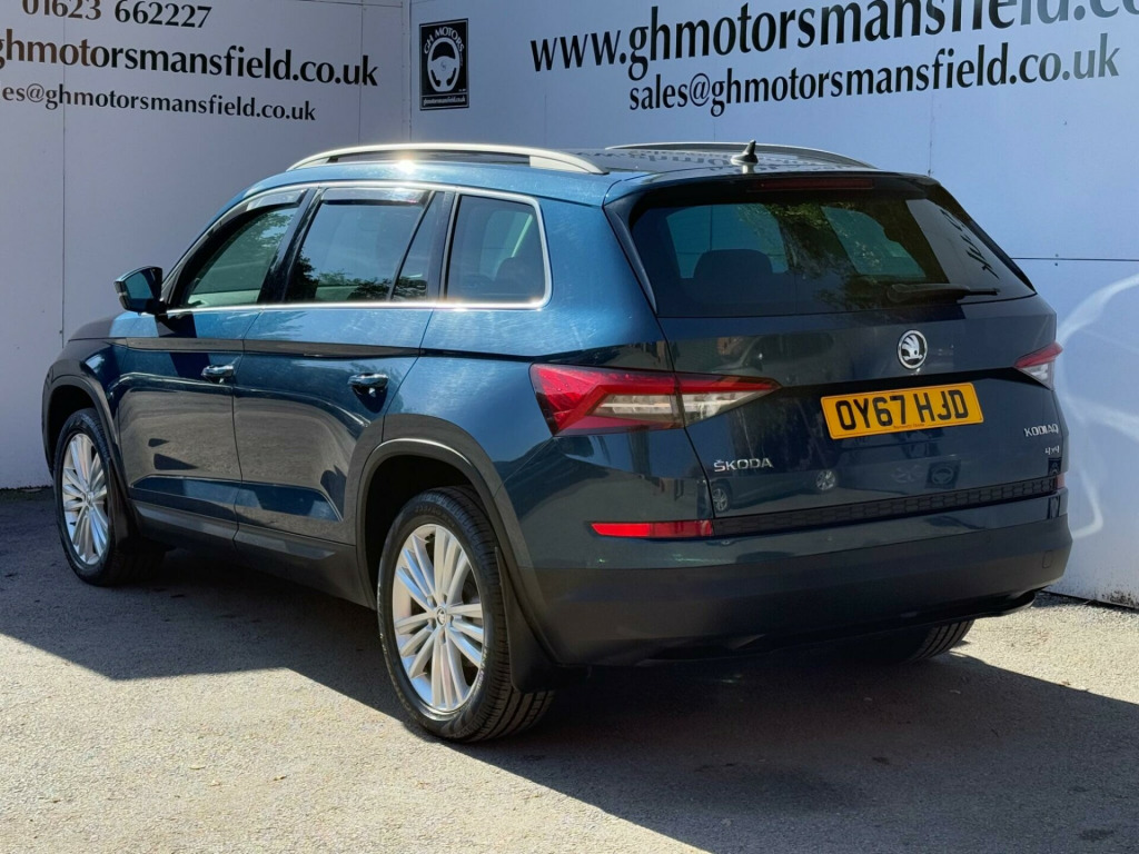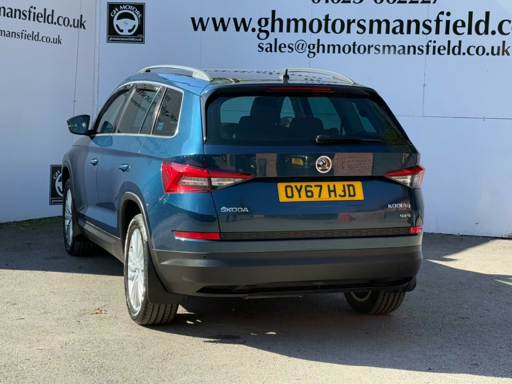 12 MONTHS WARRANTY £299,This 2017 Skoda Kodiaq TDI SE L offers an exceptional combination of practicality and efficiency with remarkably low mileage for its age, having covered just 75,279 miles. As a Euro 6 compliant model, it features a robust 2.0 litre diesel engine paired with a four wheel drive system, ensuring capable performance in various conditions. This SE L trim variant is equipped for comfort and convenience, boasting full LED headlights with Adaptive Frontlight System for enhanced visibility, alongside automatic headlights and light and rain sensors. Inside, you'll find dual zone air conditioning with humidity control to keep all seven occupants comfortable, rear parking sensors for easier manoeuvring, and Bluetooth connectivity for seamless phone integration.The Skoda Kodiaq TDI SE L stands out with its impressive fuel economy, achieving up to 50 miles per gallon, which is a significant advantage for running costs compared to many similar vehicles. Its low insurance group rating further contributes to its affordability. These highlights demonstrate how this Kodiaq provides a compelling package for families or individuals seeking a spacious, well equipped, and economical SUV.. 12V Power Socket in Boot, 19in Alloy Wheels - Sirius, 2 Rails with 2 Hooks Including 4 Hooks for Net Programme, 3-Spoke Leather Multi-Function Steering Wheel, 4 Foldable Roof Handles with Clothes Hooks in Rear, 4 Lashing Points in Luggage Compartment, Aero Rear Window Wiper, Aero Windscreen Wipers with Intermittent Function, Airbags - Front Side, Alarm with Interior Monitoring and Tilt Sensor, Anti-Theft Locking Wheel Bolts, Auto Dimming Rear View Mirror, Auto Door Release and Activation of Warning Lights, Automatic Fuel Supply Cut-Off in Case of Accident, Black Roof Rails, Black Wheel Arch Surround, Bluetooth, Body Coloured Door Mirrors and Door Handles, Bolero Radio, Boot Net Programme, Bottle Holders in Door Panel - Front and Rear, Bumpers - Body Coloured, Care Connect, Cargo Element in Luggage Compartment, Centre Console with Open Storage Box - Cup Holder and 12V Socket, Chrome Headlight Control Button, Chrome Pack, Coat Hooks on B Pillar, Columbus Satellite Navigation, Courtesy Lights - Front and Rear, Covered Storage Compartment on Drivers Side, Cruise Control, DAB Radio, Daytime Running Lights - LED, Decorative Strip on Dashboard and Door Panel - Piano Black, Door Handles - Interior in Chrome, Door Steps - Front and Rear, Drawers Under Driver and Front Passenger Seats, Drive Mode Select, Driver and Passenger Airbag, Dual-Zone Air Conditioning with Humidity Sensor and Control, ESC Electronic Stability Control incl ABS Anti Lock Braking System, Electrically Adjustable Heated and Foldable Mirrors with Boarding Spots, Electro-Mechanical Power Steering, Electromechanical Parking Brake with Hill Hold Control, Emergency Brake Signal, Exterior Temperature Gauge, Front Assist including AEB City-Urban, Front Centre Armrest with Storage Compartment - Cupholder and 12V Socket, Front and Rear Electric Windows, Front and Rear Height Adjustable Headrests, Front and Rear Three Point Safety Belt, Full LED Headlights with AFS, Gear Shift Lever with Chrome Frame and Black Gloss Insert, Glove Box on Co-Drivers Side with Lid, Glovebox - Illuminated and Cooled, Head and Knee Airbag, Headlights - Washers, Heated Front Seats, Heated Rear Windscreen, ISOFIX Child Seat Fittings on Outer Rear Seats with Top Tether, Illuminated Luggage Compartment, Immobiliser, Invisible Tailpipe, KESSY Full - Keyless Entry and Start System, LED Rear Fog Lights, LED Third Brake Light in Spoiler, Light Assistant, Light and Rain Sensors, Lumbar Support for Driver and Front Passenger, Manually Adjustable Steering Column, Mapcare, Net Compartment on Centre Console on Passenger Side, Non-Smoking Package, Overhead Glasses Storage Compartment, Parking Sensors - Rear, Pedestrian Monitor, Pollen Filter, Power Tailgate, Radiator Grille Frame in Black Design with Chrome Strip, Reading Lights - Front, Reading Lights - Rear, Rear Centre Armrest and Cupholders, Rear Lights - LED, Rear Seats Divided 60-40 - Foldable with Sliding Adjustment and Backrest Angle Adjustment, Removable Lamp in Luggage Compartment, Roll Up Luggage Compartment Cover with Intermediate Position, Safety Reflectors on Front and Rear Doors, Safety Vest Holder in Door, Seat Belt Reminder for all Seats, Seats - Front Height Adjustment, Small Bags on the Inner Sides of Front Backrests, Small Pockets on the Inner Sides of Front Backrests, SmartLink, Speakers x4 - Additional, Speed Limiter, Storage Compartment Below the Driver and Passenger Seat, Storage Compartment in Lower Middle Instrument Panel - Illuminated and Closing, Sun Visor with Illuminated Vanity Mirror, Sunset Glass, TPMS - Tyre Pressure Monitoring System, Third Rear Headrest, Ticket Holder, Tinted Windows, Trip Computer - Maxi-Dot, Two Tone Horn, Tyre Repair Kit, Umbrella in Door Compartment, Variable Boot Floor, Warning Lights in Front Doors, Without Engine Designation.