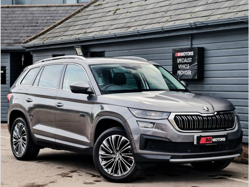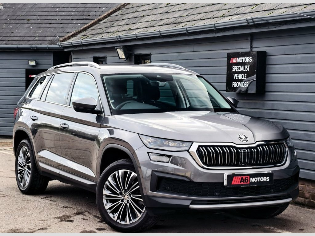 SAME DAY FINANCE AVAILABLE WITH £0 DEPOSIT. CALL OUR FINANCE TEAM FOR A QUOTATION TODAY. REQUEST A PERSONALISED VIDEO TODAY. STUNNING SKODA KODIAQ WITH JUST 1 OWNER FROM BRAND NEW BOASTING A FULL DEALER SERVICE HISTORY & COMPLIMENTED BY A GOOD FACTORY SPEC BENEFITING FROM HAVING 1 MORE SERVICE FROM THE SERVICE PLAN AND EXTENDED MANUFACTURE WARRANTY WHICH EXPIRES NOVEMBER 2028. THIS LOVELY EXAMPLE IS SUPPLIED HPI CLEAR & WITH A NATIONWIDE WARRANTY. GOOD CONDITION THROUGH OUT. DRIVES WELL. GOOD TYRES ALL ROUND. 12V Power Socket in Boot, 19in Alloy Wheels - Cursa Anthracite, 2 Rails with 2 Hooks, 2-Spoke Leather Multifunction Steering W, 4 Foldable Roof Handles with Clothes Hoo, Aero Front Windscreen Wipers with Interm, Aero Rear Window Wiper, Airbags - Front Side and Curtain, Alarm with Interior Monitoring and Tilt , Amundsen Satellite Navigation with 8in T, Anti-Theft Locking Wheel Bolts, Auto Dimming Rear View Mirror, Auto Door Release and Activation of Warn, Black Wheel Arch Surround, Bluetooth, Body Coloured Door Mirrors and Door Hand, Bottle Holders in Door Panel in the Fron, Bumpers - Body Coloured, Care Connect - 1 Year, Cargo Storage Compartment in Boot, Chrome Headlight Control Button, Chr