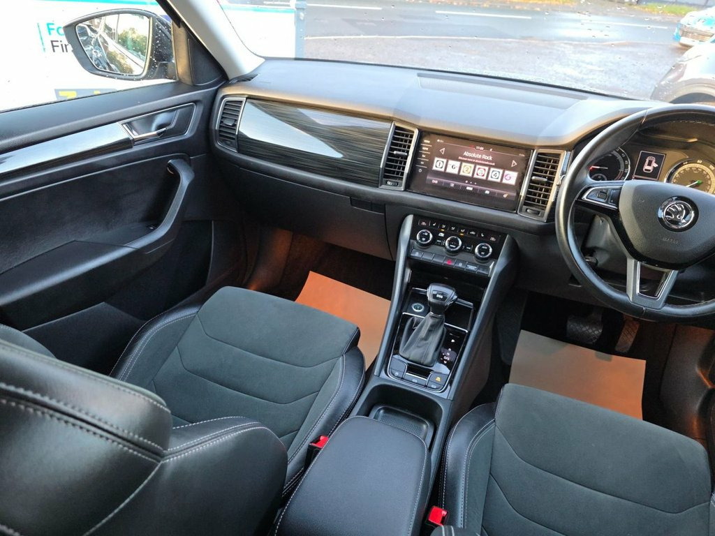 Discover this 2018 Skoda Kodiaq TDI SE L, boasting exceptionally low mileage for its year at just 52,242 miles, complemented by a full service history and a 6 month warranty for your peace of mind. This Euro 6 compliant 2.0 litre diesel model, presented in the SE L trim, offers a practical and comfortable driving experience. Notable features include luxurious heated front and rear seats, versatile silver roof rails, and full LED headlights with adaptive front lighting and daytime running lights for enhanced visibility. Inside, you'll appreciate the dual zone climate control with a humidity sensor, ensuring a pleasant cabin temperature for all occupants, alongside rear parking sensors to assist with manoeuvring. This Skoda Kodiaq stands out with its impressive fuel economy, achieving a remarkable 57 miles per gallon, which indicates its efficiency compared to similar vehicles. Furthermore, its low insurance group and low CO2 emissions highlight its cost effectiveness and environmental consideration. These combined factors make this Kodiaq TDI SE L a sensible and appealing choice for those seeking a well equipped and economical family SUV. Silver Roof Rails, 19in Alloy Wheels - Triglav, Parking Sensors - Front and Rear, Black Magic, Heated Front and Rear Seats, 12V Power Socket in Boot, 19in Alloy Wheels - Sirius, 2 Rails with 2 Hooks Including 4 Hooks f, 3-Spoke Leather Multi-Function Steering , 4 Foldable Roof Handles with Clothes Hoo, 4 Lashing Points in Luggage Compartment, Aero Rear Window Wiper, Aero Windscreen Wipers with Intermittent, Airbags - Front Side, Alarm with Interior Monitoring and Tilt , Anti-Theft Locking Wheel Bolts, Auto Dimming Rear View Mirror, Auto Door Release and Activation of Warn, Automatic Fuel Supply Cut-Off in Case of, Black Roof Rails, Black Wheel Arch Surround, Bluetooth, Body Coloured Door Mir