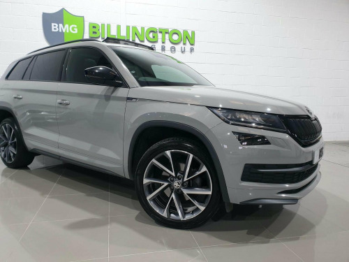 HUGE SPEC KODIAQ 4X4 WITH THOUSANDS IN EXTRAS, FINISHED IN STUNNING METEOR GREY, 73K MILES WITH FULL SKODA MAIN DEALER SERVICE HISTORY, OPTIONAL EXTRAS INCLUDE ELECTRIC TILT/SLIDE PANORAMIC SUNROOF WITH SUNBLIND, VIRTUAL COCKPIT, ADAPTIVE CRUISE CONTROL, ELECTRIC ADJUSTABLE FRONT SEAT WITH MEMORY FUNCTION AND LUMBAR SUPPORT, HALF LEATHER ALCANTARA SPORT SEATS, LED INTERIOR LIGHTING PACK, HEATED SEATS, 7 SEATS, PUSH BUTTON START, TOUCHSCREEN SAT NAV, APPLE CARPLAY, LED HEADLIGHTS WITH DAYTIME RUNNING LIGHTS, 20 INCH ALLOYS, ELECTRIC TAILGATE, FRONT AND REAR PARKING SENSORS, FRONT ASSIST, VOICE ACTIVATION, BLUETOOTH WITH AUDIO STREAMING, ELECTRIC FOLDING MIRRORS, DAB RADIO, PRIVACY GLASS, AUTO LIGHTS/WIPERS, 2.0TDI PRODUCING 150PS WITH 4 WHEEL DRIVE, STUNNING THROUGHOUT!! Electric Windows x4, Electric Heated Folding Mirrors, Central Locking, On Board Trip Computer, Multi Function Sports Steering, Dual Digital Climate Control, Air Con, Front/Rear Heated Screens, Traction Control, 20 Inch Alloys, Sports Seats, Front And Rear Arm Rests, Tyre Pressure Monitor, Alarm, Immobiliser, Plus All Standard Sportline Refinements, 2 KEYS, HPI CLEAR, RESERVE THIS VEHICLE NOW WITH A SMALL DEPOSIT, VIEWING BY APPOINTMENT AT OUR INDOOR SHOWROOM, LOW RATE FINANCE AND PCP, RAC WARRANTY SUPPLIED WITH 12 MONTHS BREAKDOWN COVER, PART EXCHANGE WELCOME, NATIONWIDE DELIVERY, AWARDED 2020 SME BEST PRESTIGE CAR DEALERSHIP IN LANCASHIRE!