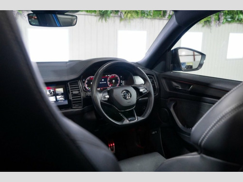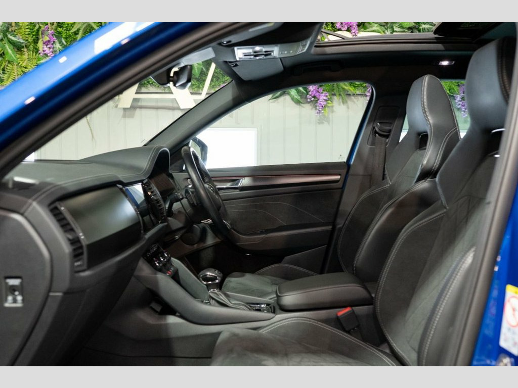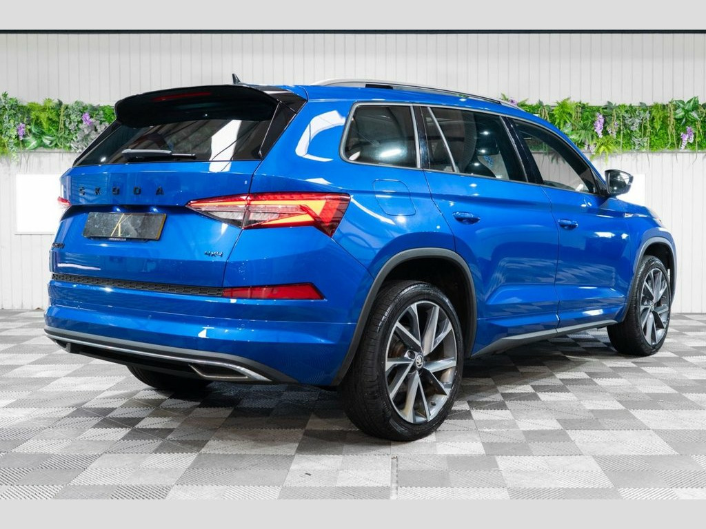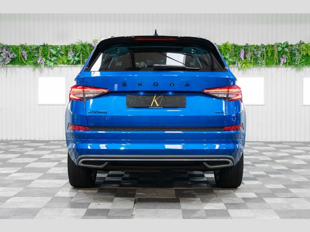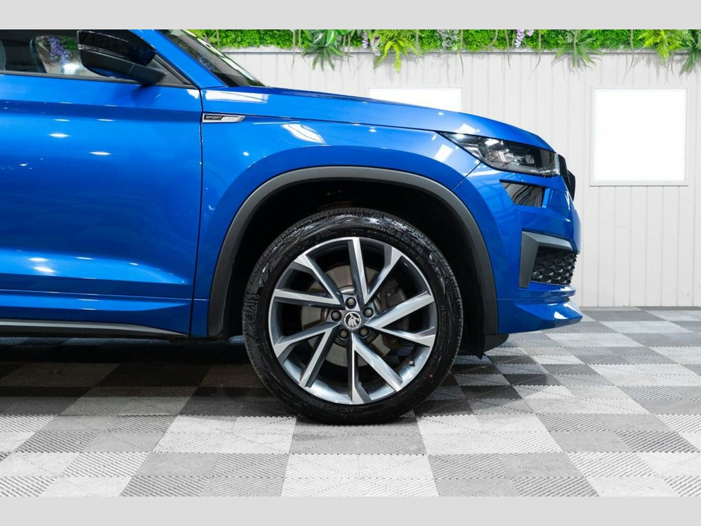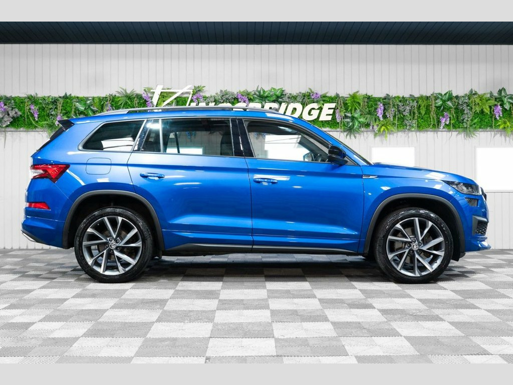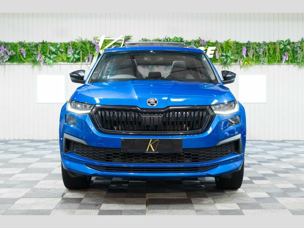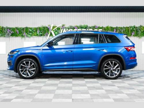 Kingsbridge is delighted to introduce our 2022 Skoda Kodiaq Sport Line 4WD DSG Auto with 7 seats, featuring the more powerful 2.0TDI engine, delivering 200bhp, and equipped with sought-after extras that make our Kodiaq model stand out above the rest. Extras include a Panoramic Sunroof, Tow Bar, Heated front seats, spare wheel, Reverse camera, front and rear parking sensors, wireless Apple CarPlay, Electric Memory Driver's Seat, and more. Skoda Kodiaq Sportline gives you a more aggressive sporty look and feel with fully colour codes exterior bumpers and trim. Exterior: Black styling, 20-inch anthracite alloy wheels. Interior: Microsuede/Alcantara sports seats, LED interior light pack, Sportline logos on door sills and a plaque on the dashboard. Features: Electronically adjustable front seats with memory function, heated front seats, and a panoramic roof. Focus: A dynamic, athletic, and sporty aesthetic. 2 Owners (1st owner for just over a year and 2nd owner for 2 years) - Full Main Dealer Skoda Service History Sportline - Microsuede-Leather - Black, Race Blue, Winter Pack - Heated Front Seats, Electrically Adjustable Front Seats with, Panoramic Sunroof, Electrically Folding Tow Bar with Adapto, 12V Power Socket in Boot, 2 Rails with 2 Hooks, 20in Alloy Wheels - Vega Anthracite, 3-Spoke Leather Sport Multifunction Stee, 4 Foldable Roof Handles with Clothes Hoo, Aero Front Windscreen Wipers with Interm, Aero Rear Window Wiper, Airbags - Front Side and Curtain, Alarm with Interior Monitoring and Tilt , Aluminium Pedals, Anti-Theft Locking Wheel Bolts, Auto Dimming Rear View Mirror, Auto Door Release and Activation of Warn, Black Air Vent Frames, Black Roof Headlining, Black Roof Rails, Black Sport St
