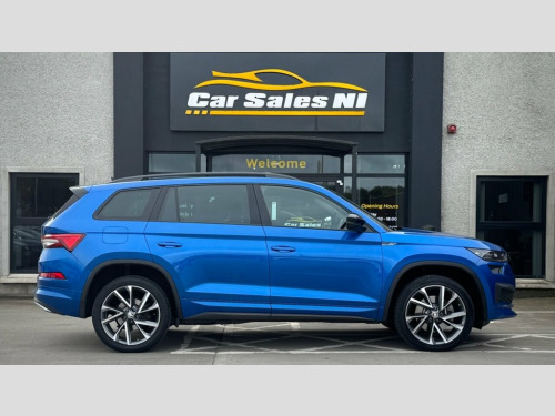 2022 SKODA KODIAQ SPORTLINE 4WD 2.0 TDI 148 BHP 1 Owner form new, Covered 45k miles, Finished in Race Blue, Key Features include: 20'' Factory fitted alloy wheels Rear Privacy glass Front and Rear Parking sensors Reversing camera Half Suede Sport Line interior Leather Multifunctional steering wheel Electrically adjustable drivers seat Heated front seats Dual Climate control DAB Radio / Bluetooth / Sat Nav Apple / Android Car Play 7 Seats Electronic Tailgate ISOFIX Child seat points And so much more... Call today to arrange a test drive Tailored finance packages available to suit your needs (Excludes ROI) Comprehensive warranty on all cars Trade ins welcome Delivery to North and South of Ireland if required 12V Power Socket in Boot, 2 Rails with 2 Hooks, 20in Alloy Wheels - Vega Anthracite, 3-Spoke Leather Sport Multifunction Stee, 4 Foldable Roof Handles with Clothes Hoo, Aero Front Windscreen Wipers with Interm, Aero Rear Window Wiper, Airbags - Front Side and Curtain, Alarm with Interior Monitoring and Tilt , Aluminium Pedals, Anti-Theft Locking Wheel Bolts, Auto Dimming Rear View Mirror, Auto Door Release and Activation of Warn, Black Air Vent Frames, Black Roof Headlining, Black Roof Rails, Black Sport Styling - including Front Gr, Black Wheel Arch Surround, Bluetooth, Bottle Holders in Door Panel in the Fron, Bumpers - Body Coloured, Care Connect - 1 Year, Cargo Storage Compartment in Boo