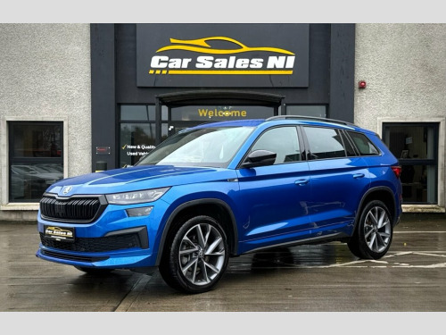 2024 SKODA KODIAQ SPORTLINE 4WD 2.0 TDI 148 BHP Covered 32k miles, Finished in Race Blue, Key Features include: 20'' Factory fitted alloy wheels Rear Privacy glass Front and Rear Parking sensors Reversing camera Half Suede Sports Interior Leather Multifunctional steering wheel Paddle shift Heated front seats Electrically adjustable front seats Dual Climate control Virtual cockpit DAB Radio / Bluetooth / Sat Nav Apple / Android Car Play Electronic Tailgate 7 Seats ISOFIX Child seat Points And so much more... Call today to arrange a test drive Tailored finance packages available to suit your needs Comprehensive warranty on all cars Trade ins welcome Delivery to North and South of Ireland if required 12V Power Socket in Boot, 2 Rails with 2 Hooks, 20in Alloy Wheels - Vega Anthracite, 3-Spoke Leather Sport Multifunction Stee, 4 Foldable Roof Handles with Clothes Hoo, Aero Front Windscreen Wipers with Interm, Aero Rear Window Wiper, Airbags - Front Side and Curtain, Alarm with Interior Monitoring and Tilt , Aluminium Pedals, Anti-Theft Locking Wheel Bolts, Auto Dimming Rear View Mirror, Auto Door Release and Activation of Warn, Black Air Vent Frames, Black Roof Rails, Black Sport Styling - including Front Gr, Black Wheel Arch Surround, Bluetooth, Bottle Holders in Door Panel in the Fron, Bumpers - Body Coloured, Care Connect - 1 Year, Cargo Storage Compartment in Boot, Chrome Headlight Con
