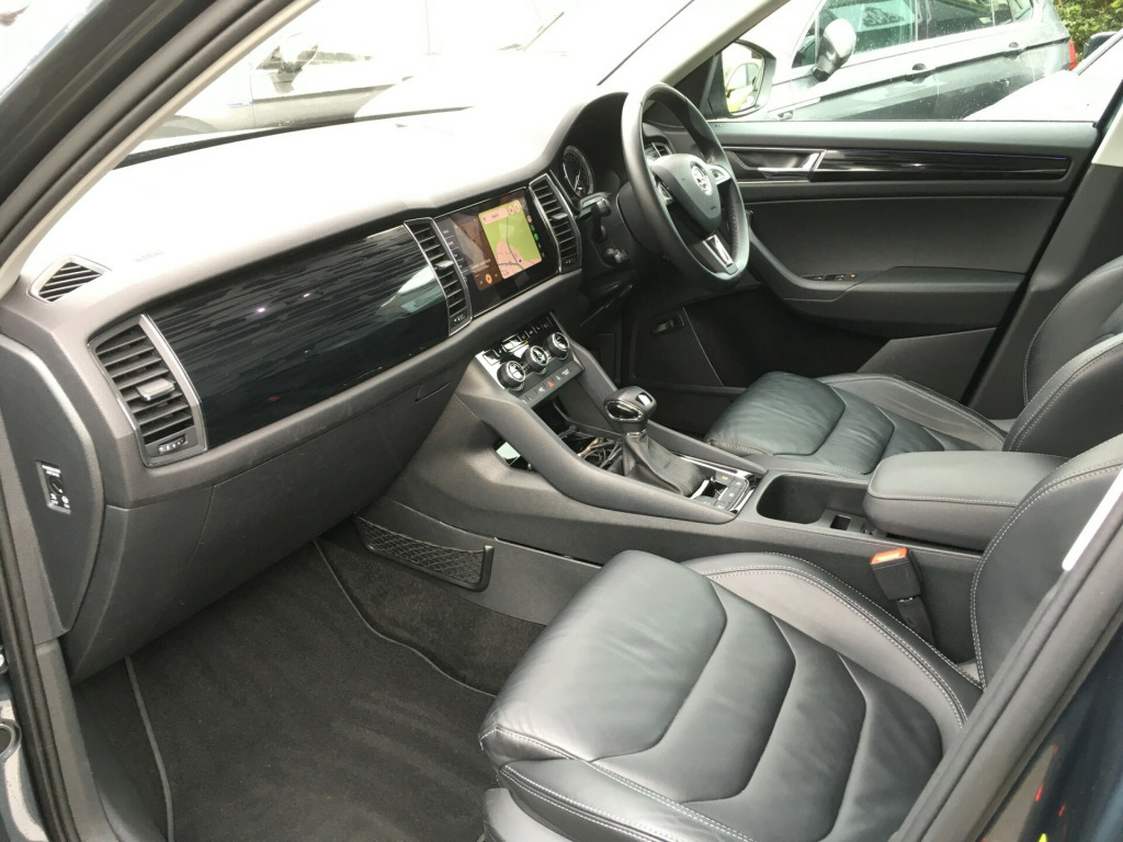 Cuckfield Motor Company are delighted to offer for sale this well presented 2 Owner, Skoda Kodiaq Edition TSi 4x4. Finished in Metallic Grey with Black Leather, this 7 Seat 4 Wheel Drive Car has Full Service History with recorded visits at 7664, 16087, 21266, 23578, 29220, 33343, 37293 and 41068 miles. In addition the Oil for the AWD Coupling was renewed in July 24 and the Gearbox Oil in July 25. Specification includes 7 Seats---Opening Panoramic Roof---CARPLAY / Android Auto---Front & Rear Sensors---360 / Rear view Camera---Power Tailgate---Sat Nav---Bluetooth Phone & Audio---ISOFIX---Heated Front Seats---Memory Electric Driver & Passenger Seat---19'' Alloy Wheels---Door Edge Protectors---Heated Folding Door Mirrors---Air Conditioning and much more.Every car we offer comes with a comprehensive provenance check certificate, Minimum 6 month warranty and new MOT and service where applicable. All part exchanges welcome.We offer extremely competitive finance packages to help you fund your new car.Cuckfield Motor Company Ltd is a family run business FCA approved dealer established for over 20 years, With 30 years experience in the motor trade.We are located in the village of Cuckfield just off the A23, 15 minutes from Gatwick airport and only 5 minutes from Haywards Heath train station.Please contact us via phone/email to view this car today. email us on: salescmc-cars.co.uk01444 414129, in alloy wheels - triglav, 2 owners, 7 seats, air conditioning, android auto, aux & usb, black leather seats, bluetooth phone & audio, carplay, cruise control, dab radio, electric memory seats, full service history, heated seats, keyless start, power tailgate, privacy glass, satellite navigation, ulez compliant