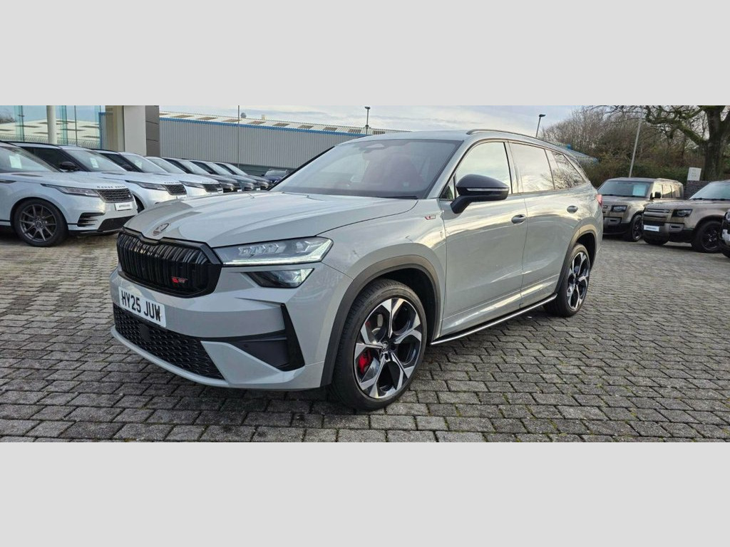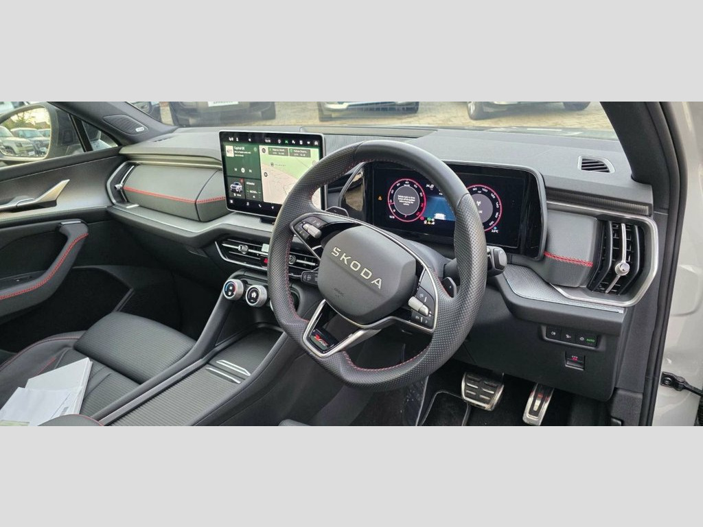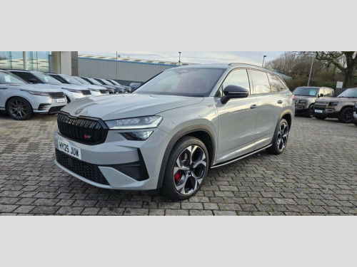 FINANCE AVAILABLE Here we have for sale a 2025 SKODA KODIAQ 2.0 TSI vRS SUV 5dr Petrol DSG 4WD Euro 6 (s/s) (7 Seat) (265 ps) This car has had just 1 owner from new and is in impeccable condition throughout and benefits from incredible specification Winter Package, Meteor Grey, Perforated and Faux Leather - Black with, vRS Suite Design Selection, Running Boards, Panoramic Sunroof, 1 USB-C Port in Rear View Mirror, 1.5 Litre Bottle Storage Points in All D, 2 USB-C Ports in the Rear, 20in Alloy Wheels - Elias Black Polished, 3 Configurable Smart Dials with 32mm Col, 3-Spoke Leather Heated Sports Steering W, Acoustic Package, Airbag - Curtain - Front Side and Center, Alarm with Interior Monitoring and Tilt , Aluminium Pedals, Anti-Theft Locking Wheel Bolts, Auto Dimming Rear View Mirror, Auto Door Release and Activation of Warn, Automatic Gear Selector on Steering Colu, Black Decorative Trims, Black Microsuede Dashboard and Door Deco, Blac