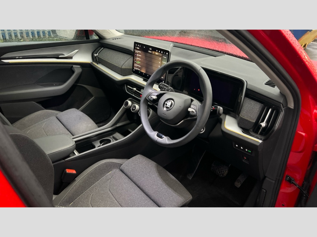 Skoda Kodiaq 1.5 TSI e-TEC SE 5dr DSG 13" satellite navigation touchscreen display, Blind spot detection with door exit warning, Bluetooth system, ChatGPT functionality, Drive mode selector, Driver alert with fatigue sensor, Driver drowsiness alert system, Dry display cleaner, e call+, Front and rear parking sensors, Front cross traffic assist, Lane assist, PAS, Rear traffic assist, Rear view camera, Tailgate unlocking from outside, Traffic sign recognition, USB C Port x 2 in front centre console, Virtual Cockpit - 10.25" digital display, Voice control system, Wireless charging for two smartphones (15W) with cooling function, Wireless SmartLink for Apple CarPlay and Android Auto, Stop/start function, 2x USB-C in the rear, DAB Digital radio, Aero front windscreen wipers with intermittent function, All weather light, Auto dimming rear view mirror, Black wheel arch surrounds, Body colour bumpers, Body colour door mirrors and handles, Cornering light and poor weather light, Electric folding /adjustable/separted heated/folding door mirrors, auto dimming with boarding sports and memory function, Electric front and rear windows, Exterior black decorative trims, Heat insulating glass in windshield, Heated rear window, Ice scraper in fuel tank cap, Invisible tailpipe, LED daytime running lights, LED rear fog light, LED third brake light in rear spoiler, Light assistant with automatic headlight control and coming home feature, Logo projection in door mirrors, Rear side wing doors, Rear spoiler, Rear window wiper, Safety reflectors on front and rear doors, Window control switches with black trim, Windscreen wipers with rain sensor, Without engine designation, 1.5l bottle holder points in all door, 12V socket in boot, 1x centre rear reading light, 3 configurable smart dials with 32mm coloured display, 3 seat bench in 2nd row, 4 foldable roof handles with rear coat hooks, Ambient interior lighting - Dashboard, front-door stowage compartments, front and rear door panels and footwell lighting, Automatic gear selector on steering wheel, Chrome interior door handles, Driver/front passenger reading lights, Fabric headlining, Fixed bench 40:60:40 split folding backrests, Front and rear floor mats, Front centre armrest with jumbo box storage compartment, cup holder and 12V socket, Front courtesy lights, Height adjustable front headrests, Isofix child seat fittings in outer rear seats and front passenger with top tether, Manually adjustable steering column, Pollen filter, Rear centre armrest with cupholders, Rear seat boot backrest release, Retractable luggage compartment cover, Single front passenger seat, Sliding trunk cover, Small Bags on the inner sides of the front backrests, Storage pocket including mobile phone pockets on the backs of the front seats, Sunvisors with illuminated vanity mirrors, Three rear height adjustable headrests, Ticket holder on A Pillar, Tri zone climate control, Umbrella in door panel x1 made from sustainable materials, Upper and lower glovebox with card holder and coin compartment, USB C port by rear view mirror for charging only (15W), Auto door release and activation of warning lights in the event of an accident, Driver and front passenger airbag with knee airbag and front passenger airbag deactivation, Electric child locks, Electronic parking brake, ESC (incl. ABS+EMD+MSR+ASR+EDL+HBA+DSR+RBS+ESBS+MCB+TSA+XDS), Front assist with braking reaction to vehicles, pedestrians and cyclists, Front disc brakes, Fuel cut off safety device, Height adjustable front 3 point seatbelts + pretensioners, Hill hold control, Junction assist with automatic emergency braking, Rear disc brakes, Safety vest holder in door, Seat belt reminder for all seats, Three point rear seat belts, Two tone horn, Tyre pressure monitor, Alarm with interior monitoring and tilt sensor with safe function, Anti-theft wheel bolts, Immobiliser, Remote central locking with 2 keys