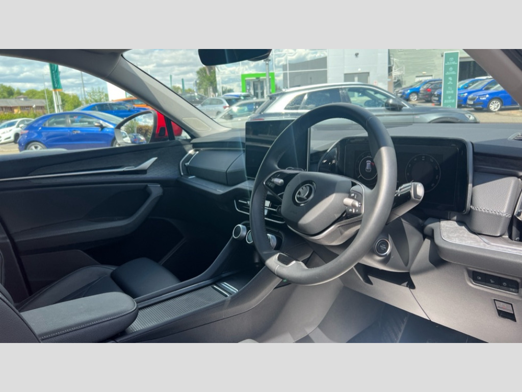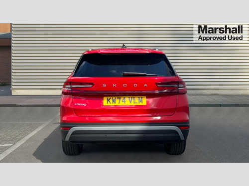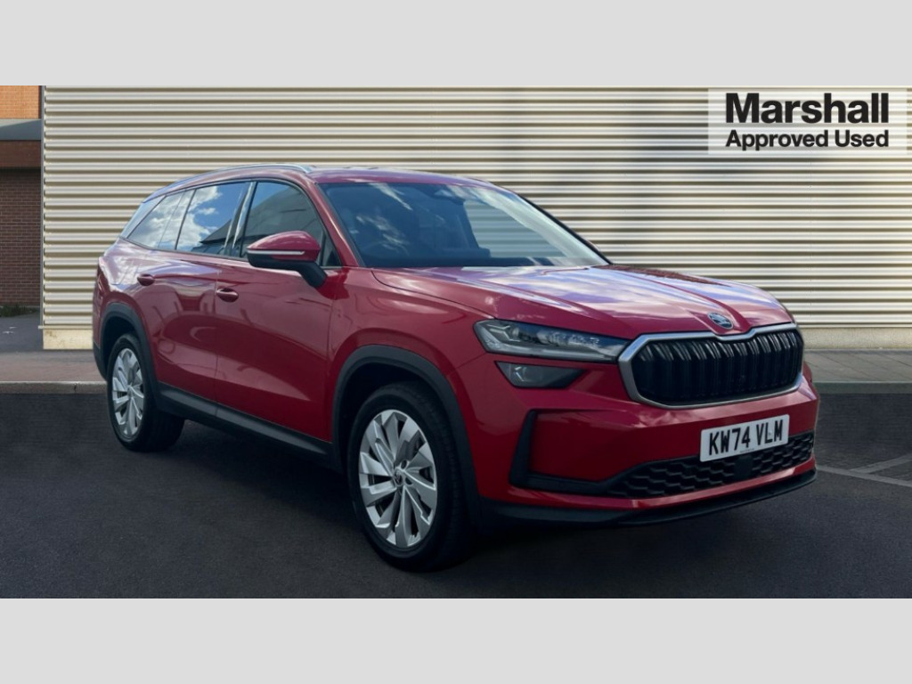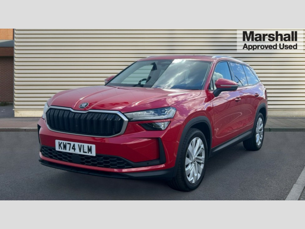 Skoda Kodiaq 1.5 TSI e-TEC SE L 5dr DSG [7 Seat] 13" satellite navigation touchscreen display, Blind spot detection with door exit warning, Bluetooth system, ChatGPT functionality, Drive mode selector, Driver alert - Fatigue and drowsiness monitor, Dry display cleaner, Emergency call, Front and rear parking sensors, Front cross traffic assist, Lane assist, PAS, Rear traffic assist, Tailgate unlocking from outside, Traffic sign recognition, USB C Port x 2 in front centre console, Virtual Cockpit - 10.25" digital display, Voice control system, Wireless charging for two smartphones (15W) with cooling function, Wireless SmartLink for Apple CarPlay and Android Auto, Stop/start function, 2x USB-C in the rear, DAB Digital radio, Aero front windscreen wipers with intermittent function, Auto dimming rear view mirror, AWL (all weather lighting) and all weather light with cornering function, Black wheel arch surrounds, Body colour bumpers, Body colour door mirrors and handles, Cornering light and poor weather light, Electric folding /adjustable/separted heated/folding door mirrors, auto dimming with boarding sports and memory function, Electric front and rear windows, Exterior black decorative trims, Heat insulating glass in windshield, Heated rear window, Ice scraper in fuel tank cap, Invisible tailpipe, LED daytime running lights, LED third brake light in rear spoiler, Light assistant with automatic headlight control and coming home feature, Logo projection in door mirrors, Privacy glass, Rear roof spoiler, Rear side wing doors, Rear window wiper, Red decorative strip between rear LED lights, Safety reflectors on front and rear doors, Unique dark chrome design logo on alloy wheels, Window control switches with black trim, Windscreen wipers with rain sensor, Without engine designation, 1.5l bottle holder points in all door, 1x centre rear reading light, 2 seat bench in 3rd row, 3 configurable smart dials with 32mm coloured display, 3 seat bench in 2nd row, 4 foldable roof handles with rear coat hooks, Ambient interior lighting - Dashboard, front-door stowage compartments, front and rear door panels and footwell lighting, Automatic gear selector on steering column, Chrome interior door handles, Driver/front passenger reading lights, Fabric headlining, Fixed bench 40:60:40 split folding backrests, Front and rear floor mats, Front centre armrest with jumbo box storage compartment, cup holder and 12V socket, Height adjustable front headrests, Isofix child seat fittings in outer middle row rear seats and front passenger with top tether, Manually adjustable steering column, Pollen filter, Rear centre armrest with cupholders, Rear seat boot backrest release, Single front passenger seat, Skoda lettering on steering wheel, Storage pocket including mobile phone pockets on the backs of the front seats, Sunvisors with illuminated vanity mirrors, Three rear height adjustable headrests, Ticket holder on A Pillar, Tri zone climate control, Umbrella in door panel x1 made from sustainable materials, Upper and lower glovebox with card holder and coin compartment, USB C port by rear view mirror for charging only (15W), Exterior styling pack - Kodiaq, Auto door release and activation of warning lights in the event of an accident, Driver and front passenger airbag with knee airbag and front passenger airbag deactivation, Electric child locks, Electronic parking brake, ESC (incl. ABS+EMD+MSR+ASR+EDL+HBA+DSR+RBS+ESBS+MCB+TSA+XDS), Front assist with braking reaction to vehicles, pedestrians and cyclists, Front disc brakes, Fuel cut off safety device, Height adjustable front 3 point seatbelts + pretensioners, Hill hold assist, Junction assist with automatic emergency braking, Rear disc brakes, Safety vest holder in door, Seat belt reminder for all seats, Three point rear seat belts, Two tone horn, Tyre pressure monitor, Anti-theft wheel bolts, Immobiliser, Remote central locking with 2 keys