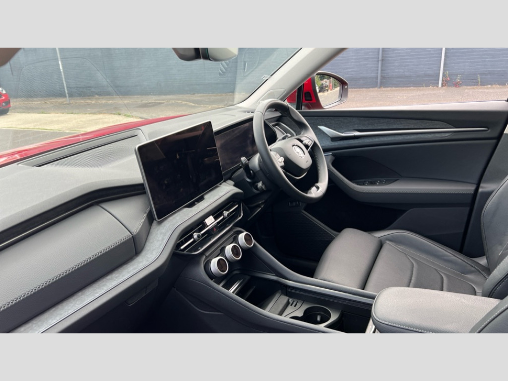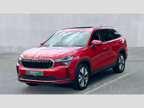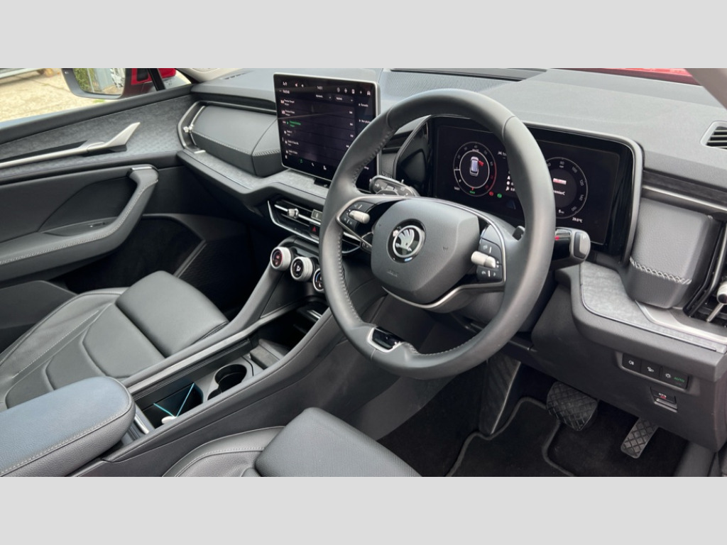 Skoda Kodiaq 1.5 TSI e-TEC SE L 5dr DSG [7 Seat] 13" satellite navigation touchscreen display, Blind spot detection with door exit warning, Bluetooth system, ChatGPT functionality, Drive mode selector, Driver alert with fatigue sensor, Driver drowsiness alert system, Dry display cleaner, e call+, Front cross traffic assist, Lane assist, PAS, Rear traffic assist, Tailgate unlocking from outside, Traffic sign recognition, USB C Port x 2 in front centre console, Virtual Cockpit - 10.25" digital display, Voice control system, Wireless charging for two smartphones (15W) with cooling function, Wireless SmartLink for Apple CarPlay and Android Auto, Stop/start function, 2x USB-C in the rear, DAB Digital radio, Aero front windscreen wipers with intermittent function, Auto dimming rear view mirror, AWL (all weather lighting) and all weather light with cornering function, Black wheel arch surrounds, Body colour bumpers, Body colour door mirrors and handles, Cornering light and poor weather light, Electric folding /adjustable/separted heated/folding door mirrors, auto dimming with boarding sports and memory function, Electric front and rear windows, Exterior black decorative trims, Heat insulating glass in windshield, Heated rear window, Ice scraper in fuel tank cap, Invisible tailpipe, LED daytime running lights, LED third brake light in rear spoiler, Light assistant with automatic headlight control and coming home feature, Logo projection in door mirrors, Privacy glass, Rear side wing doors, Rear spoiler, Rear window wiper, Red decorative strip between rear LED lights, Safety reflectors on front and rear doors, Unique dark chrome design logo on alloy wheels, Window control switches with black trim, Windscreen wipers with rain sensor, Without engine designation, 1.5l bottle holder points in all door, 12V socket in boot, 1x centre rear reading light, 2 seat bench in 3rd row, 3 configurable smart dials with 32mm coloured display, 3 seat bench in 2nd row, 4 foldable roof handles with rear coat hooks, Ambient interior lighting - Dashboard, front-door stowage compartments, front and rear door panels and footwell lighting, Automatic gear selector on steering wheel, Chrome interior door handles, Driver/front passenger reading lights, Fabric headlining, Fixed bench 40:60:40 split folding backrests, Front and rear floor mats, Front centre armrest with jumbo box storage compartment, cup holder and 12V socket, Front courtesy lights, Height adjustable front headrests, Isofix child seat fittings in outer middle row rear seats and front passenger with top tether, Manually adjustable steering column, Pollen filter, Rear centre armrest with cupholders, Rear seat boot backrest release, Retractable luggage compartment cover, Single front passenger seat, Skoda lettering on steering wheel, Sliding trunk cover, Small Bags on the inner sides of the front backrests, Storage pocket including mobile phone pockets on the backs of the front seats, Sunvisors with illuminated vanity mirrors, Three rear height adjustable headrests, Ticket holder on A Pillar, Tri zone climate control, Umbrella in door panel x1 made from sustainable materials, Upper and lower glovebox with card holder and coin compartment, USB C port by rear view mirror for charging only (15W), Exterior styling pack - Kodiaq, Auto door release and activation of warning lights in the event of an accident, Driver and front passenger airbag with knee airbag and front passenger airbag deactivation, Electric child locks, Electronic parking brake, ESC (incl. ABS+EMD+MSR+ASR+EDL+HBA+DSR+RBS+ESBS+MCB+TSA+XDS), Front assist with braking reaction to vehicles, pedestrians and cyclists, Front disc brakes, Fuel cut off safety device, Height adjustable front 3 point seatbelts + pretensioners, Hill hold control, Junction assist with automatic emergency braking, Rear disc brakes, Safety vest holder in door, Seat belt reminder for all seats, Three point rear seat belts, Two tone horn, Tyre pressure monitor, Anti-theft wheel bolts, Immobiliser, Remote central locking with 2 keys, Breakdown kit