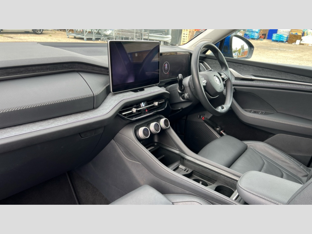 Skoda Kodiaq 1.5 TSI e-TEC SE L 5dr DSG [7 Seat] 13" satellite navigation touchscreen display, Blind spot detection with door exit warning, Bluetooth system, ChatGPT functionality, Drive mode selector, Driver alert with fatigue sensor, Driver drowsiness alert system, Dry display cleaner, e call+, Front cross traffic assist, Lane assist, PAS, Rear traffic assist, Tailgate unlocking from outside, Traffic sign recognition, USB C Port x 2 in front centre console, Virtual Cockpit - 10.25" digital display, Voice control system, Wireless charging for two smartphones (15W) with cooling function, Wireless SmartLink for Apple CarPlay and Android Auto, Stop/start function, 2x USB-C in the rear, DAB Digital radio, Aero front windscreen wipers with intermittent function, Auto dimming rear view mirror, AWL (all weather lighting) and all weather light with cornering function, Black wheel arch surrounds, Body colour bumpers, Body colour door mirrors and handles, Cornering light and poor weather light, Electric folding /adjustable/separted heated/folding door mirrors, auto dimming with boarding sports and memory function, Electric front and rear windows, Exterior black decorative trims, Heat insulating glass in windshield, Heated rear window, Ice scraper in fuel tank cap, Invisible tailpipe, LED daytime running lights, LED rear fog light, LED third brake light in rear spoiler, Light assistant with automatic headlight control and coming home feature, Logo projection in door mirrors, Privacy glass, Rear side wing doors, Rear spoiler, Rear window wiper, Red decorative strip between rear LED lights, Safety reflectors on front and rear doors, Window control switches with black trim, Windscreen wipers with rain sensor, Without engine designation, 1.5l bottle holder points in all door, 12V socket in boot, 1x centre rear reading light, 2 seat bench in 3rd row, 3 configurable smart dials with 32mm coloured display, 3 seat bench in 2nd row, 4 foldable roof handles with rear coat hooks, Ambient interior lighting - Dashboard, front-door stowage compartments, front and rear door panels and footwell lighting, Automatic gear selector on steering wheel, Chrome interior door handles, Driver/front passenger reading lights, Fabric headlining, Fixed bench 40:60:40 split folding backrests, Front and rear floor mats, Front centre armrest with jumbo box storage compartment, cup holder and 12V socket, Front courtesy lights, Height adjustable front headrests, Isofix child seat fittings in outer middle row rear seats and front passenger with top tether, Manually adjustable steering column, Pollen filter, Rear centre armrest with cupholders, Rear seat boot backrest release, Retractable luggage compartment cover, Single front passenger seat, Sliding trunk cover, Small Bags on the inner sides of the front backrests, Storage pocket including mobile phone pockets on the backs of the front seats, Sunvisors with illuminated vanity mirrors, Three rear height adjustable headrests, Ticket holder on A Pillar, Tri zone climate control, Umbrella in door panel x1 made from sustainable materials, Upper and lower glovebox with card holder and coin compartment, USB C port by rear view mirror for charging only (15W), Exterior styling pack - Kodiaq, Auto door release and activation of warning lights in the event of an accident, Driver and front passenger airbag with knee airbag and front passenger airbag deactivation, Electric child locks, Electronic parking brake, ESC (incl. ABS+EMD+MSR+ASR+EDL+HBA+DSR+RBS+ESBS+MCB+TSA+XDS), Front assist with braking reaction to vehicles, pedestrians and cyclists, Front disc brakes, Fuel cut off safety device, Height adjustable front 3 point seatbelts + pretensioners, Hill hold control, Junction assist with automatic emergency braking, Rear disc brakes, Safety vest holder in door, Seat belt reminder for all seats, Three point rear seat belts, Two tone horn, Tyre pressure monitor, Anti-theft wheel bolts, Immobiliser, Remote central locking with 2 keys, Breakdown kit