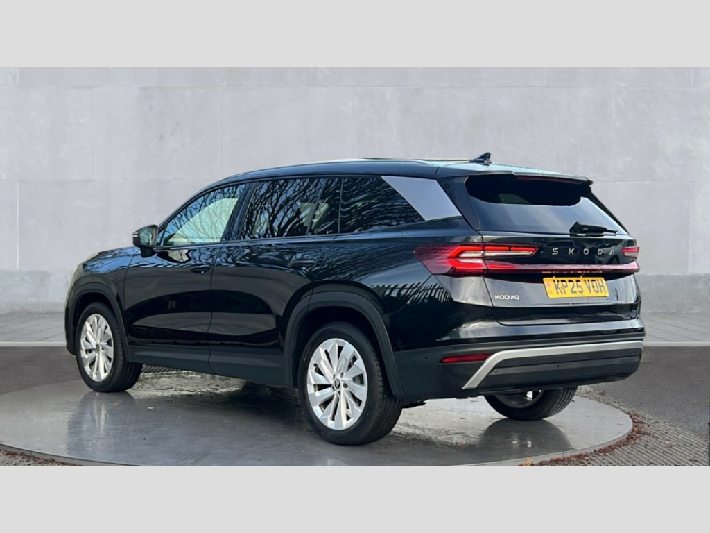Skoda Kodiaq 1.5 TSI e-TEC SE L 5dr DSG [7 Seat] 13" satellite navigation touchscreen display, Blind spot detection with door exit warning, Bluetooth system, ChatGPT functionality, Driver alert - Fatigue and drowsiness monitor, Dry display cleaner, Emergency call, Front and rear parking sensors, Front cross traffic assist, Lane assist, PAS, Rear traffic assist, Tailgate unlocking from outside, Traffic sign recognition, USB C Port x 2 in front centre console, Virtual Cockpit - 10.25" digital display, Voice control system, Wireless charging for two smartphones (15W) with cooling function, Wireless SmartLink for Apple CarPlay and Android Auto, Stop/start function, 2x USB-C in the rear, DAB Digital radio, Aero front windscreen wipers with intermittent function, Auto dimming rear view mirror, AWL (all weather lighting) and all weather light with cornering function, Black wheel arch surrounds, Body colour bumpers, Body colour door mirrors and handles, Cornering light and poor weather light, Electric folding /adjustable/separted heated/folding door mirrors, auto dimming with boarding sports and memory function, Electric front and rear windows, Exterior black decorative trims, Heat insulating glass in windshield, Heated rear window, Ice scraper in fuel tank cap, Invisible tailpipe, LED daytime running lights, LED third brake light in rear spoiler, Light assistant with automatic headlight control and coming home feature, Logo projection in door mirrors, Privacy glass, Rear roof spoiler, Rear side wing doors, Rear window wiper, Red decorative strip between rear LED lights, Safety reflectors on front and rear doors, Unique dark chrome design logo on alloy wheels, Window control switches with black trim, Windscreen wipers with rain sensor, Without engine designation, 1.5l bottle holder points in all door, 1x centre rear reading light, 2 seat bench in 3rd row, 3 configurable smart dials with 32mm coloured display, 3 seat bench in 2nd row, 4 foldable roof handles with rear coat hooks, Ambient interior lighting - Dashboard, front-door stowage compartments, front and rear door panels and footwell lighting, Automatic gear selector on steering column, Chrome interior door handles, Driver/front passenger reading lights, Fabric headlining, Fixed bench 40:60:40 split folding backrests, Front and rear floor mats, Front centre armrest with jumbo box storage compartment, cup holder and 12V socket, Height adjustable front headrests, Isofix child seat fittings in outer middle row rear seats and front passenger with top tether, Manually adjustable steering column, Pollen filter, Rear centre armrest with cupholders, Rear seat boot backrest release, Single front passenger seat, Skoda lettering on steering wheel, Storage pocket including mobile phone pockets on the backs of the front seats, Sunvisors with illuminated vanity mirrors, Three rear height adjustable headrests, Ticket holder on A Pillar, Tri zone climate control, Umbrella in door panel x1 made from sustainable materials, Upper and lower glovebox with card holder and coin compartment, USB C port by rear view mirror for charging only (15W), Exterior styling pack - Kodiaq, Auto door release and activation of warning lights in the event of an accident, Driver and front passenger airbag with knee airbag and front passenger airbag deactivation, Electric child locks, Electronic parking brake, ESC (incl. ABS+EMD+MSR+ASR+EDL+HBA+DSR+RBS+ESBS+MCB+TSA+XDS), Front assist with braking reaction to vehicles, pedestrians and cyclists, Front disc brakes, Fuel cut off safety device, Height adjustable front 3 point seatbelts + pretensioners, Hill hold assist, Junction assist with automatic emergency braking, Rear disc brakes, Safety vest holder in door, Seat belt reminder for all seats, Three point rear seat belts, Two tone horn, Tyre pressure monitor, Anti-theft wheel bolts, Immobiliser, Remote central locking with 2 keys