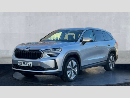 Skoda Kodiaq 1.5 TSI e-TEC SE L 5dr DSG [7 Seat] 13" satellite navigation touchscreen display, Blind spot detection with door exit warning, Bluetooth system, ChatGPT functionality, Driver alert - Fatigue and drowsiness monitor, Dry display cleaner, Emergency call, Front and rear parking sensors, Front cross traffic assist, Lane assist, PAS, Rear traffic assist, Tailgate unlocking from outside, Traffic sign recognition, USB C Port x 2 in front centre console, Virtual Cockpit - 10.25" digital display, Voice control system, Wireless charging for two smartphones (15W) with cooling function, Wireless SmartLink for Apple CarPlay and Android Auto, Stop/start function, 2x USB-C in the rear, DAB Digital radio, Aero front windscreen wipers with intermittent function, Auto dimming rear view mirror, AWL (all weather lighting) and all weather light with cornering function, Black wheel arch surrounds, Body colour bumpers, Body colour door mirrors and handles, Cornering light and poor weather light, Electric folding /adjustable/separted heated/folding door mirrors, auto dimming with boarding sports and memory function, Electric front and rear windows, Exterior black decorative trims, Heat insulating glass in windshield, Heated rear window, Ice scraper in fuel tank cap, Invisible tailpipe, LED daytime running lights, LED third brake light in rear spoiler, Light assistant with automatic headlight control and coming home feature, Logo projection in door mirrors, Privacy glass, Rear roof spoiler, Rear side wing doors, Rear window wiper, Red decorative strip between rear LED lights, Safety reflectors on front and rear doors, Unique dark chrome design logo on alloy wheels, Window control switches with black trim, Windscreen wipers with rain sensor, Without engine designation, 1.5l bottle holder points in all door, 1x centre rear reading light, 2 seat bench in 3rd row, 3 configurable smart dials with 32mm coloured display, 3 seat bench in 2nd row, 4 foldable roof handles with rear coat hooks, Ambient interior lighting - Dashboard, front-door stowage compartments, front and rear door panels and footwell lighting, Automatic gear selector on steering column, Chrome interior door handles, Driver/front passenger reading lights, Fabric headlining, Fixed bench 40:60:40 split folding backrests, Front and rear floor mats, Front centre armrest with jumbo box storage compartment, cup holder and 12V socket, Height adjustable front headrests, Isofix child seat fittings in outer middle row rear seats and front passenger with top tether, Manually adjustable steering column, Pollen filter, Rear centre armrest with cupholders, Rear seat boot backrest release, Single front passenger seat, Skoda lettering on steering wheel, Storage pocket including mobile phone pockets on the backs of the front seats, Sunvisors with illuminated vanity mirrors, Three rear height adjustable headrests, Ticket holder on A Pillar, Tri zone climate control, Umbrella in door panel x1 made from sustainable materials, Upper and lower glovebox with card holder and coin compartment, USB C port by rear view mirror for charging only (15W), Exterior styling pack - Kodiaq, Auto door release and activation of warning lights in the event of an accident, Driver and front passenger airbag with knee airbag and front passenger airbag deactivation, Electric child locks, Electronic parking brake, ESC (incl. ABS+EMD+MSR+ASR+EDL+HBA+DSR+RBS+ESBS+MCB+TSA+XDS), Front assist with braking reaction to vehicles, pedestrians and cyclists, Front disc brakes, Fuel cut off safety device, Height adjustable front 3 point seatbelts + pretensioners, Hill hold assist, Junction assist with automatic emergency braking, Rear disc brakes, Safety vest holder in door, Seat belt reminder for all seats, Three point rear seat belts, Two tone horn, Tyre pressure monitor, Anti-theft wheel bolts, Immobiliser, Remote central locking with 2 keys