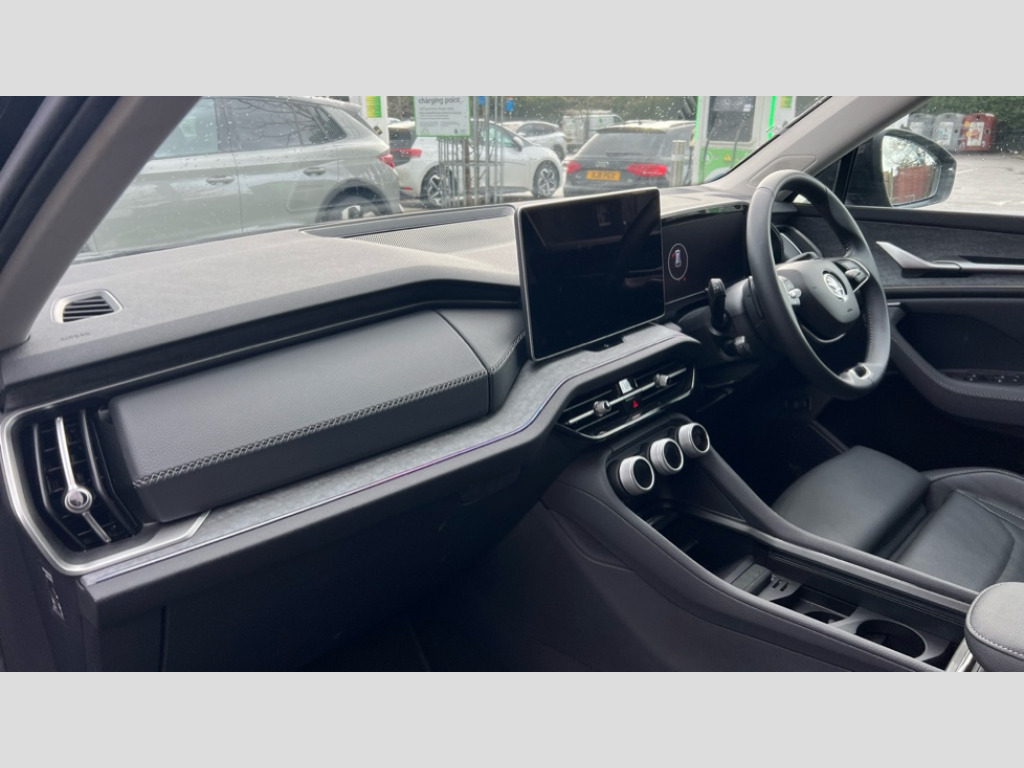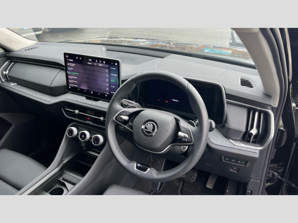 Skoda Kodiaq 1.5 TSI e-TEC SE L 5dr DSG [7 Seat] 13" satellite navigation touchscreen display, Blind spot detection with door exit warning, Bluetooth system, ChatGPT functionality, Drive mode selector, Driver alert with fatigue sensor, Driver drowsiness alert system, Dry display cleaner, e call+, Front cross traffic assist, Lane assist, PAS, Rear traffic assist, Tailgate unlocking from outside, Traffic sign recognition, USB C Port x 2 in front centre console, Virtual Cockpit - 10.25" digital display, Voice control system, Wireless charging for two smartphones (15W) with cooling function, Wireless SmartLink for Apple CarPlay and Android Auto, Stop/start function, 2x USB-C in the rear, DAB Digital radio, Aero front windscreen wipers with intermittent function, Auto dimming rear view mirror, AWL (all weather lighting) and all weather light with cornering function, Black wheel arch surrounds, Body colour bumpers, Body colour door mirrors and handles, Cornering light and poor weather light, Electric folding /adjustable/separted heated/folding door mirrors, auto dimming with boarding sports and memory function, Electric front and rear windows, Exterior black decorative trims, Heat insulating glass in windshield, Heated rear window, Ice scraper in fuel tank cap, Invisible tailpipe, LED daytime running lights, LED third brake light in rear spoiler, Light assistant with automatic headlight control and coming home feature, Logo projection in door mirrors, Privacy glass, Rear side wing doors, Rear spoiler, Rear window wiper, Red decorative strip between rear LED lights, Safety reflectors on front and rear doors, Unique dark chrome design logo on alloy wheels, Window control switches with black trim, Windscreen wipers with rain sensor, Without engine designation, 1.5l bottle holder points in all door, 12V socket in boot, 1x centre rear reading light, 2 seat bench in 3rd row, 3 configurable smart dials with 32mm coloured display, 3 seat bench in 2nd row, 4 foldable roof handles with rear coat hooks, Ambient interior lighting - Dashboard, front-door stowage compartments, front and rear door panels and footwell lighting, Automatic gear selector on steering wheel, Chrome interior door handles, Driver/front passenger reading lights, Fabric headlining, Fixed bench 40:60:40 split folding backrests, Front and rear floor mats, Front centre armrest with jumbo box storage compartment, cup holder and 12V socket, Front courtesy lights, Height adjustable front headrests, Isofix child seat fittings in outer middle row rear seats and front passenger with top tether, Manually adjustable steering column, Pollen filter, Rear centre armrest with cupholders, Rear seat boot backrest release, Retractable luggage compartment cover, Single front passenger seat, Skoda lettering on steering wheel, Sliding trunk cover, Small Bags on the inner sides of the front backrests, Storage pocket including mobile phone pockets on the backs of the front seats, Sunvisors with illuminated vanity mirrors, Three rear height adjustable headrests, Ticket holder on A Pillar, Tri zone climate control, Umbrella in door panel x1 made from sustainable materials, Upper and lower glovebox with card holder and coin compartment, USB C port by rear view mirror for charging only (15W), Exterior styling pack - Kodiaq, Auto door release and activation of warning lights in the event of an accident, Driver and front passenger airbag with knee airbag and front passenger airbag deactivation, Electric child locks, Electronic parking brake, ESC (incl. ABS+EMD+MSR+ASR+EDL+HBA+DSR+RBS+ESBS+MCB+TSA+XDS), Front assist with braking reaction to vehicles, pedestrians and cyclists, Front disc brakes, Fuel cut off safety device, Height adjustable front 3 point seatbelts + pretensioners, Hill hold control, Junction assist with automatic emergency braking, Rear disc brakes, Safety vest holder in door, Seat belt reminder for all seats, Three point rear seat belts, Two tone horn, Tyre pressure monitor, Anti-theft wheel bolts, Immobiliser, Remote central locking with 2 keys, Breakdown kit