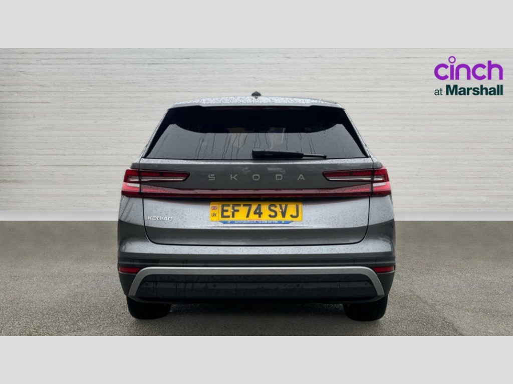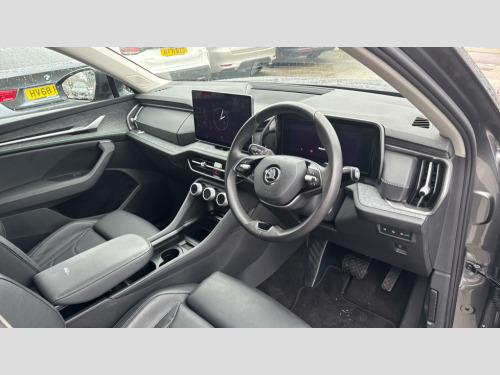 Keyless entry and start/stop 13" satellite navigation touchscreen display, Blind spot detection with door exit warning, Bluetooth system, ChatGPT functionality, Drive mode selector, Driver alert with fatigue sensor, Driver drowsiness alert system, Dry display cleaner, e call+, Front cross traffic assist, Lane assist, PAS, Rear traffic assist, Tailgate unlocking from outside, Traffic sign recognition, USB C Port x 2 in front centre console, Virtual Cockpit - 10.25" digital display, Voice control system, Wireless charging for two smartphones (15W) with cooling function, Wireless SmartLink for Apple CarPlay and Android Auto, Stop/start function, 2x USB-C in the rear, DAB Digital radio, Aero front windscreen wipers with intermittent function, Auto dimming rear view mirror, AWL (all weather lighting) and all weather light with cornering function, Black wheel arch surrounds, Body colour bumpers, Body colour door mirrors and handles, Cornering light and poor weather light, Electric folding /adjustable/separted heated/folding door mirrors, auto dimming with boarding sports and memory function, Electric front and rear windows, Exterior black decorative trims, Heat insulating glass in windshield, Heated rear window, Ice scraper in fuel tank cap, Invisible tailpipe, LED daytime running lights, LED third brake light in rear spoiler, Light assistant with automatic headlight control and coming home feature, Logo projection in door mirrors, Privacy glass, Rear side wing doors, Rear spoiler, Rear window wiper, Red decorative strip between rear LED lights, Safety reflectors on front and rear doors, Unique dark chrome design logo on alloy wheels, Window control switches with black trim, Windscreen wipers with rain sensor, Without engine designation, 1.5l bottle holder points in all door, 12V socket in boot, 1x centre rear reading light, 2 seat bench in 3rd row, 3 configurable smart dials with 32mm coloured display, 3 seat bench in 2nd row, 4 foldable roof handles with rear coat hooks, Ambient interior lighting - Dashboard, front-door stowage compartments, front and rear door panels and footwell lighting, Automatic gear selector on steering wheel, Chrome interior door handles, Driver/front passenger reading lights, Fabric headlining, Fixed bench 40:60:40 split folding backrests, Front and rear floor mats, Front centre armrest with jumbo box storage compartment, cup holder and 12V socket, Front courtesy lights, Height adjustable front headrests, Isofix child seat fittings in outer middle row rear seats and front passenger with top tether, Manually adjustable steering column, Pollen filter, Rear centre armrest with cupholders, Rear seat boot backrest release, Retractable luggage compartment cover, Single front passenger seat, Skoda lettering on steering wheel, Sliding trunk cover, Small Bags on the inner sides of the front backrests, Storage pocket including mobile phone pockets on the backs of the front seats, Sunvisors with illuminated vanity mirrors, Three rear height adjustable headrests, Ticket holder on A Pillar, Tri zone climate control, Umbrella in door panel x1 made from sustainable materials, Upper and lower glovebox with card holder and coin compartment, USB C port by rear view mirror for charging only (15W), Exterior styling pack - Kodiaq, Auto door release and activation of warning lights in the event of an accident, Driver and front passenger airbag with knee airbag and front passenger airbag deactivation, Electric child locks, Electronic parking brake, ESC (incl. ABS+EMD+MSR+ASR+EDL+HBA+DSR+RBS+ESBS+MCB+TSA+XDS), Front assist with braking reaction to vehicles, pedestrians and cyclists, Front disc brakes, Fuel cut off safety device, Height adjustable front 3 point seatbelts + pretensioners, Hill hold control, Junction assist with automatic emergency braking, Rear disc brakes, Safety vest holder in door, Seat belt reminder for all seats, Three point rear seat belts, Two tone horn, Tyre pressure monitor, Anti-theft wheel bolts, Immobiliser, Remote central locking with 2 keys, Breakdown kit