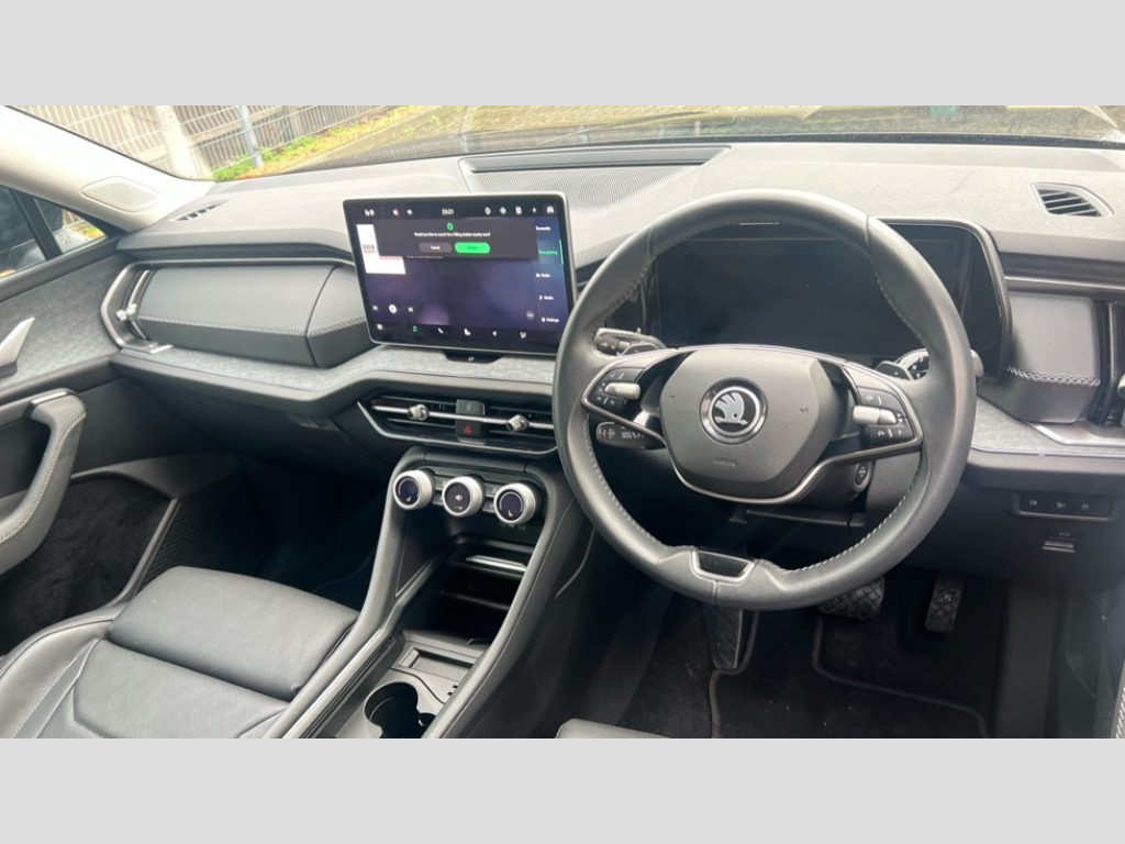 Skoda Kodiaq 1.5 TSI e-TEC SE L 5dr DSG [7 Seat] 13" satellite navigation touchscreen display, Blind spot detection with door exit warning, Bluetooth system, ChatGPT functionality, Drive mode selector, Driver alert with fatigue sensor, Driver drowsiness alert system, Dry display cleaner, e call+, Front cross traffic assist, Lane assist, PAS, Rear traffic assist, Tailgate unlocking from outside, Traffic sign recognition, USB C Port x 2 in front centre console, Virtual Cockpit - 10.25" digital display, Voice control system, Wireless charging for two smartphones (15W) with cooling function, Wireless SmartLink for Apple CarPlay and Android Auto, Stop/start function, 2x USB-C in the rear, DAB Digital radio, Aero front windscreen wipers with intermittent function, Auto dimming rear view mirror, AWL (all weather lighting) and all weather light with cornering function, Black wheel arch surrounds, Body colour bumpers, Body colour door mirrors and handles, Cornering light and poor weather light, Electric folding /adjustable/separted heated/folding door mirrors, auto dimming with boarding sports and memory function, Electric front and rear windows, Exterior black decorative trims, Heat insulating glass in windshield, Heated rear window, Ice scraper in fuel tank cap, Invisible tailpipe, LED daytime running lights, LED rear fog light, LED third brake light in rear spoiler, Light assistant with automatic headlight control and coming home feature, Logo projection in door mirrors, Privacy glass, Rear side wing doors, Rear spoiler, Rear window wiper, Red decorative strip between rear LED lights, Safety reflectors on front and rear doors, Window control switches with black trim, Windscreen wipers with rain sensor, Without engine designation, 1.5l bottle holder points in all door, 12V socket in boot, 1x centre rear reading light, 2 seat bench in 3rd row, 3 configurable smart dials with 32mm coloured display, 3 seat bench in 2nd row, 4 foldable roof handles with rear coat hooks, Ambient interior lighting - Dashboard, front-door stowage compartments, front and rear door panels and footwell lighting, Automatic gear selector on steering wheel, Chrome interior door handles, Driver/front passenger reading lights, Fabric headlining, Fixed bench 40:60:40 split folding backrests, Front and rear floor mats, Front centre armrest with jumbo box storage compartment, cup holder and 12V socket, Front courtesy lights, Height adjustable front headrests, Isofix child seat fittings in outer middle row rear seats and front passenger with top tether, Manually adjustable steering column, Pollen filter, Rear centre armrest with cupholders, Rear seat boot backrest release, Retractable luggage compartment cover, Single front passenger seat, Sliding trunk cover, Small Bags on the inner sides of the front backrests, Storage pocket including mobile phone pockets on the backs of the front seats, Sunvisors with illuminated vanity mirrors, Three rear height adjustable headrests, Ticket holder on A Pillar, Tri zone climate control, Umbrella in door panel x1 made from sustainable materials, Upper and lower glovebox with card holder and coin compartment, USB C port by rear view mirror for charging only (15W), Exterior styling pack - Kodiaq, Auto door release and activation of warning lights in the event of an accident, Driver and front passenger airbag with knee airbag and front passenger airbag deactivation, Electric child locks, Electronic parking brake, ESC (incl. ABS+EMD+MSR+ASR+EDL+HBA+DSR+RBS+ESBS+MCB+TSA+XDS), Front assist with braking reaction to vehicles, pedestrians and cyclists, Front disc brakes, Fuel cut off safety device, Height adjustable front 3 point seatbelts + pretensioners, Hill hold control, Junction assist with automatic emergency braking, Rear disc brakes, Safety vest holder in door, Seat belt reminder for all seats, Three point rear seat belts, Two tone horn, Tyre pressure monitor, Anti-theft wheel bolts, Immobiliser, Remote central locking with 2 keys, Breakdown kit