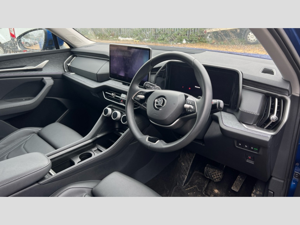 Skoda Kodiaq 1.5 TSI e-TEC SE L 5dr DSG [7 Seat] 13" satellite navigation touchscreen display, Blind spot detection with door exit warning, Bluetooth system, ChatGPT functionality, Drive mode selector, Driver alert with fatigue sensor, Driver drowsiness alert system, Dry display cleaner, e call+, Front cross traffic assist, Lane assist, PAS, Rear traffic assist, Tailgate unlocking from outside, Traffic sign recognition, USB C Port x 2 in front centre console, Virtual Cockpit - 10.25" digital display, Voice control system, Wireless charging for two smartphones (15W) with cooling function, Wireless SmartLink for Apple CarPlay and Android Auto, Stop/start function, 2x USB-C in the rear, DAB Digital radio, Aero front windscreen wipers with intermittent function, Auto dimming rear view mirror, AWL (all weather lighting) and all weather light with cornering function, Black wheel arch surrounds, Body colour bumpers, Body colour door mirrors and handles, Cornering light and poor weather light, Electric folding /adjustable/separted heated/folding door mirrors, auto dimming with boarding sports and memory function, Electric front and rear windows, Exterior black decorative trims, Heat insulating glass in windshield, Heated rear window, Ice scraper in fuel tank cap, Invisible tailpipe, LED daytime running lights, LED third brake light in rear spoiler, Light assistant with automatic headlight control and coming home feature, Logo projection in door mirrors, Privacy glass, Rear side wing doors, Rear spoiler, Rear window wiper, Red decorative strip between rear LED lights, Safety reflectors on front and rear doors, Unique dark chrome design logo on alloy wheels, Window control switches with black trim, Windscreen wipers with rain sensor, Without engine designation, 1.5l bottle holder points in all door, 12V socket in boot, 1x centre rear reading light, 2 seat bench in 3rd row, 3 configurable smart dials with 32mm coloured display, 3 seat bench in 2nd row, 4 foldable roof handles with rear coat hooks, Ambient interior lighting - Dashboard, front-door stowage compartments, front and rear door panels and footwell lighting, Automatic gear selector on steering wheel, Chrome interior door handles, Driver/front passenger reading lights, Fabric headlining, Fixed bench 40:60:40 split folding backrests, Front and rear floor mats, Front centre armrest with jumbo box storage compartment, cup holder and 12V socket, Front courtesy lights, Height adjustable front headrests, Isofix child seat fittings in outer middle row rear seats and front passenger with top tether, Manually adjustable steering column, Pollen filter, Rear centre armrest with cupholders, Rear seat boot backrest release, Retractable luggage compartment cover, Single front passenger seat, Skoda lettering on steering wheel, Sliding trunk cover, Small Bags on the inner sides of the front backrests, Storage pocket including mobile phone pockets on the backs of the front seats, Sunvisors with illuminated vanity mirrors, Three rear height adjustable headrests, Ticket holder on A Pillar, Tri zone climate control, Umbrella in door panel x1 made from sustainable materials, Upper and lower glovebox with card holder and coin compartment, USB C port by rear view mirror for charging only (15W), Exterior styling pack - Kodiaq, Auto door release and activation of warning lights in the event of an accident, Driver and front passenger airbag with knee airbag and front passenger airbag deactivation, Electric child locks, Electronic parking brake, ESC (incl. ABS+EMD+MSR+ASR+EDL+HBA+DSR+RBS+ESBS+MCB+TSA+XDS), Front assist with braking reaction to vehicles, pedestrians and cyclists, Front disc brakes, Fuel cut off safety device, Height adjustable front 3 point seatbelts + pretensioners, Hill hold control, Junction assist with automatic emergency braking, Rear disc brakes, Safety vest holder in door, Seat belt reminder for all seats, Three point rear seat belts, Two tone horn, Tyre pressure monitor, Anti-theft wheel bolts, Immobiliser, Remote central locking with 2 keys, Breakdown kit