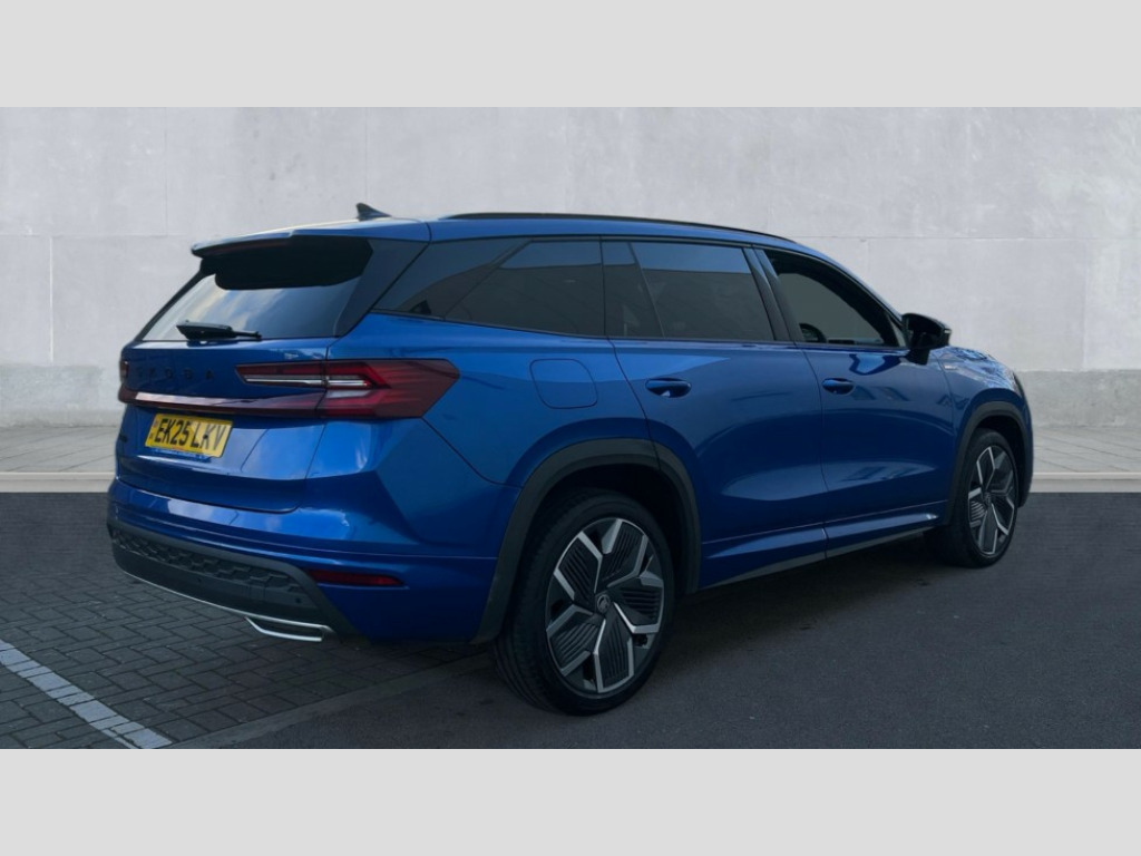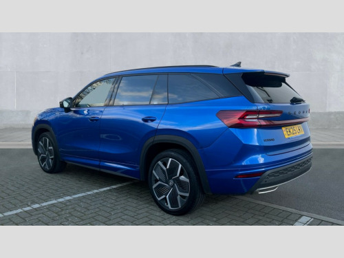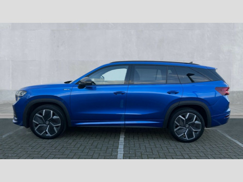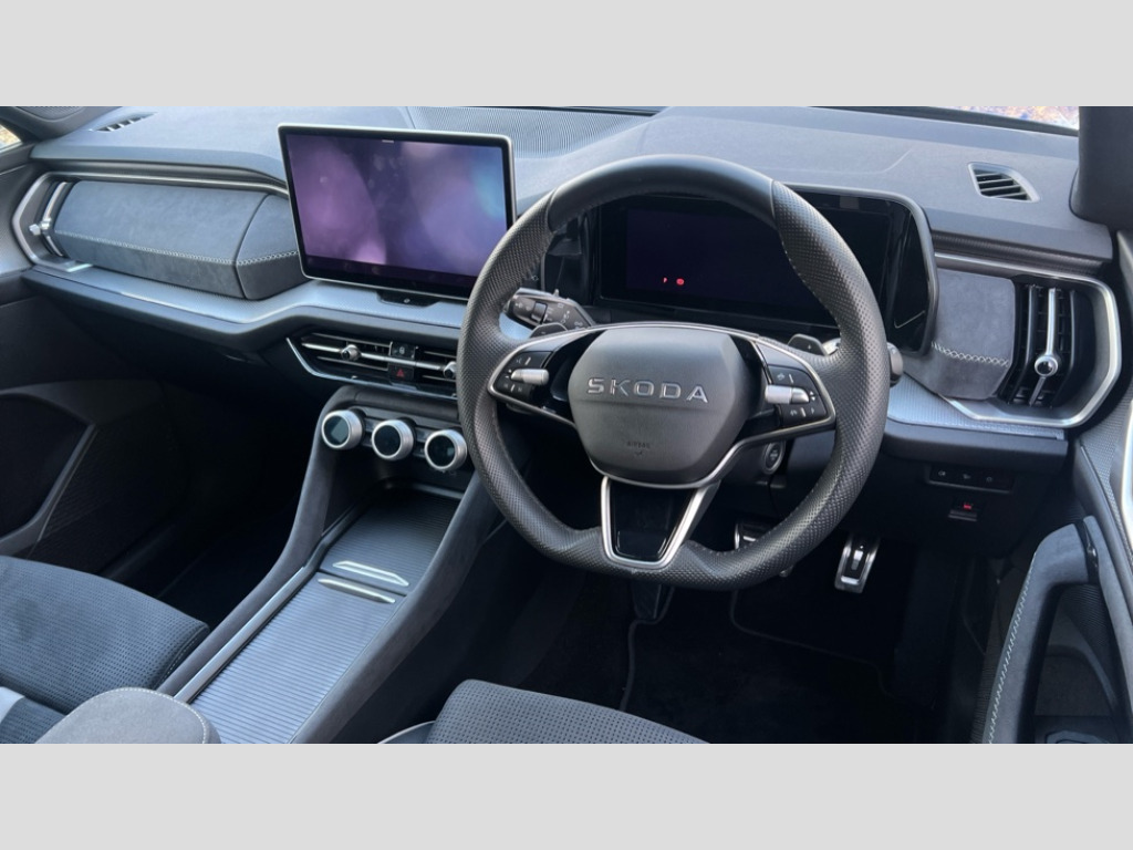 Skoda Kodiaq 1.5 TSI e-TEC SportLine 5dr DSG [7 Seat] 13" satellite navigation touchscreen display, Blind spot detection with door exit warning, Bluetooth system, ChatGPT functionality, Driver alert - Fatigue and drowsiness monitor, Dry display cleaner, Emergency call, Front and rear parking sensors, Front cross traffic assist, Lane assist, PAS, Rear traffic assist, Tailgate unlocking from outside, Traffic sign recognition, USB C Port x 2 in front centre console, Virtual Cockpit - 10.25" digital display, Voice control system, Wireless charging for two smartphones (15W) with cooling function, Wireless SmartLink for Apple CarPlay and Android Auto, Stop/start function, 2x USB-C in the rear, DAB Digital radio, Aero front windscreen wipers with intermittent function, Auto dimming rear view mirror, AWL (all weather lighting) and all weather light with cornering function, Black diffuser and decorative tailpipe with a unique dark chrome finish, Black roof rails, Black sports styling including front grille and window surrounds, Black wheel arch surrounds, Body colour door handles, Cornering light and poor weather light, Electric folding /adjustable/separted heated/folding door mirrors, auto dimming with boarding sports and memory function, Electric front and rear windows, Exterior black decorative trims, Front and rear sports bumpers including lower rear chrome strip, Gloss black door mirrors, Gloss black window frame and D pillar, Heat insulating glass in windshield, Heated rear window, Ice scraper in fuel tank cap, LED daytime running lights, LED third brake light in rear spoiler, Light assistant with automatic headlight control and coming home feature, Logo projection in door mirrors, Privacy glass, Rear roof spoiler, Rear side wing doors, Rear window wiper, Red decorative strip between rear LED lights, Safety reflectors on front and rear doors, Sportline badge on front fenders, Tailgate lettering in Black, Unique dark chrome design logo on alloy wheels, Window control switches with black trim, Windscreen wipers with rain sensor, Without engine designation, 1.5l bottle holder points in all door, 1x centre rear reading light, 2 seat bench in 3rd row, 3 configurable smart dials with 32mm coloured display, 3 seat bench in 2nd row, 4 foldable roof handles with rear coat hooks, Aluminium pedals, Ambient interior lighting - Dashboard, front-door stowage compartments, front and rear door panels and footwell lighting, Automatic gear selector on steering column, Chrome interior door handles, Driver/front passenger reading lights, Fabric headlining, Fixed bench 40:60:40 split folding backrests, Front and rear floor mats, Front centre armrest with jumbo box storage compartment, cup holder and 12V socket, Front sport seats, Height adjustable front headrests, Interior black decorative trims, Isofix child seat fittings in outer middle row rear seats and front passenger with top tether, Manually adjustable steering column, Pollen filter, Rear centre armrest with cupholders, Rear seat boot backrest release, Single front passenger seat, Skoda lettering on steering wheel, Storage pocket including mobile phone pockets on the backs of the front seats, Sunvisors with illuminated vanity mirrors, Three rear height adjustable headrests, Ticket holder on A Pillar, Tri zone climate control, Umbrella in door panel x1 made from sustainable materials, Upper and lower glovebox with card holder and coin compartment, USB C port by rear view mirror for charging only (15W), Acoustic package - Kodiaq, Performance package - Kodiaq, Sportline design selection pack - Kodiaq, Auto door release and activation of warning lights in the event of an accident, Driver and front passenger airbag with knee airbag and front passenger airbag deactivation, Electric child locks, Electronic parking brake, ESC (incl. ABS+EMD+MSR+ASR+EDL+HBA+DSR+RBS+ESBS+MCB+TSA+XDS), Front assist with braking reaction to vehicles, pedestrians and cyclists, Front disc brakes, Fuel cut off safety device, Height adjustable front 3 point seatbelts + pretensioners, Hill hold assist, Junction assist with automatic emergency braking, Rear disc brakes, Safety vest holder in door, Seat belt reminder for all seats, Three point rear seat belts, Two tone horn, Tyre pressure monitor, Alarm with interior monitoring and tilt sensor with safe function, Anti-theft wheel bolts, Immobiliser, Remote central locking with 2 keys, 20" Rila anthacite polished alloy wheel with black matte aero covers