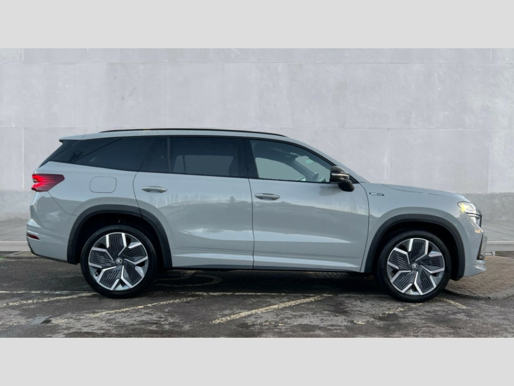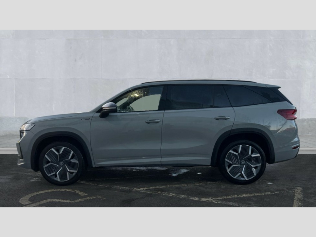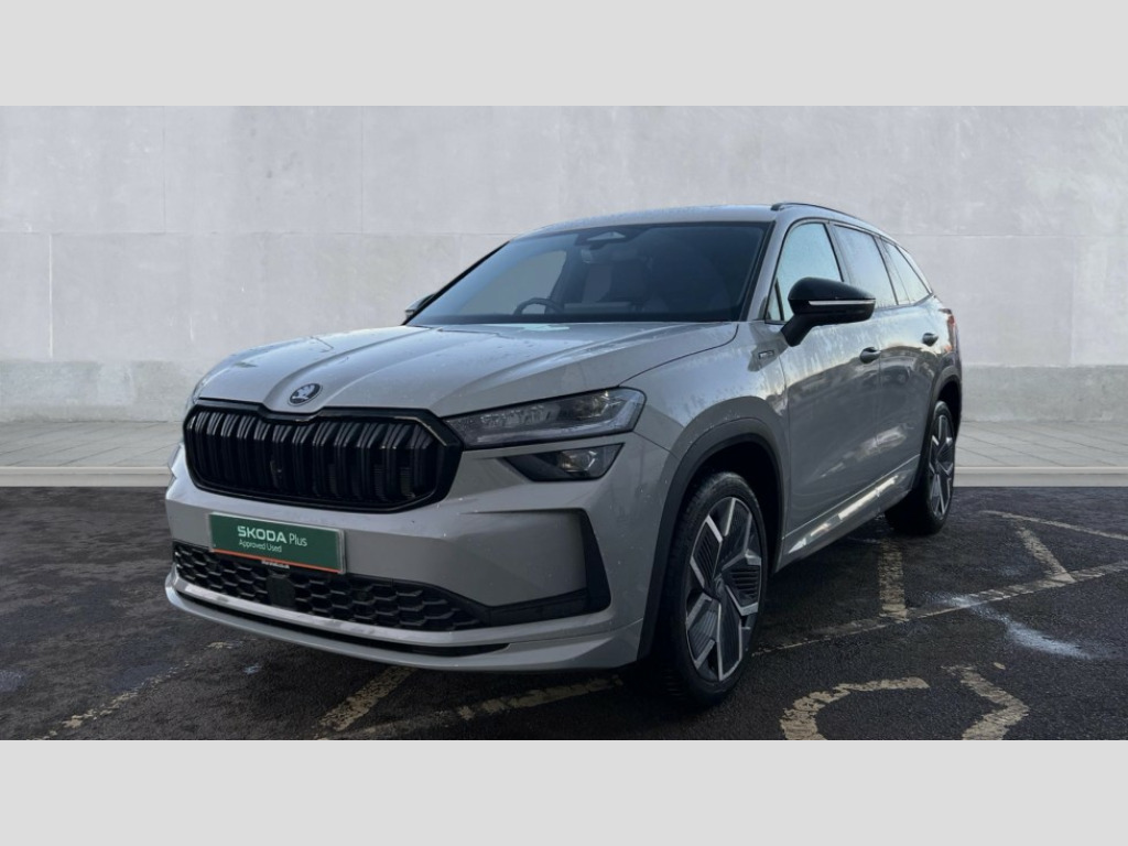 Skoda Kodiaq 1.5 TSI e-TEC SportLine 5dr DSG [7 Seat] 13" satellite navigation touchscreen display, Blind spot detection with door exit warning, Bluetooth system, ChatGPT functionality, Driver alert - Fatigue and drowsiness monitor, Dry display cleaner, Emergency call, Front and rear parking sensors, Front cross traffic assist, Lane assist, PAS, Rear traffic assist, Tailgate unlocking from outside, Traffic sign recognition, USB C Port x 2 in front centre console, Virtual Cockpit - 10.25" digital display, Voice control system, Wireless charging for two smartphones (15W) with cooling function, Wireless SmartLink for Apple CarPlay and Android Auto, Stop/start function, 2x USB-C in the rear, DAB Digital radio, Aero front windscreen wipers with intermittent function, Auto dimming rear view mirror, AWL (all weather lighting) and all weather light with cornering function, Black diffuser and decorative tailpipe with a unique dark chrome finish, Black roof rails, Black sports styling including front grille and window surrounds, Black wheel arch surrounds, Body colour door handles, Cornering light and poor weather light, Electric folding /adjustable/separted heated/folding door mirrors, auto dimming with boarding sports and memory function, Electric front and rear windows, Exterior black decorative trims, Front and rear sports bumpers including lower rear chrome strip, Front grille with horizontal light strip, Gloss black door mirrors, Gloss black window frame and D pillar, Heat insulating glass in windshield, Heated rear window, Ice scraper in fuel tank cap, LED daytime running lights, LED matrix headlights with AFS and LED fog lights, LED rear light with welcome effect and dynamic turn signals, LED third brake light in rear spoiler, Light assistant with automatic headlight control and coming home feature, Logo projection in door mirrors, Multiple matrix beam, Privacy glass, Rear roof spoiler, Rear side wing doors, Rear window wiper, Red decorative strip between rear LED lights, Safety reflectors on front and rear doors, Sportline badge on front fenders, Tailgate lettering in Black, Unique dark chrome design logo on alloy wheels, Window control switches with black trim, Windscreen wipers with rain sensor, Without engine designation, 1.5l bottle holder points in all door, 1x centre rear reading light, 2 seat bench in 3rd row, 3 configurable smart dials with 32mm coloured display, 3 seat bench in 2nd row, 3 spoke multi-function heated leather sports steering wheel with paddle shift, 4 foldable roof handles with rear coat hooks, Aluminium pedals, Ambient interior lighting - Dashboard, front-door stowage compartments, front and rear door panels and footwell lighting, Automatic gear selector on steering column, Chrome interior door handles, Driver/front passenger reading lights, Fabric headlining, Fixed bench 40:60:40 split folding backrests, Front and rear floor mats, Front centre armrest with jumbo box storage compartment, cup holder and 12V socket, Front sport seats, Height adjustable front headrests, Interior black decorative trims, Isofix child seat fittings in outer middle row rear seats and front passenger with top tether, Manually adjustable steering column, Pollen filter, Rear centre armrest with cupholders, Rear seat boot backrest release, Single front passenger seat, Skoda lettering on steering wheel, Storage pocket including mobile phone pockets on the backs of the front seats, Sunvisors with illuminated vanity mirrors, Three rear height adjustable headrests, Ticket holder on A Pillar, Tri zone climate control, Umbrella in door panel x1 made from sustainable materials, Upper and lower glovebox with card holder and coin compartment, USB C port by rear view mirror for charging only (15W), Acoustic package - Kodiaq, Performance package - Kodiaq, Sportline design selection pack - Kodiaq, Auto door release and activation of warning lights in the event of an accident, Driver and front passenger airbag with knee airbag and front passenger airbag deactivation, Electric child locks, Electronic parking brake, ESC (incl. ABS+EMD+MSR+ASR+EDL+HBA+DSR+RBS+ESBS+MCB+TSA+XDS), Front assist with braking reaction to vehicles, pedestrians and cyclists, Front disc brakes, Fuel cut off safety device, Height adjustable front 3 point seatbelts + pretensioners, Hill hold assist, Junction assist with automatic emergency braking, Rear disc brakes, Safety vest holder in door, Seat belt reminder for all seats, Three point rear seat belts, Two tone horn, Tyre pressure monitor, Alarm with interior monitoring and tilt sensor with safe function, Anti-theft wheel bolts, Immobiliser, Remote central locking with 2 keys, 20" Rila anthacite polished alloy wheel with black matte aero covers