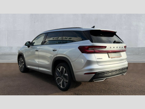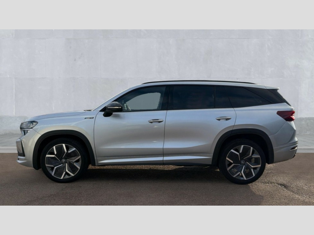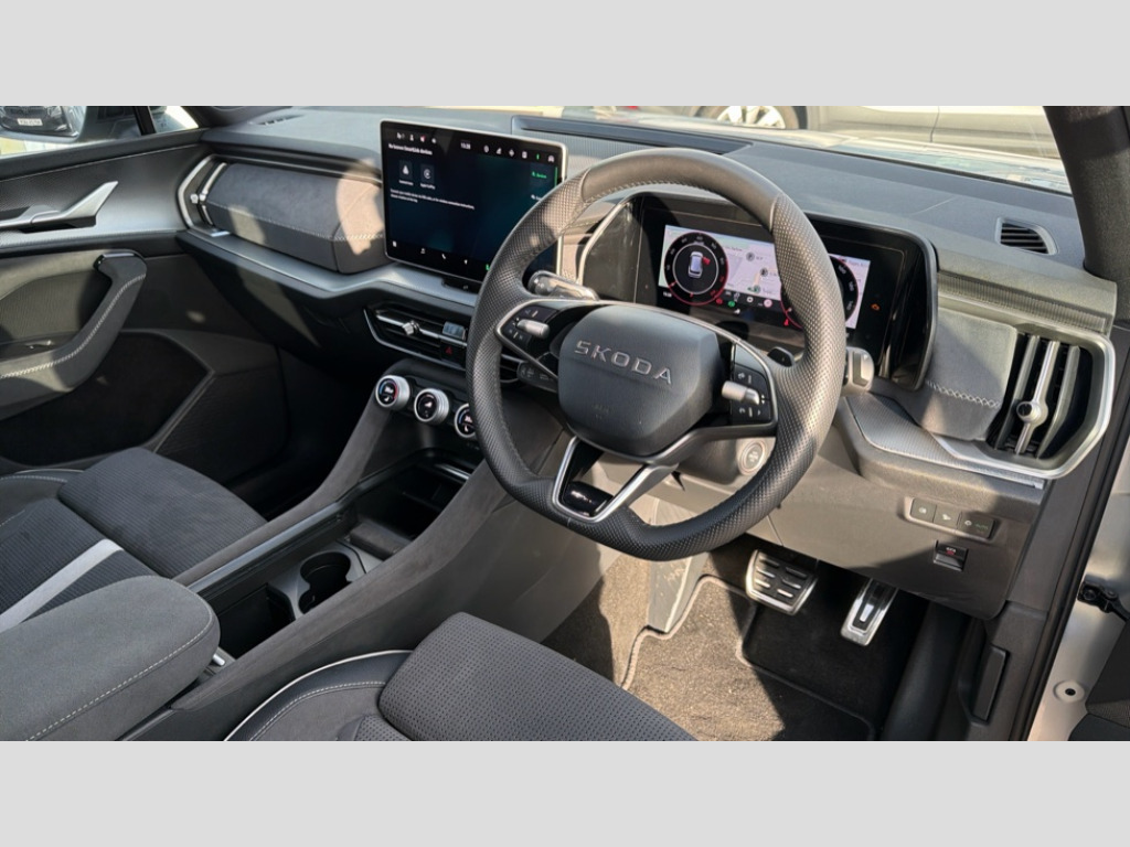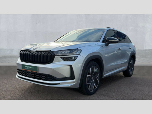 Skoda Kodiaq 1.5 TSI e-TEC SportLine 5dr DSG [7 Seat] 13" satellite navigation touchscreen display, Blind spot detection with door exit warning, Bluetooth system, ChatGPT functionality, Driver alert - Fatigue and drowsiness monitor, Dry display cleaner, Emergency call, Front and rear parking sensors, Front cross traffic assist, Lane assist, PAS, Rear traffic assist, Tailgate unlocking from outside, Traffic sign recognition, USB C Port x 2 in front centre console, Virtual Cockpit - 10.25" digital display, Voice control system, Wireless charging for two smartphones (15W) with cooling function, Wireless SmartLink for Apple CarPlay and Android Auto, Stop/start function, 2x USB-C in the rear, DAB Digital radio, Aero front windscreen wipers with intermittent function, Auto dimming rear view mirror, AWL (all weather lighting) and all weather light with cornering function, Black diffuser and decorative tailpipe with a unique dark chrome finish, Black roof rails, Black sports styling including front grille and window surrounds, Black wheel arch surrounds, Body colour door handles, Cornering light and poor weather light, Electric folding /adjustable/separted heated/folding door mirrors, auto dimming with boarding sports and memory function, Electric front and rear windows, Exterior black decorative trims, Front and rear sports bumpers including lower rear chrome strip, Gloss black door mirrors, Gloss black window frame and D pillar, Heat insulating glass in windshield, Heated rear window, Ice scraper in fuel tank cap, LED daytime running lights, LED third brake light in rear spoiler, Light assistant with automatic headlight control and coming home feature, Logo projection in door mirrors, Privacy glass, Rear roof spoiler, Rear side wing doors, Rear window wiper, Red decorative strip between rear LED lights, Safety reflectors on front and rear doors, Sportline badge on front fenders, Tailgate lettering in Black, Unique dark chrome design logo on alloy wheels, Window control switches with black trim, Windscreen wipers with rain sensor, Without engine designation, 1.5l bottle holder points in all door, 1x centre rear reading light, 2 seat bench in 3rd row, 3 configurable smart dials with 32mm coloured display, 3 seat bench in 2nd row, 4 foldable roof handles with rear coat hooks, Aluminium pedals, Ambient interior lighting - Dashboard, front-door stowage compartments, front and rear door panels and footwell lighting, Automatic gear selector on steering column, Chrome interior door handles, Driver/front passenger reading lights, Fabric headlining, Fixed bench 40:60:40 split folding backrests, Front and rear floor mats, Front centre armrest with jumbo box storage compartment, cup holder and 12V socket, Front sport seats, Height adjustable front headrests, Interior black decorative trims, Isofix child seat fittings in outer middle row rear seats and front passenger with top tether, Manually adjustable steering column, Pollen filter, Rear centre armrest with cupholders, Rear seat boot backrest release, Single front passenger seat, Skoda lettering on steering wheel, Storage pocket including mobile phone pockets on the backs of the front seats, Sunvisors with illuminated vanity mirrors, Three rear height adjustable headrests, Ticket holder on A Pillar, Tri zone climate control, Umbrella in door panel x1 made from sustainable materials, Upper and lower glovebox with card holder and coin compartment, USB C port by rear view mirror for charging only (15W), Acoustic package - Kodiaq, Performance package - Kodiaq, Sportline design selection pack - Kodiaq, Auto door release and activation of warning lights in the event of an accident, Driver and front passenger airbag with knee airbag and front passenger airbag deactivation, Electric child locks, Electronic parking brake, ESC (incl. ABS+EMD+MSR+ASR+EDL+HBA+DSR+RBS+ESBS+MCB+TSA+XDS), Front assist with braking reaction to vehicles, pedestrians and cyclists, Front disc brakes, Fuel cut off safety device, Height adjustable front 3 point seatbelts + pretensioners, Hill hold assist, Junction assist with automatic emergency braking, Rear disc brakes, Safety vest holder in door, Seat belt reminder for all seats, Three point rear seat belts, Two tone horn, Tyre pressure monitor, Alarm with interior monitoring and tilt sensor with safe function, Anti-theft wheel bolts, Immobiliser, Remote central locking with 2 keys, 20" Rila anthacite polished alloy wheel with black matte aero covers
