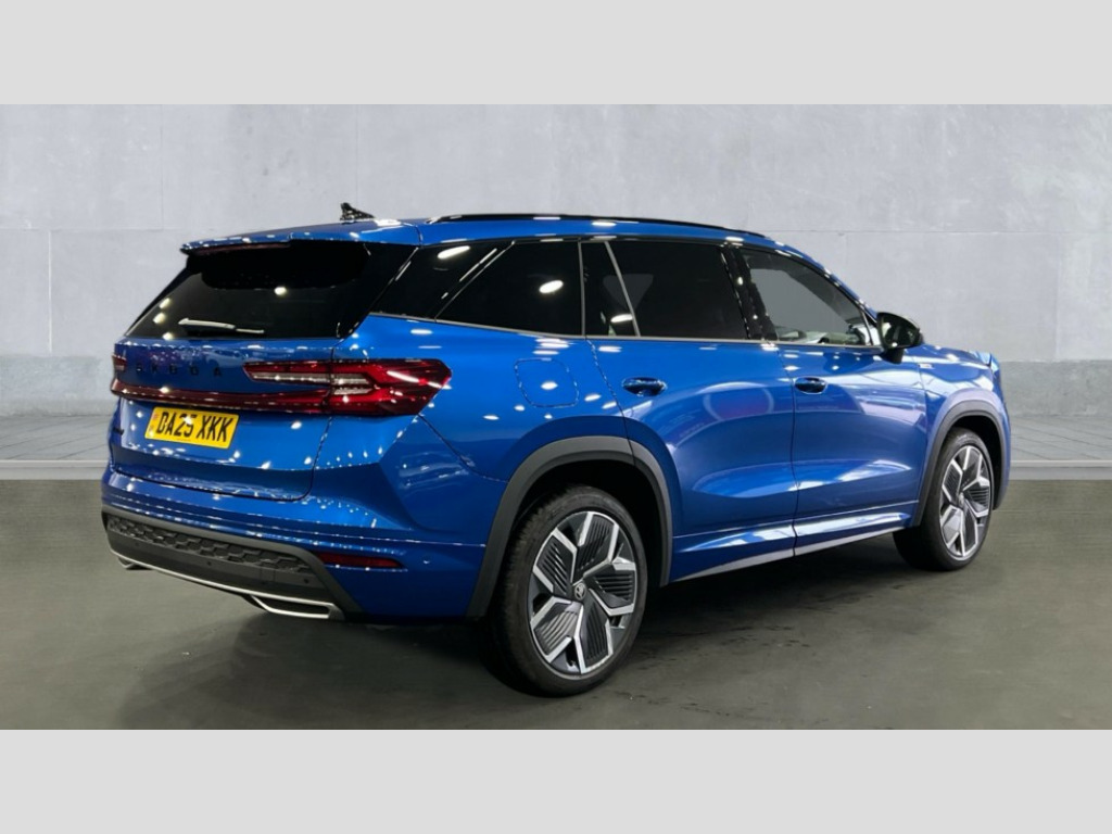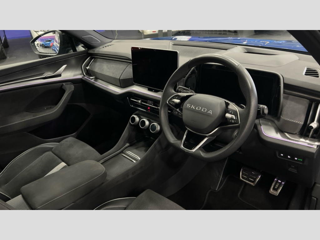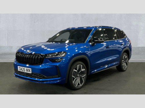 Skoda Kodiaq 1.5 TSI e-TEC SportLine 5dr DSG [7 Seat] 13" satellite navigation touchscreen display, Blind spot detection with door exit warning, Bluetooth system, ChatGPT functionality, Driver alert - Fatigue and drowsiness monitor, Dry display cleaner, Emergency call, Front and rear parking sensors, Front cross traffic assist, Lane assist, PAS, Rear traffic assist, Tailgate unlocking from outside, Traffic sign recognition, USB C Port x 2 in front centre console, Virtual Cockpit - 10.25" digital display, Voice control system, Wireless charging for two smartphones (15W) with cooling function, Wireless SmartLink for Apple CarPlay and Android Auto, Stop/start function, 2x USB-C in the rear, DAB Digital radio, Aero front windscreen wipers with intermittent function, Auto dimming rear view mirror, AWL (all weather lighting) and all weather light with cornering function, Black diffuser and decorative tailpipe with a unique dark chrome finish, Black roof rails, Black sports styling including front grille and window surrounds, Black wheel arch surrounds, Body colour door handles, Cornering light and poor weather light, Electric folding /adjustable/separted heated/folding door mirrors, auto dimming with boarding sports and memory function, Electric front and rear windows, Exterior black decorative trims, Front and rear sports bumpers including lower rear chrome strip, Gloss black door mirrors, Gloss black window frame and D pillar, Heat insulating glass in windshield, Heated rear window, Ice scraper in fuel tank cap, LED daytime running lights, LED third brake light in rear spoiler, Light assistant with automatic headlight control and coming home feature, Logo projection in door mirrors, Privacy glass, Rear roof spoiler, Rear side wing doors, Rear window wiper, Red decorative strip between rear LED lights, Safety reflectors on front and rear doors, Sportline badge on front fenders, Tailgate lettering in Black, Unique dark chrome design logo on alloy wheels, Window control switches with black trim, Windscreen wipers with rain sensor, Without engine designation, 1.5l bottle holder points in all door, 1x centre rear reading light, 2 seat bench in 3rd row, 3 configurable smart dials with 32mm coloured display, 3 seat bench in 2nd row, 4 foldable roof handles with rear coat hooks, Aluminium pedals, Ambient interior lighting - Dashboard, front-door stowage compartments, front and rear door panels and footwell lighting, Automatic gear selector on steering column, Chrome interior door handles, Driver/front passenger reading lights, Fabric headlining, Fixed bench 40:60:40 split folding backrests, Front and rear floor mats, Front centre armrest with jumbo box storage compartment, cup holder and 12V socket, Front sport seats, Height adjustable front headrests, Interior black decorative trims, Isofix child seat fittings in outer middle row rear seats and front passenger with top tether, Manually adjustable steering column, Pollen filter, Rear centre armrest with cupholders, Rear seat boot backrest release, Single front passenger seat, Skoda lettering on steering wheel, Storage pocket including mobile phone pockets on the backs of the front seats, Sunvisors with illuminated vanity mirrors, Three rear height adjustable headrests, Ticket holder on A Pillar, Tri zone climate control, Umbrella in door panel x1 made from sustainable materials, Upper and lower glovebox with card holder and coin compartment, USB C port by rear view mirror for charging only (15W), Acoustic package - Kodiaq, Performance package - Kodiaq, Sportline design selection pack - Kodiaq, Auto door release and activation of warning lights in the event of an accident, Driver and front passenger airbag with knee airbag and front passenger airbag deactivation, Electric child locks, Electronic parking brake, ESC (incl. ABS+EMD+MSR+ASR+EDL+HBA+DSR+RBS+ESBS+MCB+TSA+XDS), Front assist with braking reaction to vehicles, pedestrians and cyclists, Front disc brakes, Fuel cut off safety device, Height adjustable front 3 point seatbelts + pretensioners, Hill hold assist, Junction assist with automatic emergency braking, Rear disc brakes, Safety vest holder in door, Seat belt reminder for all seats, Three point rear seat belts, Two tone horn, Tyre pressure monitor, Alarm with interior monitoring and tilt sensor with safe function, Anti-theft wheel bolts, Immobiliser, Remote central locking with 2 keys, 20" Rila anthacite polished alloy wheel with black matte aero covers