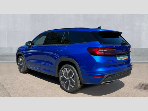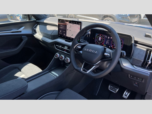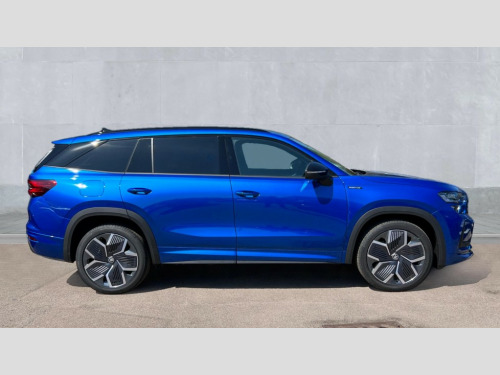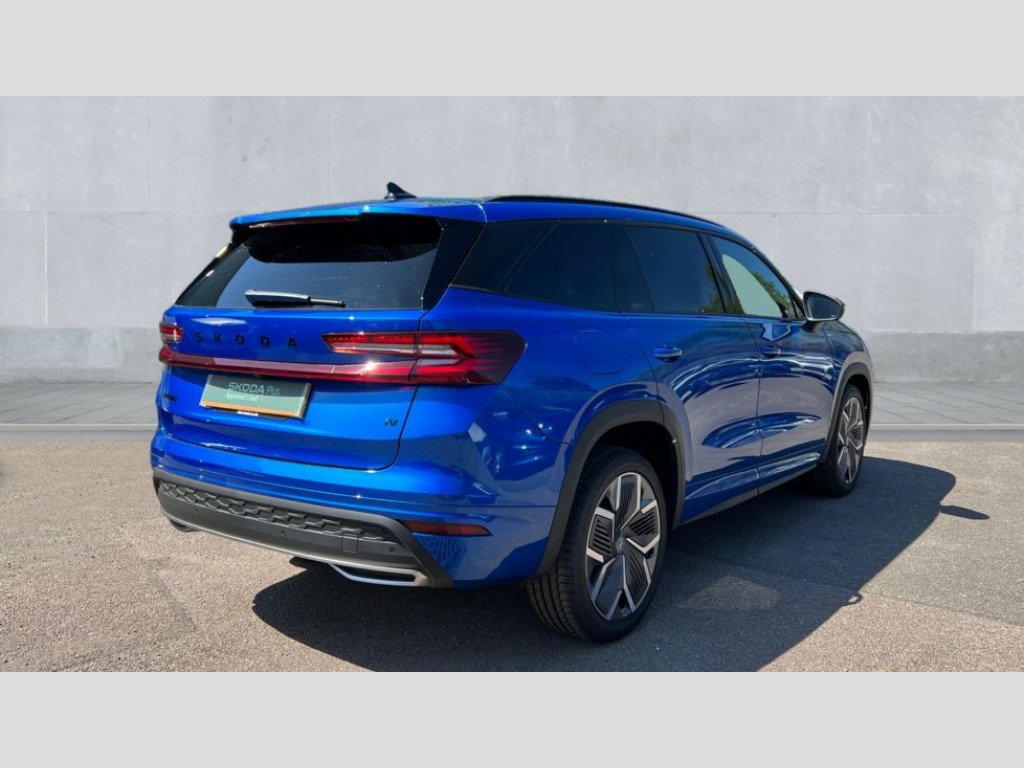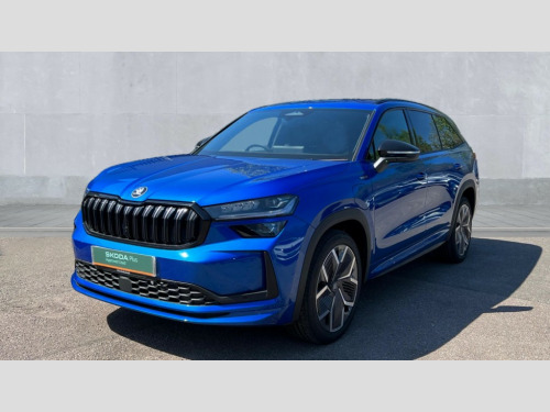 Skoda Kodiaq 1.5 TSI iV 204 SportLine 5dr DSG 13" satellite navigation touchscreen display, Blind spot detection with door exit warning, Bluetooth system, ChatGPT functionality, Driver alert - Fatigue and drowsiness monitor, Dry display cleaner, Emergency call, Front and rear parking sensors, Front cross traffic assist, Lane assist, PAS, Rear traffic assist, Tailgate unlocking from outside, Traffic sign recognition, USB C Port x 2 in front centre console, Virtual Cockpit - 10.25" digital display, Voice control system, Wireless charging for two smartphones (15W) with cooling function, Wireless SmartLink for Apple CarPlay and Android Auto, 32A charging cable, Stop/start function, 2x USB-C in the rear, DAB Digital radio, Aero front windscreen wipers with intermittent function, Auto dimming rear view mirror, AWL (all weather lighting) and all weather light with cornering function, Black diffuser and decorative tailpipe with a unique dark chrome finish, Black roof rails, Black sports styling including front grille and window surrounds, Black wheel arch surrounds, Body colour door handles, Cornering light and poor weather light, Electric folding /adjustable/separted heated/folding door mirrors, auto dimming with boarding sports and memory function, Electric front and rear windows, Exterior black decorative trims, Front and rear sports bumpers including lower rear chrome strip, Gloss black door mirrors, Gloss black window frame and D pillar, Heat insulating glass in windshield, Heated rear window, Ice scraper in fuel tank cap, LED daytime running lights, LED third brake light in rear spoiler, Light assistant with automatic headlight control and coming home feature, Logo projection in door mirrors, Privacy glass, Rear roof spoiler, Rear side wing doors, Rear window wiper, Red decorative strip between rear LED lights, Safety reflectors on front and rear doors, Sportline badge on front fenders, Tailgate lettering in Black, Unique dark chrome design logo on alloy wheels, Window control switches with black trim, Windscreen wipers with rain sensor, Without engine designation, 1.5l bottle holder points in all door, 1x centre rear reading light, 3 configurable smart dials with 32mm coloured display, 3 seat bench in 2nd row, 4 foldable roof handles with rear coat hooks, Aluminium pedals, Ambient interior lighting - Dashboard, front-door stowage compartments, front and rear door panels and footwell lighting, Automatic gear selector on steering column, Chrome interior door handles, Driver/front passenger reading lights, Fabric headlining, Fixed bench 40:60:40 split folding backrests, Front and rear floor mats, Front centre armrest with jumbo box storage compartment, cup holder and 12V socket, Front sport seats, Height adjustable front headrests, Interior black decorative trims, Isofix child seat fittings in outer rear seats and front passenger with top tether, iV badging on boot, Manually adjustable steering column, Pollen filter, Rear centre armrest with cupholders, Rear seat boot backrest release, Single front passenger seat, Skoda lettering on steering wheel, Storage pocket including mobile phone pockets on the backs of the front seats, Sunvisors with illuminated vanity mirrors, Three rear height adjustable headrests, Ticket holder on A Pillar, Tri zone climate control, Umbrella in door panel x1 made from sustainable materials, Upper and lower glovebox with card holder and coin compartment, USB C port by rear view mirror for charging only (15W), Acoustic package - Kodiaq, Performance package - Kodiaq, Sportline design selection pack - Kodiaq, Auto door release and activation of warning lights in the event of an accident, Driver and front passenger airbag with knee airbag and front passenger airbag deactivation, Electric child locks, Electronic parking brake, ESC (incl. ABS+EMD+MSR+ASR+EDL+HBA+DSR+RBS+ESBS+MCB+TSA+XDS), Front assist with braking reaction to vehicles, pedestrians and cyclists, Front disc brakes, Fuel cut off safety device, Height adjustable front 3 point seatbelts + pretensioners, Hill hold assist, Junction assist with automatic emergency braking, Rear disc brakes, Safety vest holder in door, Seat belt reminder for all seats, Three point rear seat belts, Two tone horn, Tyre pressure monitor, Alarm with interior monitoring and tilt sensor with safe function, Anti-theft wheel bolts, Immobiliser, Remote central locking with 2 keys, 20" Rila anthacite polished alloy wheel with black matte aero covers, Breakdown kit, Tool kit