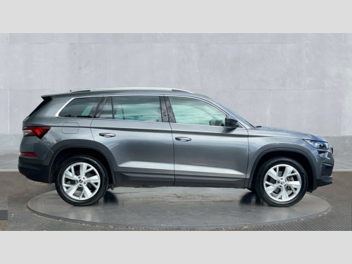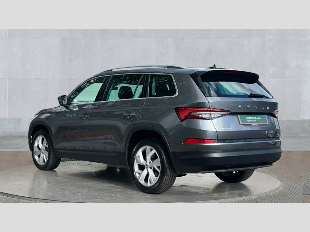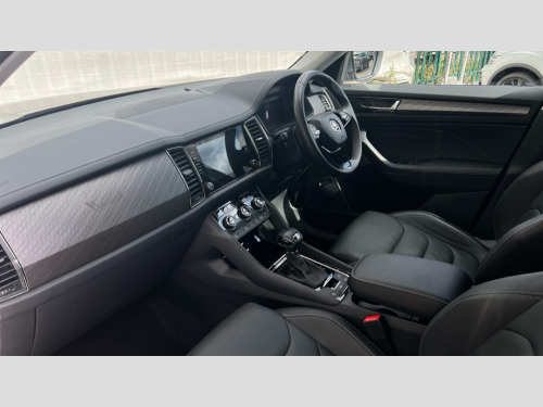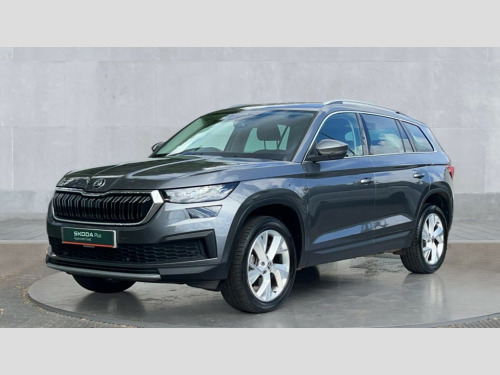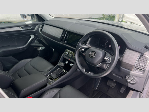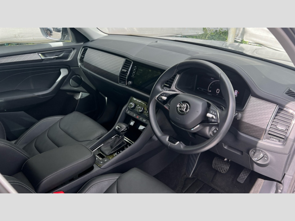 Skoda Kodiaq 1.5 TSI SE L Executive 5dr DSG [7 Seat] Bluetooth system, Digital voice enhancement, e call+, ECO Stop/start function, Exterior temperature indicator, Rear view camera, Smartlink wireless for apple carplay and wired for android auto, Speed limiter, Tailgate unlocking from outside, USB C Port x 2 in front centre console, Virtual Cockpit - 10.25" digital display, Wireless charging, 8 Speakers, DAB Digital radio, Aero front windscreen wipers with intermittent function, Aero rear window wiper, Auto dimming rear view mirror, Black wheel arch surrounds, Body colour bumpers, Body colour door mirrors and handles, Chrome front grille, Chrome roof rails with chrome window surround, Electric adjustable/heated/folding door mirrors, driver side auto dimming with boarding sports and memory function, Electric front and rear windows, Extended rear spoiler with finlets in gloss black, Front fog lights, Full LED matrix headlights with AFS (adaptive front light system), cornering function and AWL (all weather lighting system), Headlight washers, Heated rear window, Invisible tailpipe, LED daytime running lights, LED rear fog light, LED third brake light in rear spoiler, Light assistant (coming/leaving home/tunnel light), Off-road style lower front bumper element, Privacy glass, Rain and light sensors, Rear LED lights (high functionality) with welcome effect and dynamic indicators, Rear side wing doors, Safety reflectors on front and rear doors, Window control switches with black trim, 12V socket in boot, 2 rails with 2 hooks, 2 seat bench in 3rd row, 2 spoke multi-function leather steering wheel with paddle shift, 3 seat bench in 2nd row, 4 foldable roof handles with rear coat hooks, 60:40 foldable rear seat with sliding adjustment and backrest angle adjustment, Bottle holders in door panel in the 1.5 litre front and 1 litre rear, Cargo storage compartments, Chrome headlight control button, Chrome interior door handles, Coat hooks on B pillar, Covered storage compartment on driver side, Decorative door sill covers, Front and rear door armrest with black adductor trim, Front centre armrest with storage compartment, cup holder and 12V socket, Front courtesy lights, Gear shift lever with chrome frame and black gloss insert, Grey stitching in front and rear armrests and door armrests + door inserts, Height adjustable front headrests, Illuminated glovebox, Illuminated luggage compartment, Isofix child seat fittings in outer rear seats with top tether, Manually adjustable steering column, Net programme in boot (1x horizontal Net, 2x vertical Nets), Overhead glasses storage compartment, Pollen filter, Rear centre armrest with cupholders, Single front passenger seat, Sliding trunk cover, Small Bags on the inner sides of the front backrests, Sunvisors with illuminated vanity mirrors, Three rear height adjustable headrests, Ticket holder on A Pillar, Umbrella in door panel, Variable boot floor, Auto door release and activation of warning lights in the event of an accident, Driver and front passenger airbag with knee airbag and front passenger airbag deactivation, Electronic parking brake with hill start assist, Emergency rear braking signal, ESC (incl. ABS+MSR+ASR+EDS+HBA+DSR+RBS+MKB), Front assist with autonomous emergency braking, Front side airbags with curtain airbags, Fuel cut off safety device, Height adjustable front 3 point seatbelts + pretensioners, Hill hold control, Rear disc brakes, Safety vest holder in door, Seat belt reminder for all seats, Three point rear seat belts, Two tone horn, Tyre pressure monitor, Alarm with interior monitoring and tilt sensor with safe function, Anti-theft wheel bolts, Immobiliser, Keyless entry and start system (KESSY), Remote central locking with 2 keys, Grey stitching in dashboard, Linear diamonds decorative inserts, Temporary spare wheel (space saver)