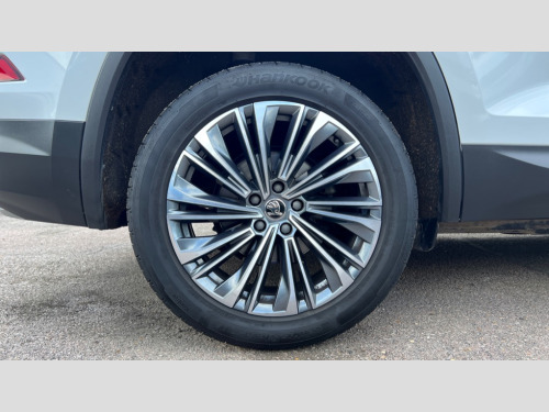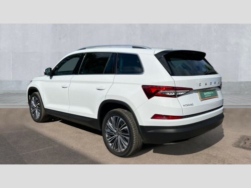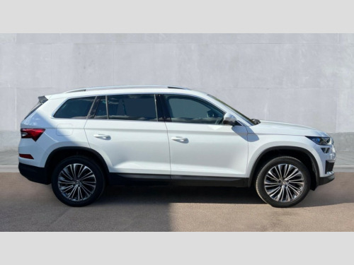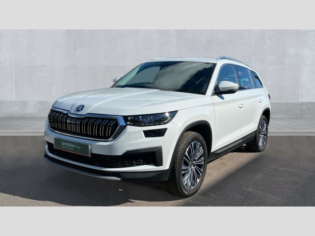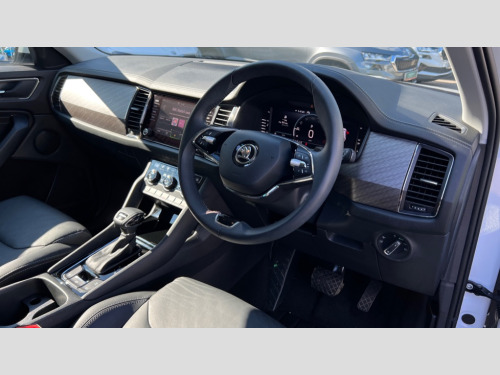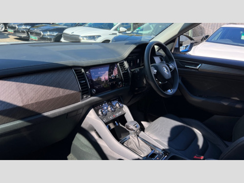 Skoda Kodiaq 1.5 TSI SE L Executive 5dr DSG [7 Seat] Bluetooth system, Digital voice enhancement, e call+, ECO Stop/start function, Exterior temperature indicator, Rear view camera, Smartlink wireless for apple carplay and wired for android auto, Speed limiter, Tailgate unlocking from outside, USB C Port x 2 in front centre console, Virtual Cockpit - 10.25" digital display, Wireless charging, 8 Speakers, DAB Digital radio, Aero front windscreen wipers with intermittent function, Aero rear window wiper, Auto dimming rear view mirror, Black wheel arch surrounds, Body colour bumpers, Body colour door mirrors and handles, Chrome front grille, Chrome roof rails with chrome window surround, Electric adjustable/heated/folding door mirrors, driver side auto dimming with boarding sports and memory function, Electric front and rear windows, Extended rear spoiler with finlets in gloss black, Front fog lights, Full LED matrix headlights with AFS (adaptive front light system), cornering function and AWL (all weather lighting system), Headlight washers, Heated rear window, Invisible tailpipe, LED daytime running lights, LED rear fog light, LED third brake light in rear spoiler, Light assistant (coming/leaving home/tunnel light), Off-road style lower front bumper element, Privacy glass, Rain and light sensors, Rear LED lights (high functionality) with welcome effect and dynamic indicators, Rear side wing doors, Safety reflectors on front and rear doors, Window control switches with black trim, 12V socket in boot, 2 rails with 2 hooks, 2 seat bench in 3rd row, 2 spoke multi-function leather steering wheel with paddle shift, 3 seat bench in 2nd row, 4 foldable roof handles with rear coat hooks, 60:40 foldable rear seat with sliding adjustment and backrest angle adjustment, Bottle holders in door panel in the 1.5 litre front and 1 litre rear, Cargo storage compartments, Chrome headlight control button, Chrome interior door handles, Coat hooks on B pillar, Covered storage compartment on driver side, Decorative door sill covers, Front and rear door armrest with black adductor trim, Front centre armrest with storage compartment, cup holder and 12V socket, Front courtesy lights, Gear shift lever with chrome frame and black gloss insert, Grey stitching in front and rear armrests and door armrests + door inserts, Height adjustable front headrests, Illuminated glovebox, Illuminated luggage compartment, Isofix child seat fittings in outer rear seats with top tether, Manually adjustable steering column, Net programme in boot (1x horizontal Net, 2x vertical Nets), Overhead glasses storage compartment, Pollen filter, Rear centre armrest with cupholders, Single front passenger seat, Sliding trunk cover, Small Bags on the inner sides of the front backrests, Sunvisors with illuminated vanity mirrors, Three rear height adjustable headrests, Ticket holder on A Pillar, Umbrella in door panel, Variable boot floor, Auto door release and activation of warning lights in the event of an accident, Driver and front passenger airbag with knee airbag and front passenger airbag deactivation, Electronic parking brake with hill start assist, Emergency rear braking signal, ESC (incl. ABS+MSR+ASR+EDS+HBA+DSR+RBS+MKB), Front assist with autonomous emergency braking, Front side airbags with curtain airbags, Fuel cut off safety device, Height adjustable front 3 point seatbelts + pretensioners, Hill hold control, Rear disc brakes, Safety vest holder in door, Seat belt reminder for all seats, Three point rear seat belts, Two tone horn, Tyre pressure monitor, Alarm with interior monitoring and tilt sensor with safe function, Anti-theft wheel bolts, Immobiliser, Keyless entry and start system (KESSY), Remote central locking with 2 keys, Grey stitching in dashboard, Linear diamonds decorative inserts, Temporary spare wheel (space saver)