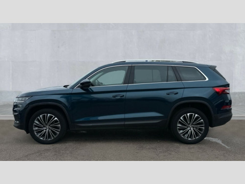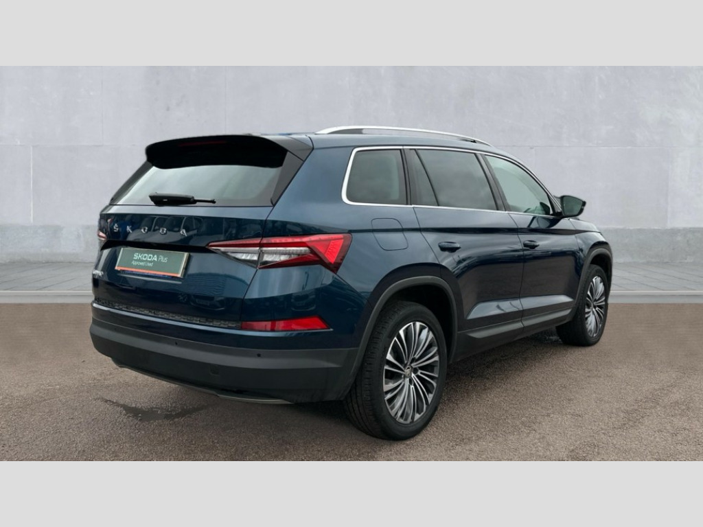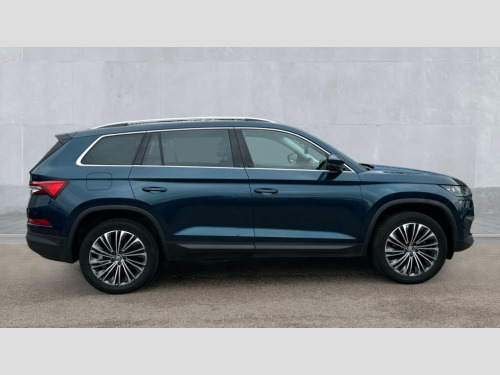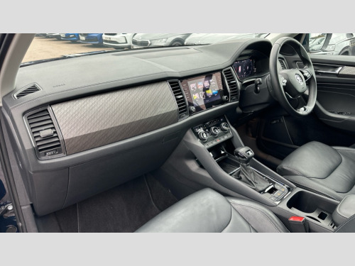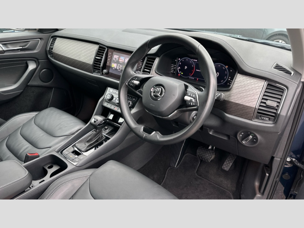 Skoda Kodiaq 1.5 TSI SE L Executive 5dr DSG [7 Seat] Bluetooth system, Digital voice enhancement, e call+, ECO Stop/start function, Exterior temperature indicator, Rear view camera, Smartlink wireless for apple carplay and wired for android auto, Speed limiter, Tailgate unlocking from outside, USB C Port x 2 in front centre console, Virtual Cockpit - 10.25" digital display, Wireless charging, 8 Speakers, DAB Digital radio, Aero front windscreen wipers with intermittent function, Aero rear window wiper, Auto dimming rear view mirror, Black wheel arch surrounds, Body colour bumpers, Body colour door mirrors and handles, Chrome front grille, Chrome roof rails with chrome window surround, Electric adjustable/heated/folding door mirrors, driver side auto dimming with boarding sports and memory function, Electric front and rear windows, Extended rear spoiler with finlets in gloss black, Front fog lights, Full LED matrix headlights with AFS (adaptive front light system), cornering function and AWL (all weather lighting system), Headlight washers, Heated rear window, Invisible tailpipe, LED daytime running lights, LED rear fog light, LED third brake light in rear spoiler, Light assistant (coming/leaving home/tunnel light), Off-road style lower front bumper element, Privacy glass, Rain and light sensors, Rear LED lights (high functionality) with welcome effect and dynamic indicators, Rear side wing doors, Safety reflectors on front and rear doors, Window control switches with black trim, 12V socket in boot, 2 rails with 2 hooks, 2 seat bench in 3rd row, 2 spoke multi-function leather steering wheel with paddle shift, 3 seat bench in 2nd row, 4 foldable roof handles with rear coat hooks, 60:40 foldable rear seat with sliding adjustment and backrest angle adjustment, Bottle holders in door panel in the 1.5 litre front and 1 litre rear, Cargo storage compartments, Chrome headlight control button, Chrome interior door handles, Coat hooks on B pillar, Covered storage compartment on driver side, Decorative door sill covers, Front and rear door armrest with black adductor trim, Front centre armrest with storage compartment, cup holder and 12V socket, Front courtesy lights, Gear shift lever with chrome frame and black gloss insert, Grey stitching in front and rear armrests and door armrests + door inserts, Height adjustable front headrests, Illuminated glovebox, Illuminated luggage compartment, Isofix child seat fittings in outer rear seats with top tether, Manually adjustable steering column, Net programme in boot (1x horizontal Net, 2x vertical Nets), Overhead glasses storage compartment, Pollen filter, Rear centre armrest with cupholders, Single front passenger seat, Sliding trunk cover, Small Bags on the inner sides of the front backrests, Sunvisors with illuminated vanity mirrors, Three rear height adjustable headrests, Ticket holder on A Pillar, Umbrella in door panel, Variable boot floor, Auto door release and activation of warning lights in the event of an accident, Driver and front passenger airbag with knee airbag and front passenger airbag deactivation, Electronic parking brake with hill start assist, Emergency rear braking signal, ESC (incl. ABS+MSR+ASR+EDS+HBA+DSR+RBS+MKB), Front assist with autonomous emergency braking, Front side airbags with curtain airbags, Fuel cut off safety device, Height adjustable front 3 point seatbelts + pretensioners, Hill hold control, Rear disc brakes, Safety vest holder in door, Seat belt reminder for all seats, Three point rear seat belts, Two tone horn, Tyre pressure monitor, Alarm with interior monitoring and tilt sensor with safe function, Anti-theft wheel bolts, Immobiliser, Keyless entry and start system (KESSY), Remote central locking with 2 keys, Grey stitching in dashboard, Linear diamonds decorative inserts, Temporary spare wheel (space saver)