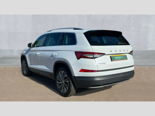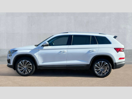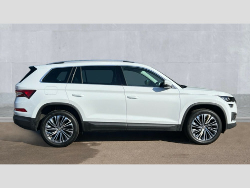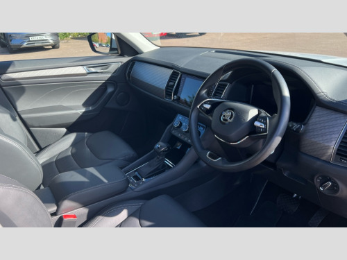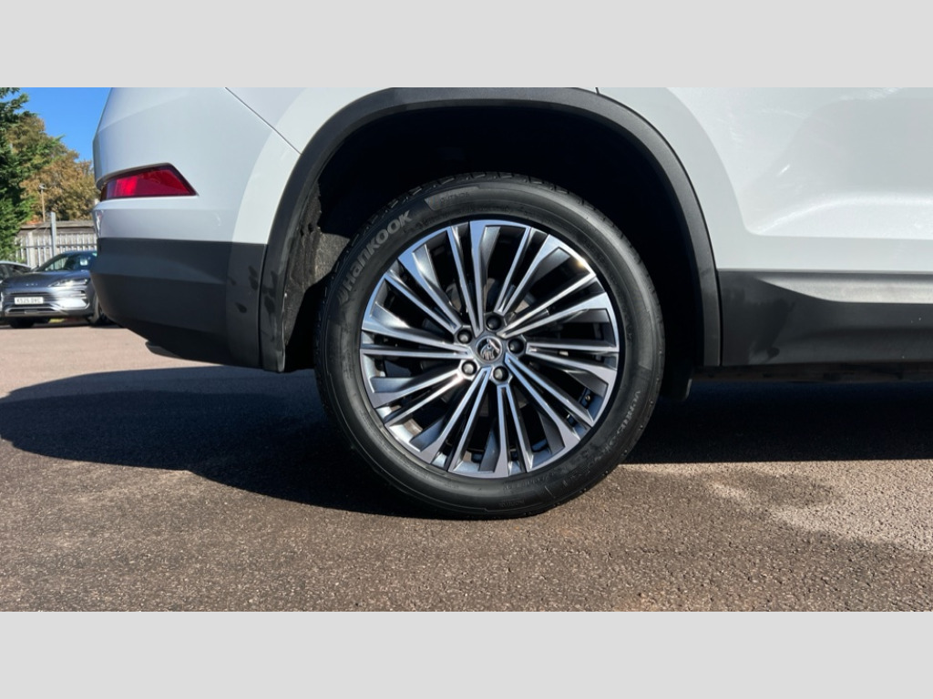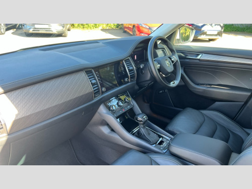 Skoda Kodiaq 1.5 TSI SE L Executive 5dr DSG [7 Seat] Bluetooth system, Digital voice enhancement, e call+, ECO Stop/start function, Exterior temperature indicator, Rear view camera, Smartlink wireless for apple carplay and wired for android auto, Speed limiter, Tailgate unlocking from outside, USB C Port x 2 in front centre console, Virtual Cockpit - 10.25" digital display, Wireless charging, 8 Speakers, DAB Digital radio, Aero front windscreen wipers with intermittent function, Aero rear window wiper, Auto dimming rear view mirror, Black wheel arch surrounds, Body colour bumpers, Body colour door mirrors and handles, Chrome front grille, Chrome roof rails with chrome window surround, Electric adjustable/heated/folding door mirrors, driver side auto dimming with boarding sports and memory function, Electric front and rear windows, Extended rear spoiler with finlets in gloss black, Front fog lights, Full LED matrix headlights with AFS (adaptive front light system), cornering function and AWL (all weather lighting system), Headlight washers, Heated rear window, Invisible tailpipe, LED daytime running lights, LED rear fog light, LED third brake light in rear spoiler, Light assistant (coming/leaving home/tunnel light), Off-road style lower front bumper element, Privacy glass, Rain and light sensors, Rear LED lights (high functionality) with welcome effect and dynamic indicators, Rear side wing doors, Safety reflectors on front and rear doors, Window control switches with black trim, 12V socket in boot, 2 rails with 2 hooks, 2 seat bench in 3rd row, 2 spoke multi-function leather steering wheel with paddle shift, 3 seat bench in 2nd row, 4 foldable roof handles with rear coat hooks, 60:40 foldable rear seat with sliding adjustment and backrest angle adjustment, Bottle holders in door panel in the 1.5 litre front and 1 litre rear, Cargo storage compartments, Chrome headlight control button, Chrome interior door handles, Coat hooks on B pillar, Covered storage compartment on driver side, Decorative door sill covers, Front and rear door armrest with black adductor trim, Front centre armrest with storage compartment, cup holder and 12V socket, Front courtesy lights, Gear shift lever with chrome frame and black gloss insert, Grey stitching in front and rear armrests and door armrests + door inserts, Height adjustable front headrests, Illuminated glovebox, Illuminated luggage compartment, Isofix child seat fittings in outer rear seats with top tether, Manually adjustable steering column, Net programme in boot (1x horizontal Net, 2x vertical Nets), Overhead glasses storage compartment, Pollen filter, Rear centre armrest with cupholders, Single front passenger seat, Sliding trunk cover, Small Bags on the inner sides of the front backrests, Sunvisors with illuminated vanity mirrors, Three rear height adjustable headrests, Ticket holder on A Pillar, Umbrella in door panel, Variable boot floor, Auto door release and activation of warning lights in the event of an accident, Driver and front passenger airbag with knee airbag and front passenger airbag deactivation, Electronic parking brake with hill start assist, Emergency rear braking signal, ESC (incl. ABS+MSR+ASR+EDS+HBA+DSR+RBS+MKB), Front assist with autonomous emergency braking, Front side airbags with curtain airbags, Fuel cut off safety device, Height adjustable front 3 point seatbelts + pretensioners, Hill hold control, Rear disc brakes, Safety vest holder in door, Seat belt reminder for all seats, Three point rear seat belts, Two tone horn, Tyre pressure monitor, Alarm with interior monitoring and tilt sensor with safe function, Anti-theft wheel bolts, Immobiliser, Keyless entry and start system (KESSY), Remote central locking with 2 keys, Grey stitching in dashboard, Linear diamonds decorative inserts, Temporary spare wheel (space saver)