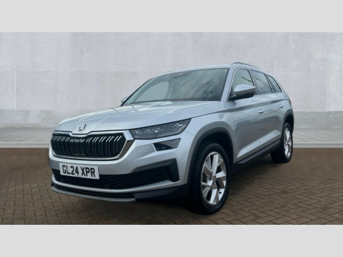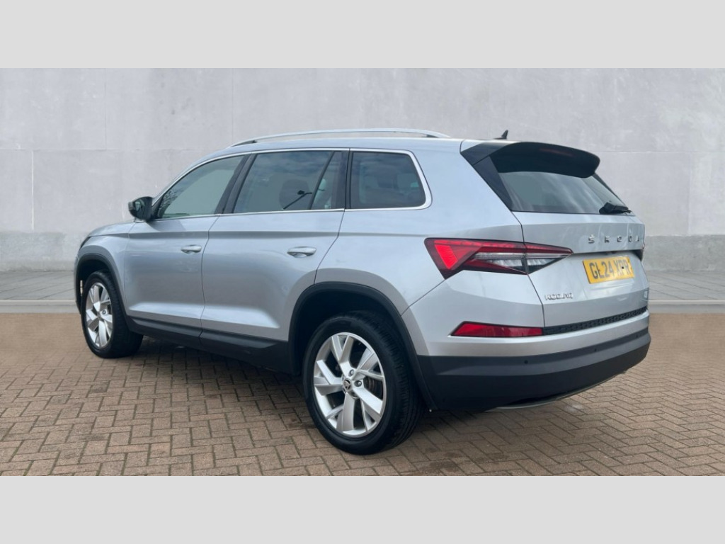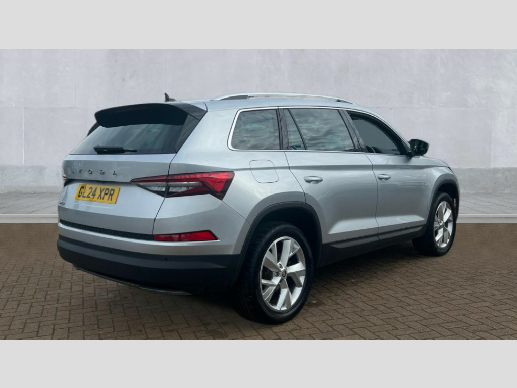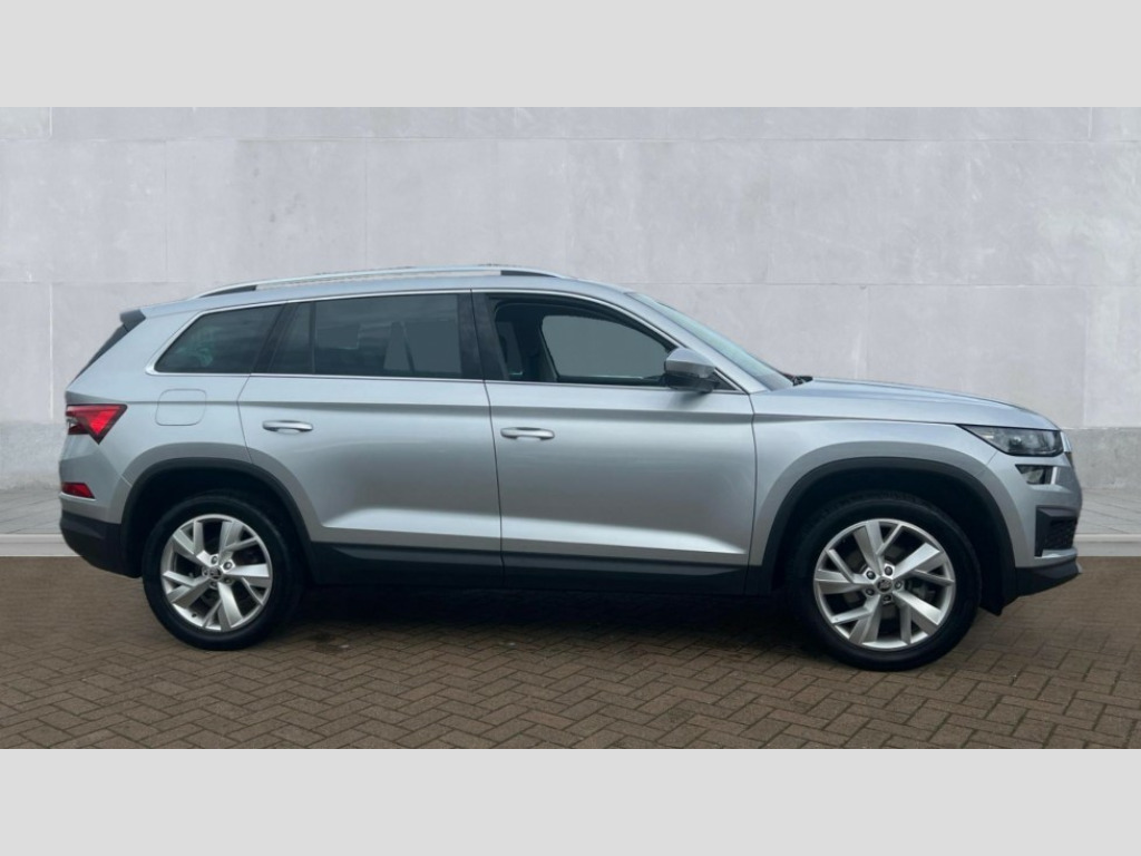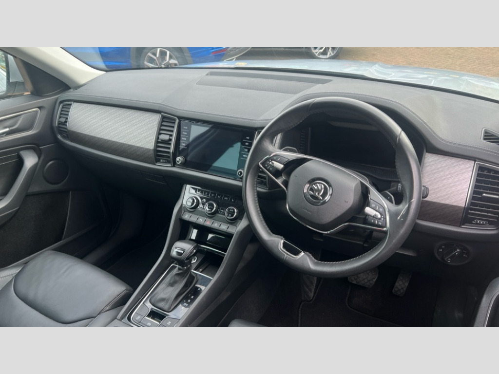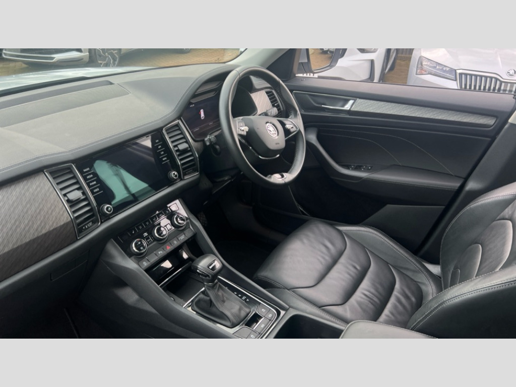 Skoda Kodiaq 1.5 TSI SE L Executive 5dr DSG [7 Seat] Bluetooth system, Digital voice enhancement, e call+, ECO Stop/start function, Exterior temperature indicator, Rear view camera, Smartlink wireless for apple carplay and wired for android auto, Speed limiter, Tailgate unlocking from outside, USB C Port x 2 in front centre console, Virtual Cockpit - 10.25" digital display, Wireless charging, 8 Speakers, DAB Digital radio, Aero front windscreen wipers with intermittent function, Aero rear window wiper, Auto dimming rear view mirror, Black wheel arch surrounds, Body colour bumpers, Body colour door mirrors and handles, Chrome front grille, Chrome roof rails with chrome window surround, Electric adjustable/heated/folding door mirrors, driver side auto dimming with boarding sports and memory function, Electric front and rear windows, Extended rear spoiler with finlets in gloss black, Front fog lights, Full LED matrix headlights with AFS (adaptive front light system), cornering function and AWL (all weather lighting system), Headlight washers, Heated rear window, Invisible tailpipe, LED daytime running lights, LED rear fog light, LED third brake light in rear spoiler, Light assistant (coming/leaving home/tunnel light), Off-road style lower front bumper element, Privacy glass, Rain and light sensors, Rear LED lights (high functionality) with welcome effect and dynamic indicators, Rear side wing doors, Safety reflectors on front and rear doors, Window control switches with black trim, 12V socket in boot, 2 rails with 2 hooks, 2 seat bench in 3rd row, 2 spoke multi-function leather steering wheel with paddle shift, 3 seat bench in 2nd row, 4 foldable roof handles with rear coat hooks, 60:40 foldable rear seat with sliding adjustment and backrest angle adjustment, Bottle holders in door panel in the 1.5 litre front and 1 litre rear, Cargo storage compartments, Chrome headlight control button, Chrome interior door handles, Coat hooks on B pillar, Covered storage compartment on driver side, Decorative door sill covers, Front and rear door armrest with black adductor trim, Front centre armrest with storage compartment, cup holder and 12V socket, Front courtesy lights, Gear shift lever with chrome frame and black gloss insert, Grey stitching in front and rear armrests and door armrests + door inserts, Height adjustable front headrests, Illuminated glovebox, Illuminated luggage compartment, Isofix child seat fittings in outer rear seats with top tether, Manually adjustable steering column, Net programme in boot (1x horizontal Net, 2x vertical Nets), Overhead glasses storage compartment, Pollen filter, Rear centre armrest with cupholders, Single front passenger seat, Sliding trunk cover, Small Bags on the inner sides of the front backrests, Sunvisors with illuminated vanity mirrors, Three rear height adjustable headrests, Ticket holder on A Pillar, Umbrella in door panel, Variable boot floor, Auto door release and activation of warning lights in the event of an accident, Driver and front passenger airbag with knee airbag and front passenger airbag deactivation, Electronic parking brake with hill start assist, Emergency rear braking signal, ESC (incl. ABS+MSR+ASR+EDS+HBA+DSR+RBS+MKB), Front assist with autonomous emergency braking, Front side airbags with curtain airbags, Fuel cut off safety device, Height adjustable front 3 point seatbelts + pretensioners, Hill hold control, Rear disc brakes, Safety vest holder in door, Seat belt reminder for all seats, Three point rear seat belts, Two tone horn, Tyre pressure monitor, Alarm with interior monitoring and tilt sensor with safe function, Anti-theft wheel bolts, Immobiliser, Keyless entry and start system (KESSY), Remote central locking with 2 keys, Grey stitching in dashboard, Linear diamonds decorative inserts, Temporary spare wheel (space saver)