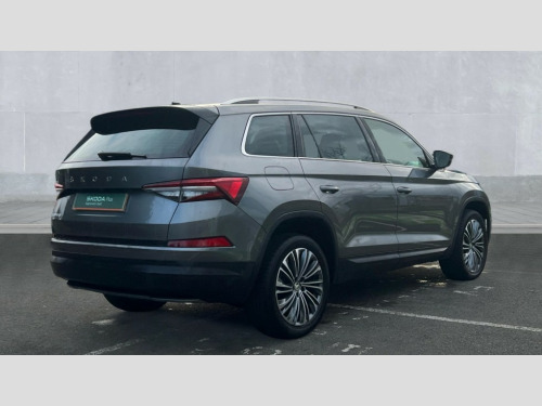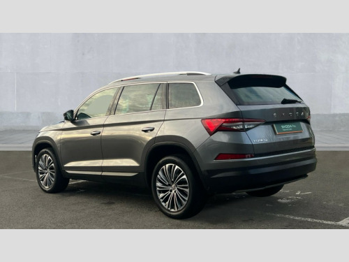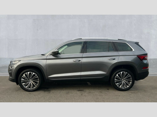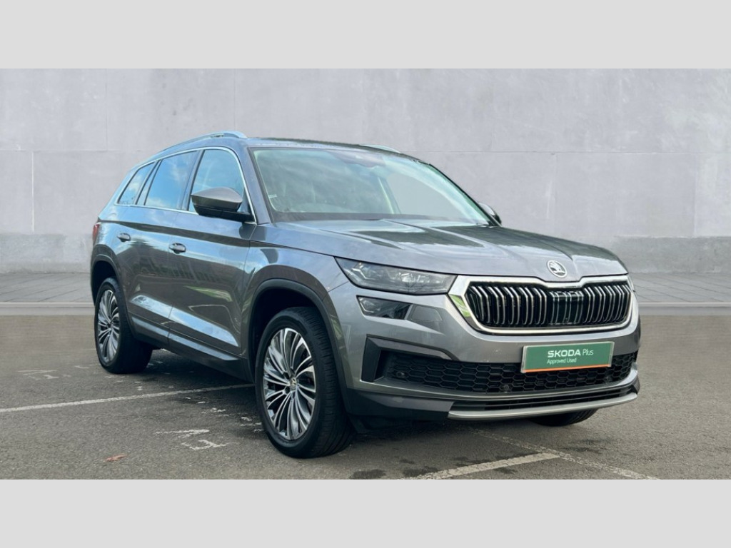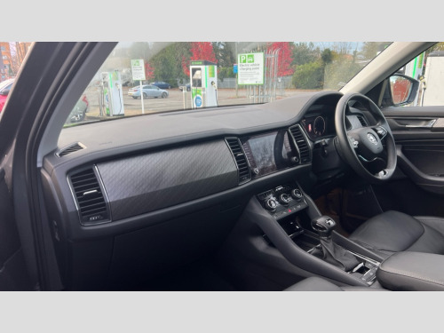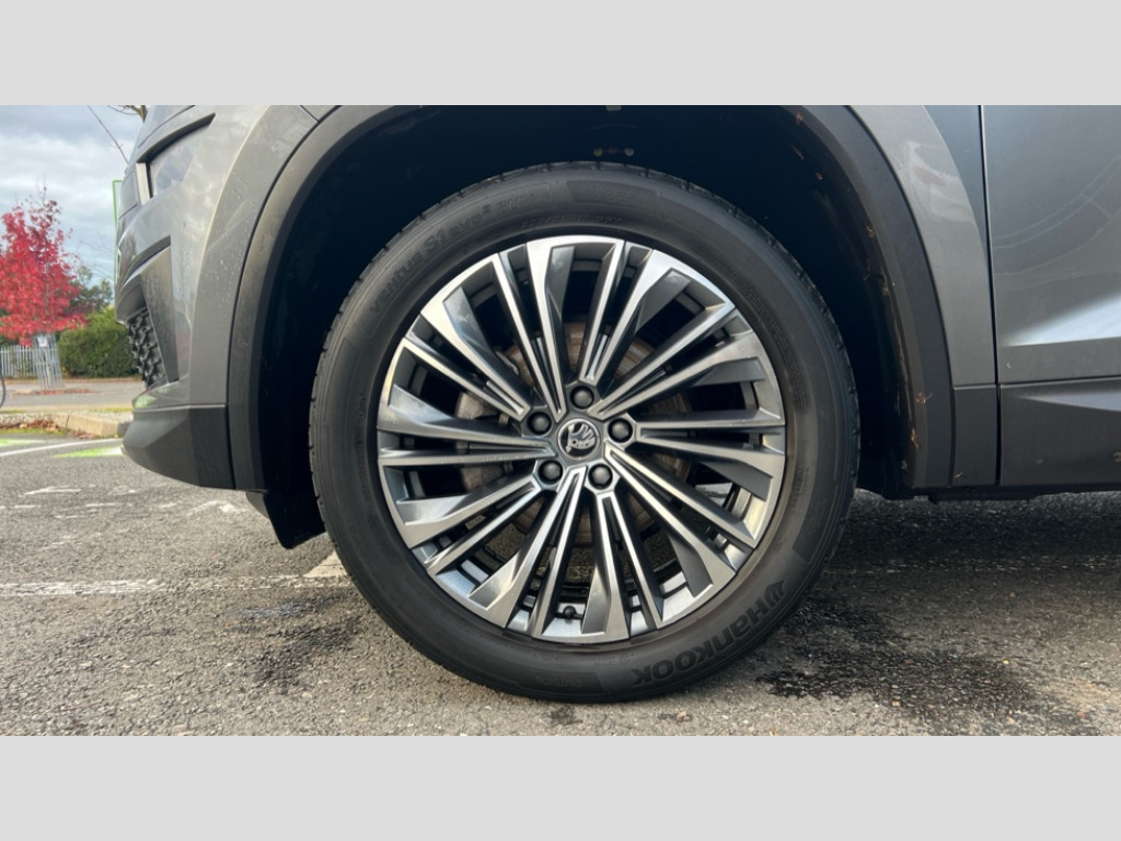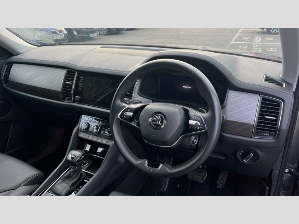 Skoda Kodiaq 1.5 TSI SE L Executive 5dr DSG [7 Seat] Bluetooth system, Digital voice enhancement, e call+, ECO Stop/start function, Exterior temperature indicator, Rear view camera, Smartlink wireless for apple carplay and wired for android auto, Speed limiter, Tailgate unlocking from outside, USB C Port x 2 in front centre console, Virtual Cockpit - 10.25" digital display, Wireless charging, 8 Speakers, DAB Digital radio, Aero front windscreen wipers with intermittent function, Aero rear window wiper, Auto dimming rear view mirror, Black wheel arch surrounds, Body colour bumpers, Body colour door mirrors and handles, Chrome front grille, Chrome roof rails with chrome window surround, Electric adjustable/heated/folding door mirrors, driver side auto dimming with boarding sports and memory function, Electric front and rear windows, Extended rear spoiler with finlets in gloss black, Front fog lights, Full LED matrix headlights with AFS (adaptive front light system), cornering function and AWL (all weather lighting system), Headlight washers, Heated rear window, Invisible tailpipe, LED daytime running lights, LED rear fog light, LED third brake light in rear spoiler, Light assistant (coming/leaving home/tunnel light), Off-road style lower front bumper element, Privacy glass, Rain and light sensors, Rear LED lights (high functionality) with welcome effect and dynamic indicators, Rear side wing doors, Safety reflectors on front and rear doors, Window control switches with black trim, 12V socket in boot, 2 rails with 2 hooks, 2 seat bench in 3rd row, 2 spoke multi-function leather steering wheel with paddle shift, 3 seat bench in 2nd row, 4 foldable roof handles with rear coat hooks, 60:40 foldable rear seat with sliding adjustment and backrest angle adjustment, Bottle holders in door panel in the 1.5 litre front and 1 litre rear, Cargo storage compartments, Chrome headlight control button, Chrome interior door handles, Coat hooks on B pillar, Covered storage compartment on driver side, Decorative door sill covers, Front and rear door armrest with black adductor trim, Front centre armrest with storage compartment, cup holder and 12V socket, Front courtesy lights, Gear shift lever with chrome frame and black gloss insert, Grey stitching in front and rear armrests and door armrests + door inserts, Height adjustable front headrests, Illuminated glovebox, Illuminated luggage compartment, Isofix child seat fittings in outer rear seats with top tether, Manually adjustable steering column, Net programme in boot (1x horizontal Net, 2x vertical Nets), Overhead glasses storage compartment, Pollen filter, Rear centre armrest with cupholders, Single front passenger seat, Sliding trunk cover, Small Bags on the inner sides of the front backrests, Sunvisors with illuminated vanity mirrors, Three rear height adjustable headrests, Ticket holder on A Pillar, Umbrella in door panel, Variable boot floor, Auto door release and activation of warning lights in the event of an accident, Driver and front passenger airbag with knee airbag and front passenger airbag deactivation, Electronic parking brake with hill start assist, Emergency rear braking signal, ESC (incl. ABS+MSR+ASR+EDS+HBA+DSR+RBS+MKB), Front assist with autonomous emergency braking, Front side airbags with curtain airbags, Fuel cut off safety device, Height adjustable front 3 point seatbelts + pretensioners, Hill hold control, Rear disc brakes, Safety vest holder in door, Seat belt reminder for all seats, Three point rear seat belts, Two tone horn, Tyre pressure monitor, Alarm with interior monitoring and tilt sensor with safe function, Anti-theft wheel bolts, Immobiliser, Keyless entry and start system (KESSY), Remote central locking with 2 keys, Grey stitching in dashboard, Linear diamonds decorative inserts, Temporary spare wheel (space saver)