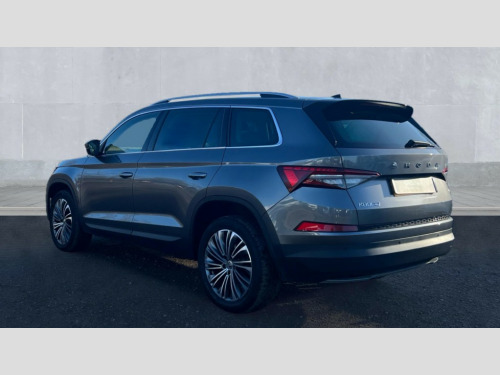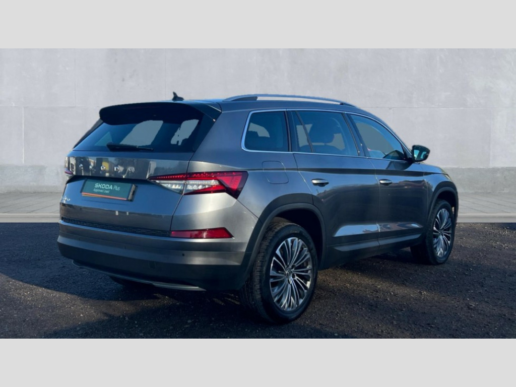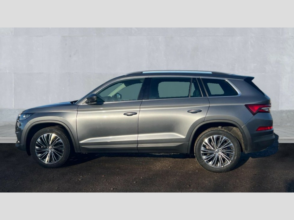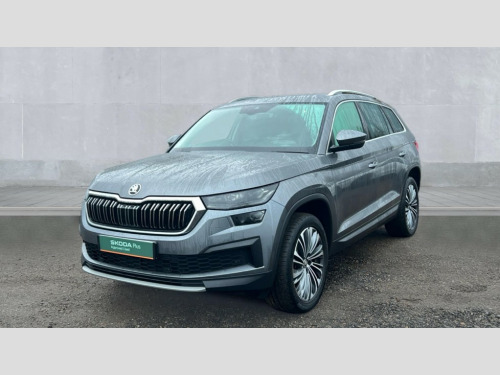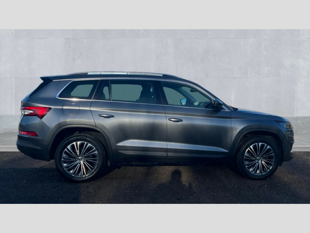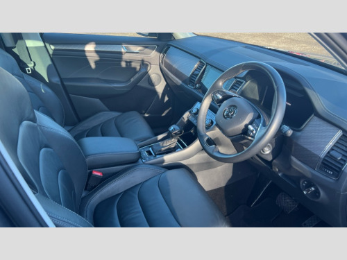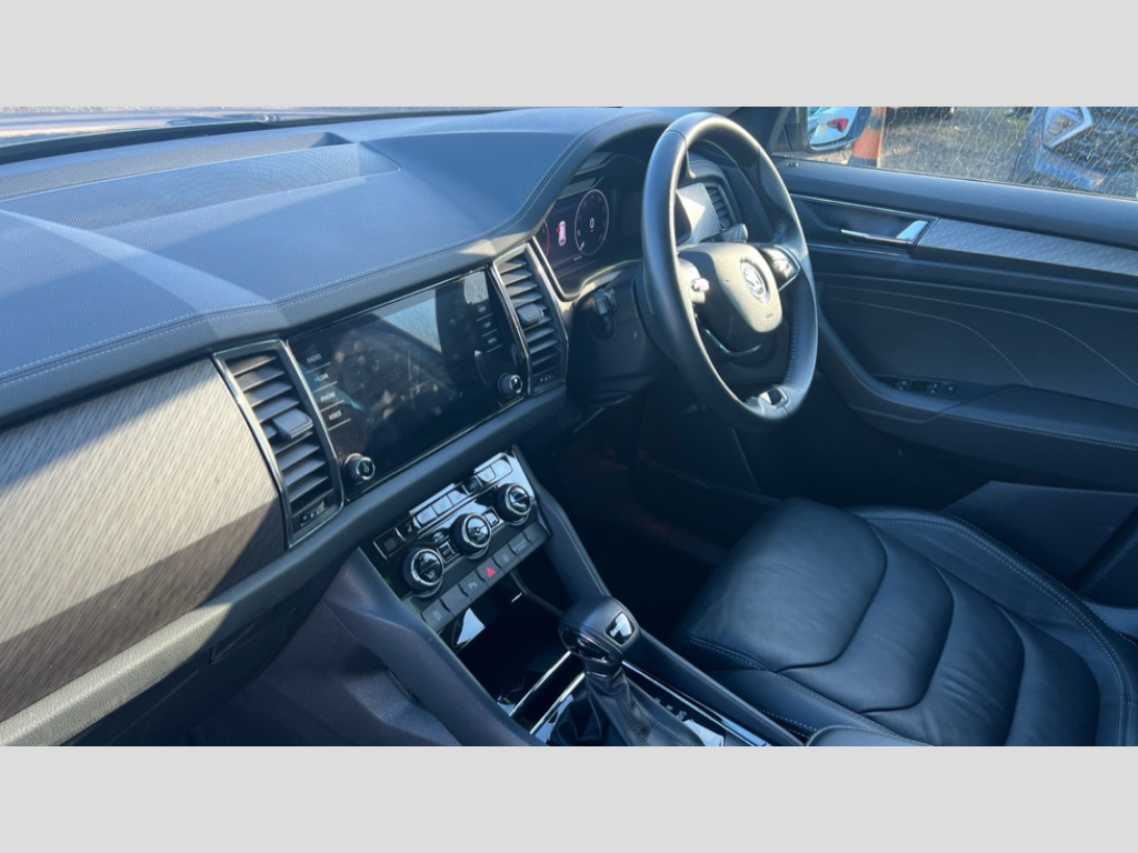 Skoda Kodiaq 1.5 TSI SE L Executive 5dr DSG [7 Seat] Bluetooth system, Digital voice enhancement, e call+, ECO Stop/start function, Exterior temperature indicator, Rear view camera, Smartlink wireless for apple carplay and wired for android auto, Speed limiter, Tailgate unlocking from outside, USB C Port x 2 in front centre console, Virtual Cockpit - 10.25" digital display, Wireless charging, 8 Speakers, DAB Digital radio, Aero front windscreen wipers with intermittent function, Aero rear window wiper, Auto dimming rear view mirror, Black wheel arch surrounds, Body colour bumpers, Body colour door mirrors and handles, Chrome front grille, Chrome roof rails with chrome window surround, Electric adjustable/heated/folding door mirrors, driver side auto dimming with boarding sports and memory function, Electric front and rear windows, Extended rear spoiler with finlets in gloss black, Front fog lights, Full LED matrix headlights with AFS (adaptive front light system), cornering function and AWL (all weather lighting system), Headlight washers, Heated rear window, Invisible tailpipe, LED daytime running lights, LED rear fog light, LED third brake light in rear spoiler, Light assistant (coming/leaving home/tunnel light), Off-road style lower front bumper element, Privacy glass, Rain and light sensors, Rear LED lights (high functionality) with welcome effect and dynamic indicators, Rear side wing doors, Safety reflectors on front and rear doors, Window control switches with black trim, 12V socket in boot, 2 rails with 2 hooks, 2 seat bench in 3rd row, 2 spoke multi-function leather steering wheel with paddle shift, 3 seat bench in 2nd row, 4 foldable roof handles with rear coat hooks, 60:40 foldable rear seat with sliding adjustment and backrest angle adjustment, Bottle holders in door panel in the 1.5 litre front and 1 litre rear, Cargo storage compartments, Chrome headlight control button, Chrome interior door handles, Coat hooks on B pillar, Covered storage compartment on driver side, Decorative door sill covers, Front and rear door armrest with black adductor trim, Front centre armrest with storage compartment, cup holder and 12V socket, Front courtesy lights, Gear shift lever with chrome frame and black gloss insert, Grey stitching in front and rear armrests and door armrests + door inserts, Height adjustable front headrests, Illuminated glovebox, Illuminated luggage compartment, Isofix child seat fittings in outer rear seats with top tether, Manually adjustable steering column, Net programme in boot (1x horizontal Net, 2x vertical Nets), Overhead glasses storage compartment, Pollen filter, Rear centre armrest with cupholders, Single front passenger seat, Sliding trunk cover, Small Bags on the inner sides of the front backrests, Sunvisors with illuminated vanity mirrors, Three rear height adjustable headrests, Ticket holder on A Pillar, Umbrella in door panel, Variable boot floor, Auto door release and activation of warning lights in the event of an accident, Driver and front passenger airbag with knee airbag and front passenger airbag deactivation, Electronic parking brake with hill start assist, Emergency rear braking signal, ESC (incl. ABS+MSR+ASR+EDS+HBA+DSR+RBS+MKB), Front assist with autonomous emergency braking, Front side airbags with curtain airbags, Fuel cut off safety device, Height adjustable front 3 point seatbelts + pretensioners, Hill hold control, Rear disc brakes, Safety vest holder in door, Seat belt reminder for all seats, Three point rear seat belts, Two tone horn, Tyre pressure monitor, Alarm with interior monitoring and tilt sensor with safe function, Anti-theft wheel bolts, Immobiliser, Keyless entry and start system (KESSY), Remote central locking with 2 keys, Grey stitching in dashboard, Linear diamonds decorative inserts, Temporary spare wheel (space saver)