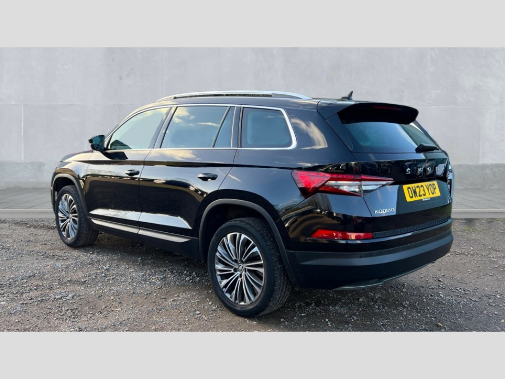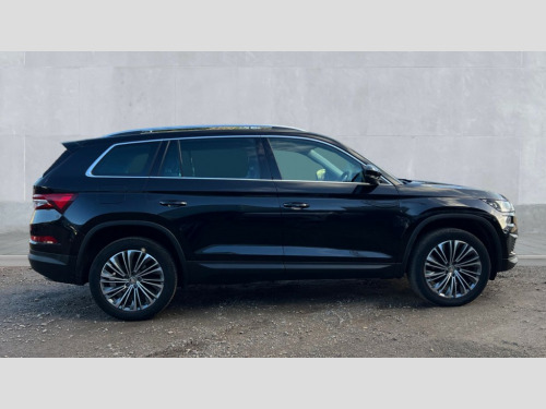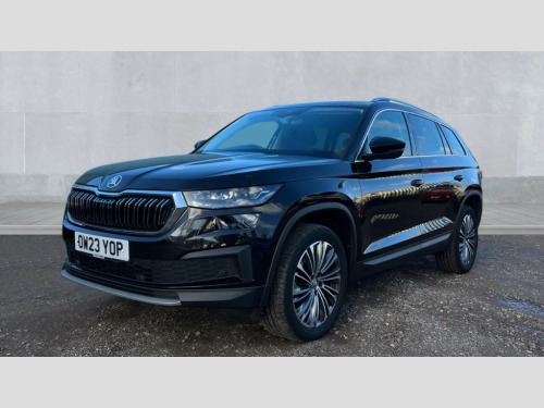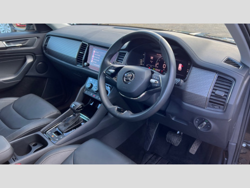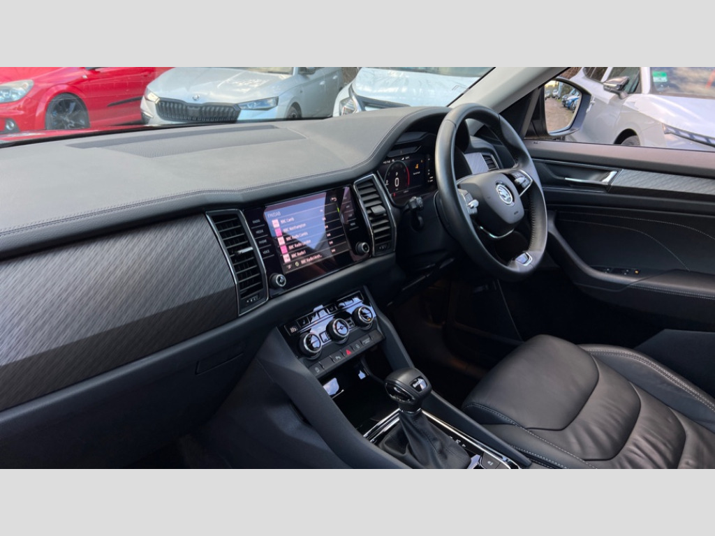 Skoda Kodiaq 1.5 TSI SE L Executive 5dr DSG [7 Seat] Bluetooth system, Digital voice enhancement, e call+, ECO Stop/start function, Exterior temperature indicator, Rear view camera, Smartlink wireless for apple carplay and wired for android auto, Speed limiter, Tailgate unlocking from outside, USB C Port x 2 in front centre console, Virtual Cockpit - 10.25" digital display, Wireless charging, 8 Speakers, DAB Digital radio, Aero front windscreen wipers with intermittent function, Aero rear window wiper, Auto dimming rear view mirror, Black wheel arch surrounds, Body colour bumpers, Body colour door mirrors and handles, Chrome front grille, Chrome roof rails with chrome window surround, Electric adjustable/heated/folding door mirrors, driver side auto dimming with boarding sports and memory function, Electric front and rear windows, Extended rear spoiler with finlets in gloss black, Front fog lights, Full LED matrix headlights with AFS (adaptive front light system), cornering function and AWL (all weather lighting system), Headlight washers, Heated rear window, Invisible tailpipe, LED daytime running lights, LED rear fog light, LED third brake light in rear spoiler, Light assistant (coming/leaving home/tunnel light), Off-road style lower front bumper element, Privacy glass, Rain and light sensors, Rear LED lights (high functionality) with welcome effect and dynamic indicators, Rear side wing doors, Safety reflectors on front and rear doors, Window control switches with black trim, 12V socket in boot, 2 rails with 2 hooks, 2 seat bench in 3rd row, 2 spoke multi-function leather steering wheel with paddle shift, 3 seat bench in 2nd row, 4 foldable roof handles with rear coat hooks, 60:40 foldable rear seat with sliding adjustment and backrest angle adjustment, Bottle holders in door panel in the 1.5 litre front and 1 litre rear, Cargo storage compartments, Chrome headlight control button, Chrome interior door handles, Coat hooks on B pillar, Covered storage compartment on driver side, Decorative door sill covers, Front and rear door armrest with black adductor trim, Front centre armrest with storage compartment, cup holder and 12V socket, Front courtesy lights, Gear shift lever with chrome frame and black gloss insert, Grey stitching in front and rear armrests and door armrests + door inserts, Height adjustable front headrests, Illuminated glovebox, Illuminated luggage compartment, Isofix child seat fittings in outer rear seats with top tether, Manually adjustable steering column, Net programme in boot (1x horizontal Net, 2x vertical Nets), Overhead glasses storage compartment, Pollen filter, Rear centre armrest with cupholders, Single front passenger seat, Sliding trunk cover, Small Bags on the inner sides of the front backrests, Sunvisors with illuminated vanity mirrors, Three rear height adjustable headrests, Ticket holder on A Pillar, Umbrella in door panel, Variable boot floor, Auto door release and activation of warning lights in the event of an accident, Driver and front passenger airbag with knee airbag and front passenger airbag deactivation, Electronic parking brake with hill start assist, Emergency rear braking signal, ESC (incl. ABS+MSR+ASR+EDS+HBA+DSR+RBS+MKB), Front assist with autonomous emergency braking, Front side airbags with curtain airbags, Fuel cut off safety device, Height adjustable front 3 point seatbelts + pretensioners, Hill hold control, Rear disc brakes, Safety vest holder in door, Seat belt reminder for all seats, Three point rear seat belts, Two tone horn, Tyre pressure monitor, Alarm with interior monitoring and tilt sensor with safe function, Anti-theft wheel bolts, Immobiliser, Keyless entry and start system (KESSY), Remote central locking with 2 keys, Grey stitching in dashboard, Linear diamonds decorative inserts, Temporary spare wheel (space saver)