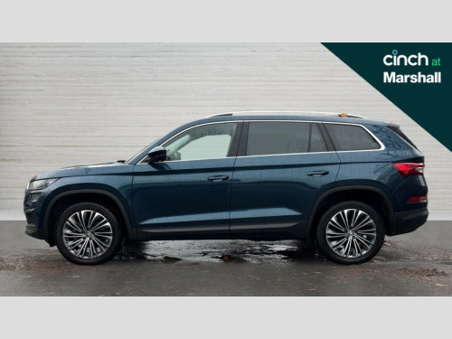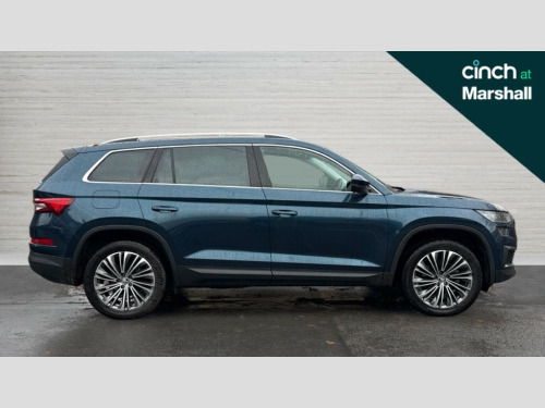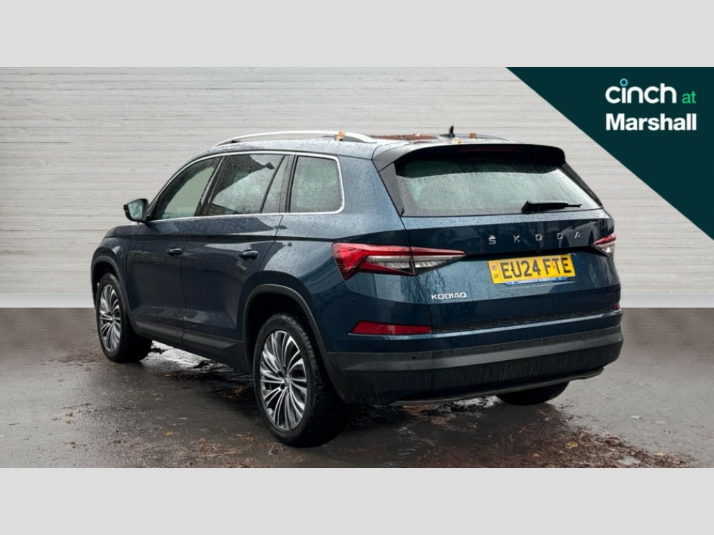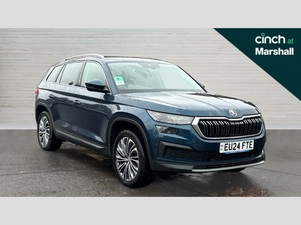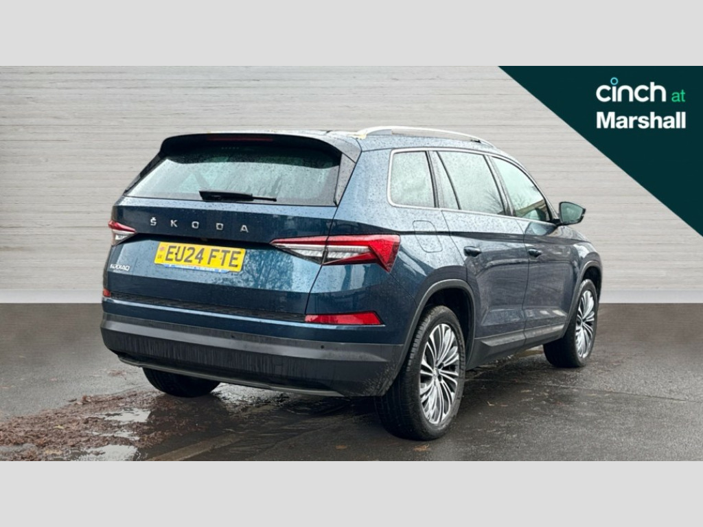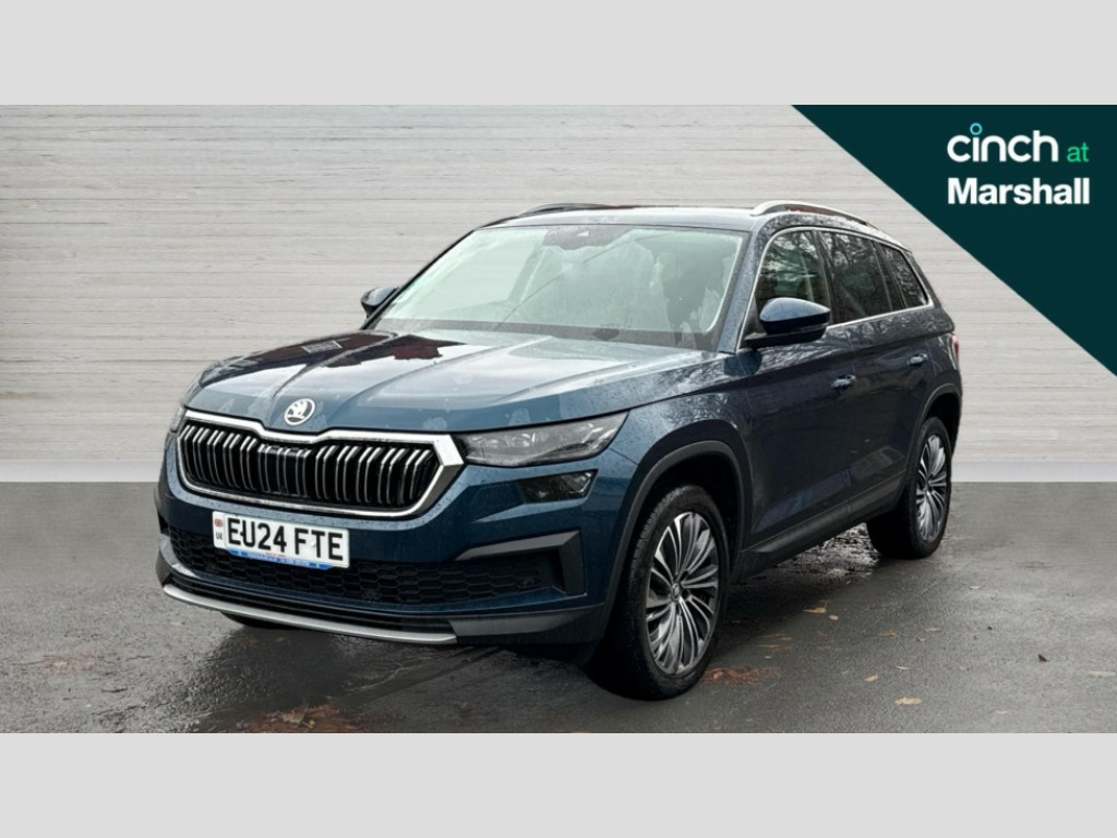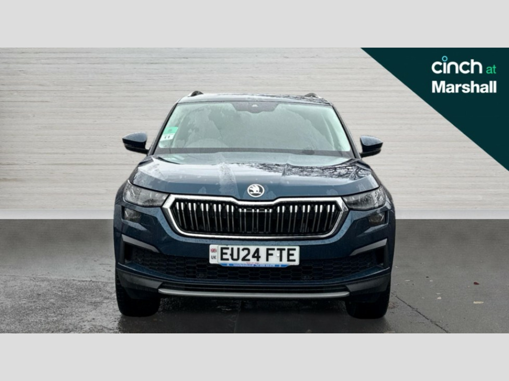 Skoda Kodiaq 1.5 TSI SE L Executive 5dr DSG [7 Seat] Bluetooth system, Digital voice enhancement, e call+, ECO Stop/start function, Exterior temperature indicator, Rear view camera, Smartlink wireless for apple carplay and wired for android auto, Speed limiter, Tailgate unlocking from outside, USB C Port x 2 in front centre console, Virtual Cockpit - 10.25" digital display, Wireless charging, 8 Speakers, DAB Digital radio, Aero front windscreen wipers with intermittent function, Aero rear window wiper, Auto dimming rear view mirror, Black wheel arch surrounds, Body colour bumpers, Body colour door mirrors and handles, Chrome front grille, Chrome roof rails with chrome window surround, Electric adjustable/heated/folding door mirrors, driver side auto dimming with boarding sports and memory function, Electric front and rear windows, Extended rear spoiler with finlets in gloss black, Front fog lights, Full LED matrix headlights with AFS (adaptive front light system), cornering function and AWL (all weather lighting system), Headlight washers, Heated rear window, Invisible tailpipe, LED daytime running lights, LED rear fog light, LED third brake light in rear spoiler, Light assistant (coming/leaving home/tunnel light), Off-road style lower front bumper element, Privacy glass, Rain and light sensors, Rear LED lights (high functionality) with welcome effect and dynamic indicators, Rear side wing doors, Safety reflectors on front and rear doors, Window control switches with black trim, 12V socket in boot, 2 rails with 2 hooks, 2 seat bench in 3rd row, 2 spoke multi-function leather steering wheel with paddle shift, 3 seat bench in 2nd row, 4 foldable roof handles with rear coat hooks, 60:40 foldable rear seat with sliding adjustment and backrest angle adjustment, Bottle holders in door panel in the 1.5 litre front and 1 litre rear, Cargo storage compartments, Chrome headlight control button, Chrome interior door handles, Coat hooks on B pillar, Covered storage compartment on driver side, Decorative door sill covers, Front and rear door armrest with black adductor trim, Front centre armrest with storage compartment, cup holder and 12V socket, Front courtesy lights, Gear shift lever with chrome frame and black gloss insert, Grey stitching in front and rear armrests and door armrests + door inserts, Height adjustable front headrests, Illuminated glovebox, Illuminated luggage compartment, Isofix child seat fittings in outer rear seats with top tether, Manually adjustable steering column, Net programme in boot (1x horizontal Net, 2x vertical Nets), Overhead glasses storage compartment, Pollen filter, Rear centre armrest with cupholders, Single front passenger seat, Sliding trunk cover, Small Bags on the inner sides of the front backrests, Sunvisors with illuminated vanity mirrors, Three rear height adjustable headrests, Ticket holder on A Pillar, Umbrella in door panel, Variable boot floor, Auto door release and activation of warning lights in the event of an accident, Driver and front passenger airbag with knee airbag and front passenger airbag deactivation, Electronic parking brake with hill start assist, Emergency rear braking signal, ESC (incl. ABS+MSR+ASR+EDS+HBA+DSR+RBS+MKB), Front assist with autonomous emergency braking, Front side airbags with curtain airbags, Fuel cut off safety device, Height adjustable front 3 point seatbelts + pretensioners, Hill hold control, Rear disc brakes, Safety vest holder in door, Seat belt reminder for all seats, Three point rear seat belts, Two tone horn, Tyre pressure monitor, Alarm with interior monitoring and tilt sensor with safe function, Anti-theft wheel bolts, Immobiliser, Keyless entry and start system (KESSY), Remote central locking with 2 keys, Grey stitching in dashboard, Linear diamonds decorative inserts, Temporary spare wheel (space saver)