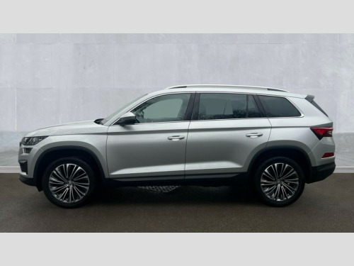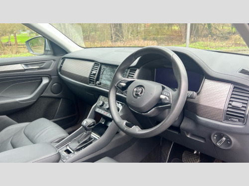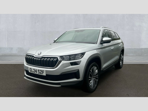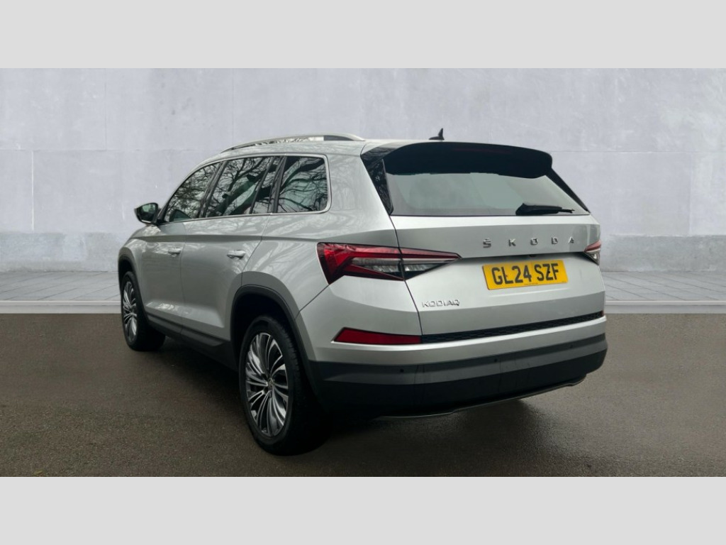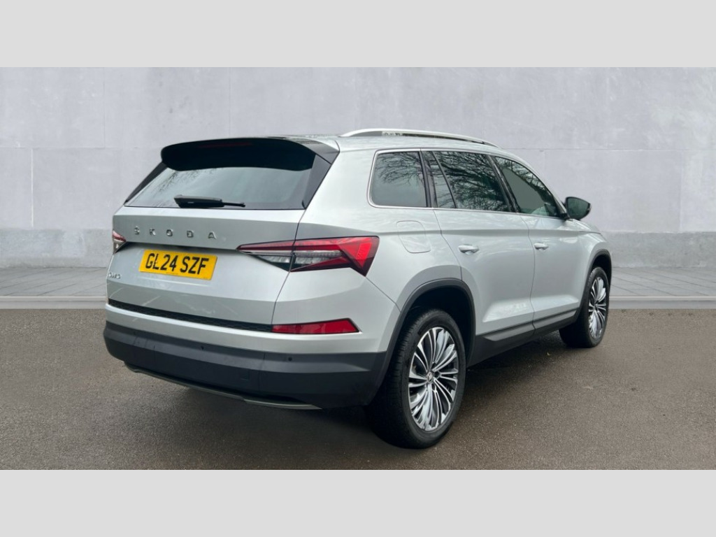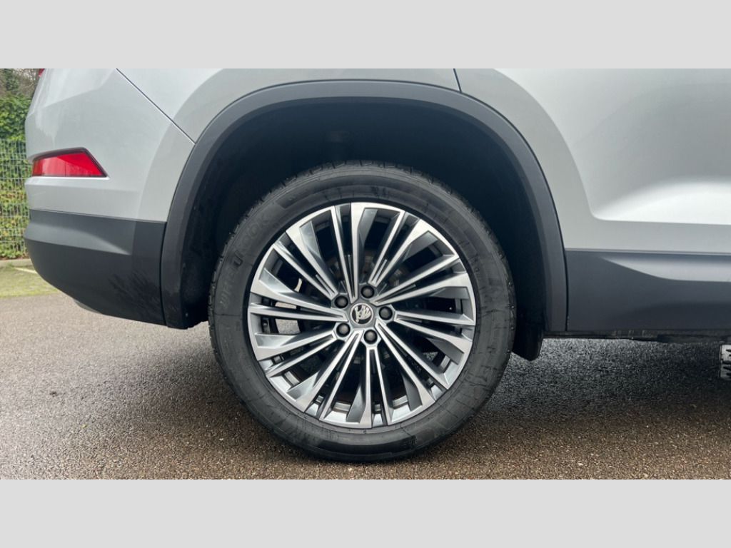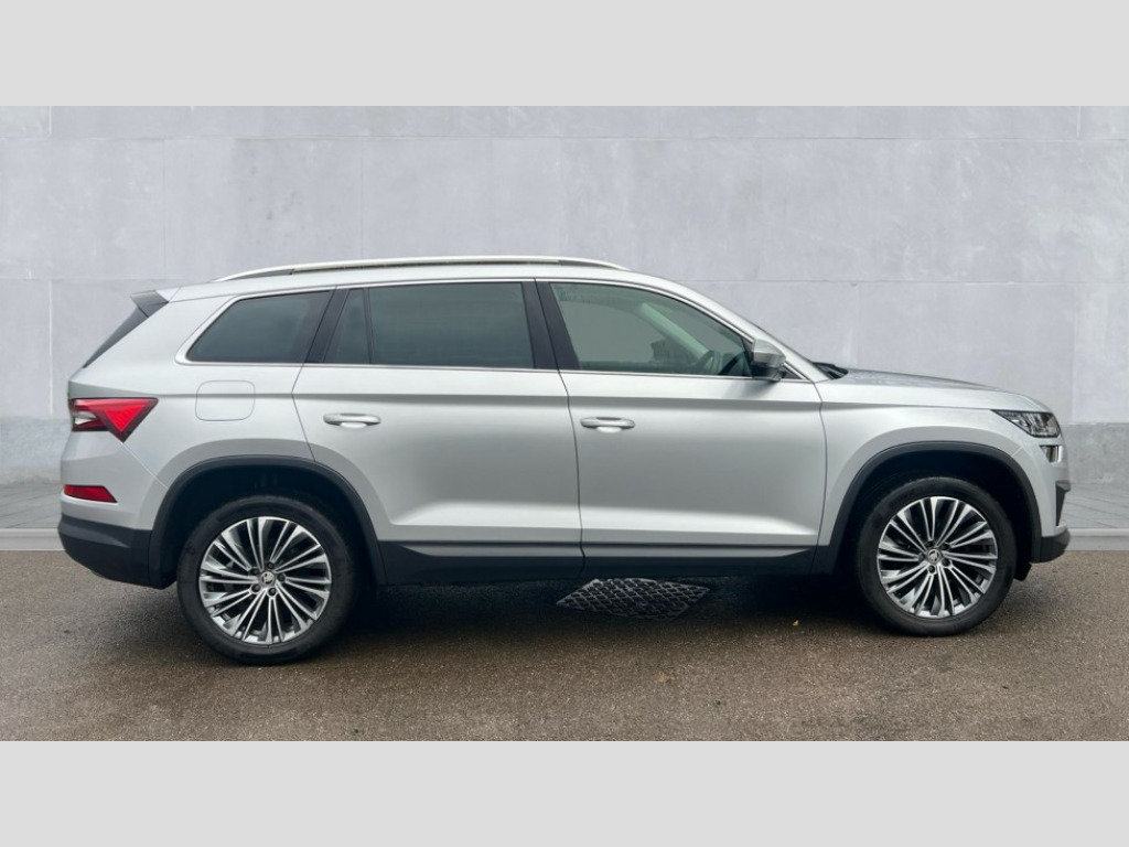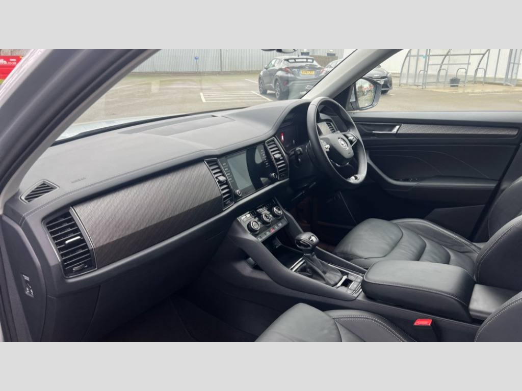 Skoda Kodiaq 1.5 TSI SE L Executive 5dr DSG [7 Seat] Bluetooth system, Digital voice enhancement, e call+, ECO Stop/start function, Exterior temperature indicator, Rear view camera, Smartlink wireless for apple carplay and wired for android auto, Speed limiter, Tailgate unlocking from outside, USB C Port x 2 in front centre console, Virtual Cockpit - 10.25" digital display, Wireless charging, 8 Speakers, DAB Digital radio, Aero front windscreen wipers with intermittent function, Aero rear window wiper, Auto dimming rear view mirror, Black wheel arch surrounds, Body colour bumpers, Body colour door mirrors and handles, Chrome front grille, Chrome roof rails with chrome window surround, Electric adjustable/heated/folding door mirrors, driver side auto dimming with boarding sports and memory function, Electric front and rear windows, Extended rear spoiler with finlets in gloss black, Front fog lights, Full LED matrix headlights with AFS (adaptive front light system), cornering function and AWL (all weather lighting system), Headlight washers, Heated rear window, Invisible tailpipe, LED daytime running lights, LED rear fog light, LED third brake light in rear spoiler, Light assistant (coming/leaving home/tunnel light), Off-road style lower front bumper element, Privacy glass, Rain and light sensors, Rear LED lights (high functionality) with welcome effect and dynamic indicators, Rear side wing doors, Safety reflectors on front and rear doors, Window control switches with black trim, 12V socket in boot, 2 rails with 2 hooks, 2 seat bench in 3rd row, 2 spoke multi-function leather steering wheel with paddle shift, 3 seat bench in 2nd row, 4 foldable roof handles with rear coat hooks, 60:40 foldable rear seat with sliding adjustment and backrest angle adjustment, Bottle holders in door panel in the 1.5 litre front and 1 litre rear, Cargo storage compartments, Chrome headlight control button, Chrome interior door handles, Coat hooks on B pillar, Covered storage compartment on driver side, Decorative door sill covers, Front and rear door armrest with black adductor trim, Front centre armrest with storage compartment, cup holder and 12V socket, Front courtesy lights, Gear shift lever with chrome frame and black gloss insert, Grey stitching in front and rear armrests and door armrests + door inserts, Height adjustable front headrests, Illuminated glovebox, Illuminated luggage compartment, Isofix child seat fittings in outer rear seats with top tether, Manually adjustable steering column, Net programme in boot (1x horizontal Net, 2x vertical Nets), Overhead glasses storage compartment, Pollen filter, Rear centre armrest with cupholders, Single front passenger seat, Sliding trunk cover, Small Bags on the inner sides of the front backrests, Sunvisors with illuminated vanity mirrors, Three rear height adjustable headrests, Ticket holder on A Pillar, Umbrella in door panel, Variable boot floor, Auto door release and activation of warning lights in the event of an accident, Driver and front passenger airbag with knee airbag and front passenger airbag deactivation, Electronic parking brake with hill start assist, Emergency rear braking signal, ESC (incl. ABS+MSR+ASR+EDS+HBA+DSR+RBS+MKB), Front assist with autonomous emergency braking, Front side airbags with curtain airbags, Fuel cut off safety device, Height adjustable front 3 point seatbelts + pretensioners, Hill hold control, Rear disc brakes, Safety vest holder in door, Seat belt reminder for all seats, Three point rear seat belts, Two tone horn, Tyre pressure monitor, Alarm with interior monitoring and tilt sensor with safe function, Anti-theft wheel bolts, Immobiliser, Keyless entry and start system (KESSY), Remote central locking with 2 keys, Grey stitching in dashboard, Linear diamonds decorative inserts, Temporary spare wheel (space saver)