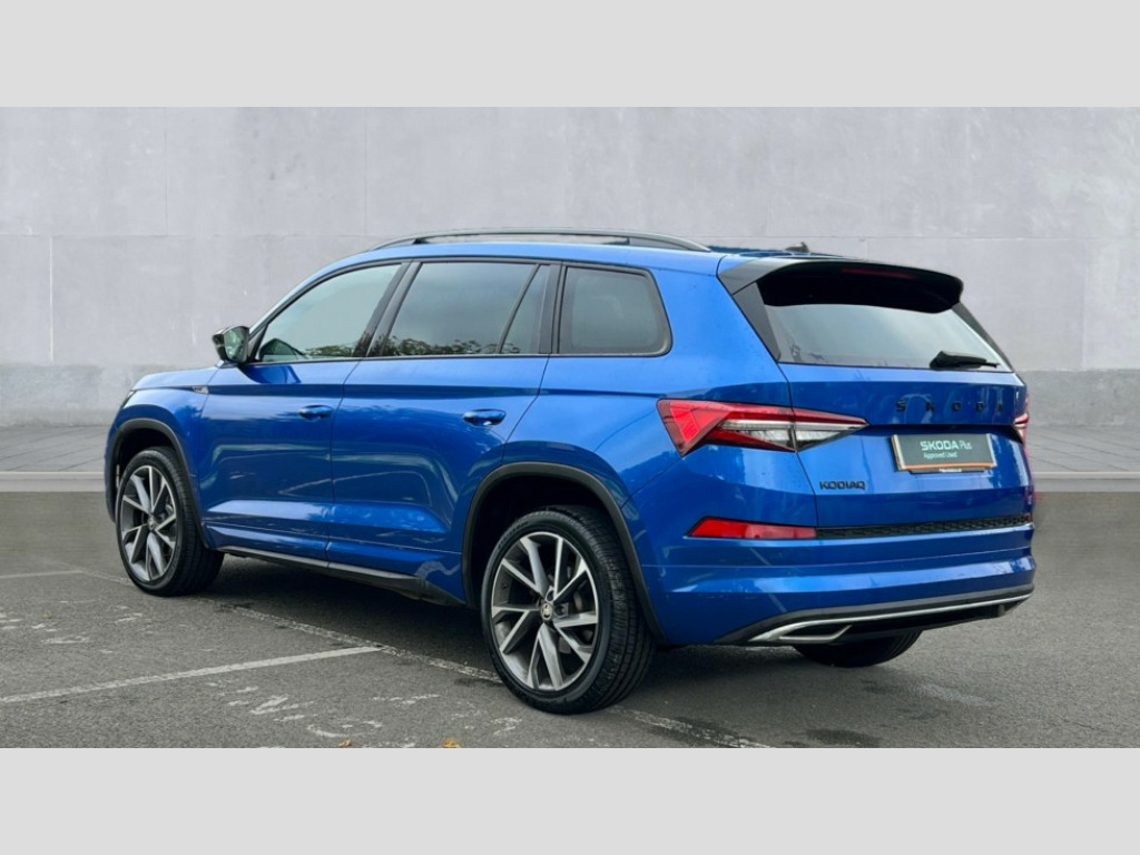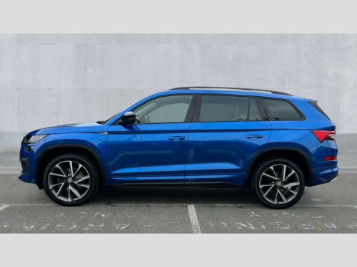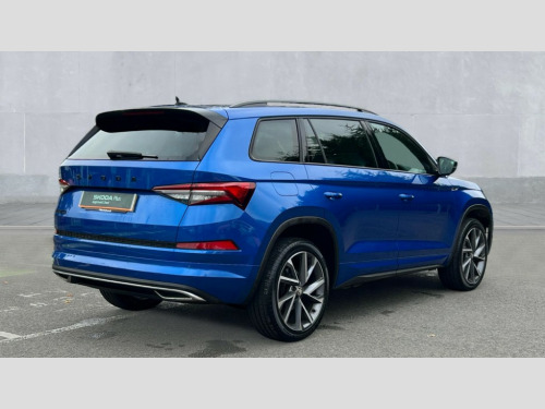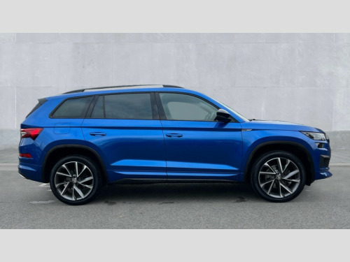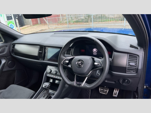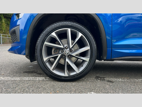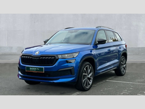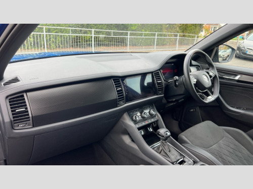 Skoda Kodiaq 1.5 TSI Sport Line 5dr DSG [7 Seat] Bluetooth system, Columbus satellite navigation with 9.2" touchscreen, integrated Wi-Fi, web radio, Digital voice enhancement, e call+, ECO Stop/start function, Exterior temperature indicator, Progressive steering, Rear view camera, Smartlink wireless for apple carplay and wired for android auto, Speed limiter, Tailgate unlocking from outside, USB C Port x 2 in front centre console, Virtual Cockpit - 10.25" digital display with additional sports design, Wireless charging, 8 Speakers, DAB Digital radio, Aero front windscreen wipers with intermittent function, Aero rear window wiper, Auto dimming rear view mirror, Black roof rails, Black sports styling including front grille and window surrounds, Black wheel arch surrounds, Body colour bumpers, Body colour door handles, Electric adjustable/heated/folding door mirrors, driver side auto dimming with boarding sports and memory function, Electric front and rear windows, Extended rear spoiler with finlets in gloss black, Front fog lights, Full LED matrix headlights with AFS (adaptive front light system), cornering function and AWL (all weather lighting system), Gloss black door mirrors, Headlight washers, Heated rear window, Invisible tailpipe, LED daytime running lights, LED rear fog light, LED third brake light in rear spoiler, Light assistant (coming/leaving home/tunnel light), Off-road style lower front bumper element, Privacy glass, Rain and light sensors, Rear diffuser, Rear LED lights (high functionality) with welcome effect and dynamic indicators, Rear side wing doors, Safety reflectors on front and rear doors, Sportline badge on front fender, Sports front and rear bumpers including lower rear chrome strip, Tailgate lettering in Black, Window control switches with black trim, 12V socket in boot, 2 rails with 2 hooks, 2 seat bench in 3rd row, 3 seat bench in 2nd row, 4 foldable roof handles with rear coat hooks, 60:40 foldable rear seat with sliding adjustment and backrest angle adjustment, Aluminium pedals, Black roof headlining, Bottle holders in door panel in the 1.5 litre front and 1 litre rear, Cargo storage compartments, Chrome headlight control button, Chrome interior door handles, Coat hooks on B pillar, Covered storage compartment on driver side, Decorative door sill covers, Front centre armrest with storage compartment, cup holder and 12V socket, Front courtesy lights, Gear shift lever with chrome frame and black gloss insert, Grey stitching in front and rear armrests and door armrests + door inserts, Height adjustable front headrests, Illuminated and cooled glovebox, Illuminated luggage compartment, Isofix child seat fittings in outer rear seats with top tether, Manually adjustable steering column, Microsuede door panels, Net programme in boot (1x horizontal Net, 2x vertical Nets), Overhead glasses storage compartment, Pollen filter, Rear centre armrest with cupholders, Single front passenger seat, Sliding trunk cover, Small Bags on the inner sides of the front backrests, Sports seats, Sunvisors with illuminated vanity mirrors, Three rear height adjustable headrests, Ticket holder on A Pillar, Umbrella in door panel, Variable boot floor, LED Interior light pack - Kodiaq, Auto door release and activation of warning lights in the event of an accident, Child locks on rear doors, Driver and front passenger airbag with knee airbag and front passenger airbag deactivation, Electronic parking brake with hill start assist, Emergency rear braking signal, ESC (incl. ABS+MSR+ASR+EDS+HBA+DSR+RBS+MKB), Front assist with autonomous emergency braking, Front side airbags with curtain airbags, Fuel cut off safety device, Height adjustable front 3 point seatbelts + pretensioners, Hill hold control, Rear disc brakes, Safety vest holder in door, Seat belt reminder for all seats, Three point rear seat belts, Two tone horn, Tyre pressure monitor, Alarm with interior monitoring and tilt sensor with safe function, Anti-theft wheel bolts, Immobiliser, Keyless entry and start system (KESSY), Remote central locking with 2 keys, Black air vent surround, Carbon finish dashboard and door inserts, Grey stitching in dashboard, 20" Vega Anthracite alloy wheels, Temporary spare wheel (space saver)