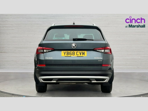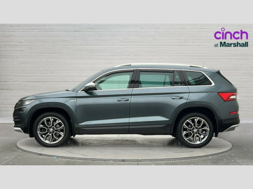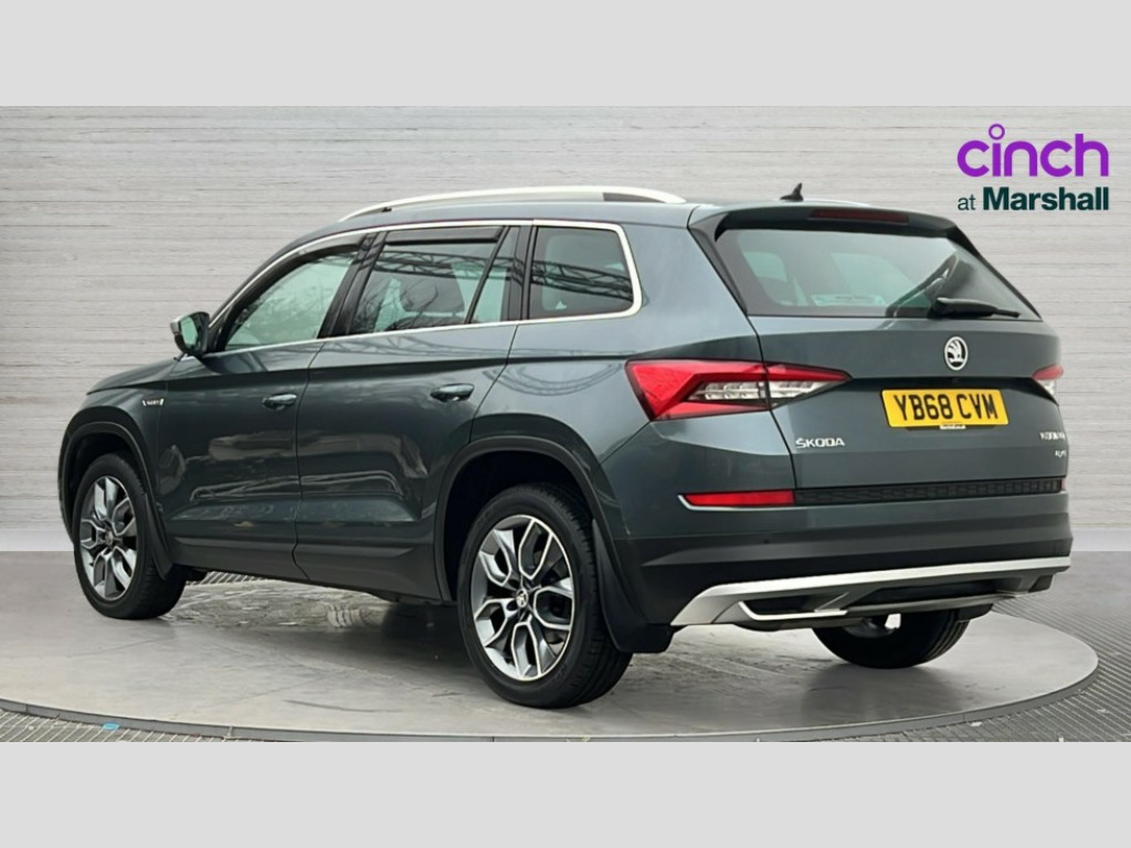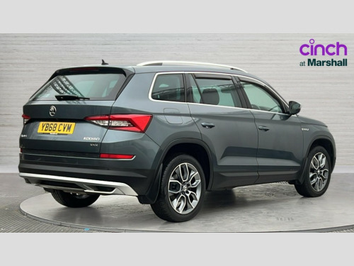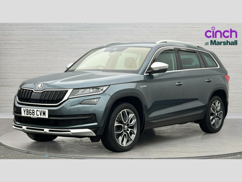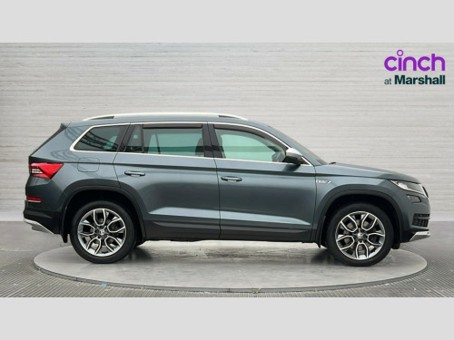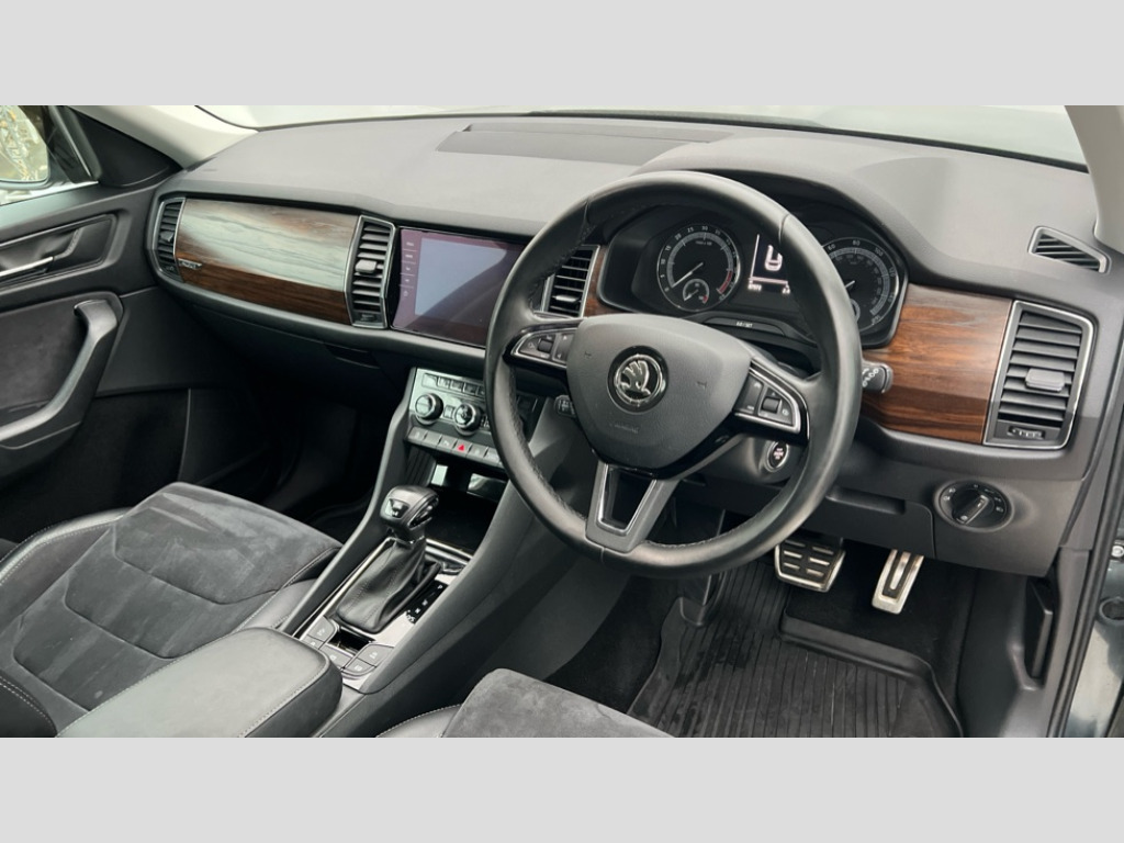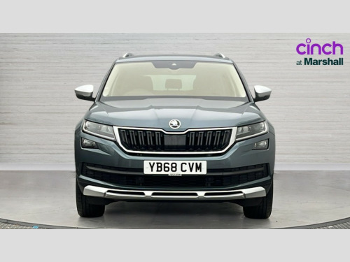 Skoda Kodiaq 2.0 TDI 190 Scout 4x4 5dr DSG [7 Seat] Bluetooth system, Columbus satellite navigation with 9.2" touch screen and integrated Wi-Fi + WLAN, Digital voice enhancement, ECO Stop/start function, Exterior temperature indicator, Progressive power assisted steering, SmartLink plus, Speed limiter, Tailgate unlocking from outside, Bolero Radio, DAB Digital radio, DVD System, USB and SD card connectivity, Aero front windscreen wipers with intermittent function, Aero rear window wiper, Auto dimming rear view mirror, Automatic activation of hazard warning lights, Black wheel arch surrounds, Body colour door handles, Electric front and rear windows, Electrically adjustable/heated/foldable and auto dimming door mirrors with memory function, Front and Rear door steps, Full LED Headlights with adaptive front light system and LED daytime running lights, Headlight washers, Heated rear window, Invisible tailpipe, LED front fog lights with static cornering light function, LED rear fog light, LED third brake light in rear spoiler, Light assistant (coming home/tunnel light), Radiator grille frame in matt black with chrome strip, Rain and light sensors, Rear diffuser, Safety reflectors on front and rear doors, Scout badge on front fender, Scout off road front and rear bumpers, Silver roof rails and door mirrors, Sunset privacy glass, Tinted windows, 12V socket in boot, 2 rails with 2 hooks including 4 hooks for net programme, 4 foldable roof handles with rear coat hooks, 4 lashing points on luggage floor, 60:40 foldable rear seat with sliding adjustment and backrest angle adjustment, Alcantara door panels, Alcantara upholstery with Scout logo, Aluminium pedals, Bottle holders in door panel in the 1.5 litre front and 1 litre rear, Cargo storage compartments, Centre console with open storage box, cup holder and 12V socket, Chrome headlight control button, Chrome interior door handles, Coat hooks on B pillar, Covered storage compartment on driver side, Electrically adjustable front seats with lumbar support and memory function, Front centre armrest with storage compartment, Front/rear courtesy lights, Gear shift lever with chrome frame and black gloss insert, Height adjustable front headrests, Illuminated and cooled glovebox, Illuminated luggage compartment, Isofix system on outer rear seats, LED ambient lighting, Manually adjustable steering column, Net programme in boot (1x horizontal Net, 2x vertical Nets), Overhead glasses storage compartment, Passenger side net compartment on centre console, Pollen filter, Rear centre armrest with cupholders, Removable lamp in luggage compartment, Roll up luggage compartment cover with intermediate position, Small Bags on the inner sides of the front backrests, Small pockets on the inner side of the front backrests, Storage compartment in lower middle Instrument panel, illuminated with closing, Sunvisors with illuminated vanity mirrors, Textile floor mats, Three rear height adjustable headrests, Ticket holder on A Pillar, Umbrella in door panel, Welcome animation with Scout logo, Chrome pack - Kodiaq, LED Interior Light pack - Kodiaq Scout/Sport Line/VRS/Laurin + Klement, Rough Road pack - Kodiaq, Auto door release and activation of warning lights in the event of an accident, Driver and passenger airbags, Electronic parking brake with hill hold control, Emergency rear braking signal, ESC (incl. ABS+MSR+ASR+EDS+HBA+DSR+RBS+MKB), Front and rear three point safety belt on all seats, Front assist includes AEB city/urban, Front side airbags, Fuel cut off safety device, Head and knee airbags, Off road switch, Passenger airbag deactivate switch, Rear disc brakes, Safety vest holder in door, Seat belt reminder for all seats, Two tone horn, Tyre pressure monitor, Warning lights in front doors, Alarm with interior monitoring and tilt sensor with safe function, Immobiliser, Keyless entry and start system (KESSY), Remote central locking, Scout plaque on the dashboard, Wood finish dashboard and door inserts, 19" Crater anthracite alloy wheels with anti-theft wheel bolts