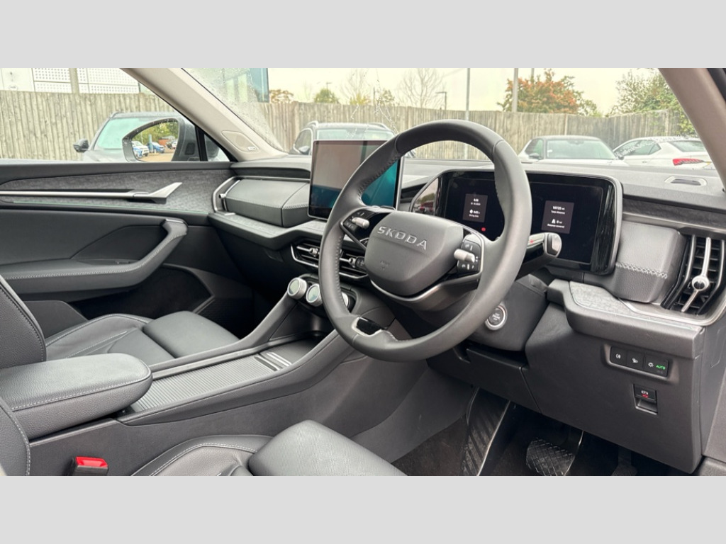 Skoda Kodiaq 2.0 TDI 193 SE L 4X4 5dr DSG [7 Seat] 13" satellite navigation touchscreen display, Blind spot detection with door exit warning, Bluetooth system, ChatGPT functionality, Driver alert - Fatigue and drowsiness monitor, Dry display cleaner, Emergency call, Front and rear parking sensors, Front cross traffic assist, Lane assist, PAS, Rear traffic assist, Tailgate unlocking from outside, Traffic sign recognition, USB C Port x 2 in front centre console, Virtual Cockpit - 10.25" digital display, Voice control system, Wireless charging for two smartphones (15W) with cooling function, Wireless SmartLink for Apple CarPlay and Android Auto, Stop/start function, 2x USB-C in the rear, DAB Digital radio, Aero front windscreen wipers with intermittent function, Auto dimming rear view mirror, AWL (all weather lighting) and all weather light with cornering function, Black wheel arch surrounds, Body colour bumpers, Body colour door mirrors and handles, Cornering light and poor weather light, Electric folding /adjustable/separted heated/folding door mirrors, auto dimming with boarding sports and memory function, Electric front and rear windows, Exterior black decorative trims, Heat insulating glass in windshield, Heated rear window, Ice scraper in fuel tank cap, Invisible tailpipe, LED daytime running lights, LED third brake light in rear spoiler, Light assistant with automatic headlight control and coming home feature, Logo projection in door mirrors, Privacy glass, Rear roof spoiler, Rear side wing doors, Rear window wiper, Red decorative strip between rear LED lights, Safety reflectors on front and rear doors, Unique dark chrome design logo on alloy wheels, Window control switches with black trim, Windscreen wipers with rain sensor, Without engine designation, 1.5l bottle holder points in all door, 1x centre rear reading light, 2 seat bench in 3rd row, 3 configurable smart dials with 32mm coloured display, 3 seat bench in 2nd row, 4 foldable roof handles with rear coat hooks, Ambient interior lighting - Dashboard, front-door stowage compartments, front and rear door panels and footwell lighting, Automatic gear selector on steering column, Chrome interior door handles, Driver/front passenger reading lights, Fabric headlining, Fixed bench 40:60:40 split folding backrests, Front and rear floor mats, Front centre armrest with jumbo box storage compartment, cup holder and 12V socket, Height adjustable front headrests, Isofix child seat fittings in outer middle row rear seats and front passenger with top tether, Manually adjustable steering column, Pollen filter, Rear centre armrest with cupholders, Rear seat boot backrest release, Single front passenger seat, Skoda lettering on steering wheel, Storage pocket including mobile phone pockets on the backs of the front seats, Sunvisors with illuminated vanity mirrors, Three rear height adjustable headrests, Ticket holder on A Pillar, Tri zone climate control, Umbrella in door panel x1 made from sustainable materials, Upper and lower glovebox with card holder and coin compartment, USB C port by rear view mirror for charging only (15W), Exterior styling pack - Kodiaq, Auto door release and activation of warning lights in the event of an accident, Driver and front passenger airbag with knee airbag and front passenger airbag deactivation, Electric child locks, Electronic parking brake, ESC (incl. ABS+EMD+MSR+ASR+EDL+HBA+DSR+RBS+ESBS+MCB+TSA+XDS), Front assist with braking reaction to vehicles, pedestrians and cyclists, Front disc brakes, Fuel cut off safety device, Height adjustable front 3 point seatbelts + pretensioners, Hill hold assist, Junction assist with automatic emergency braking, Rear disc brakes, Safety vest holder in door, Seat belt reminder for all seats, Three point rear seat belts, Two tone horn, Tyre pressure monitor, Anti-theft wheel bolts, Immobiliser, Remote central locking with 2 keys